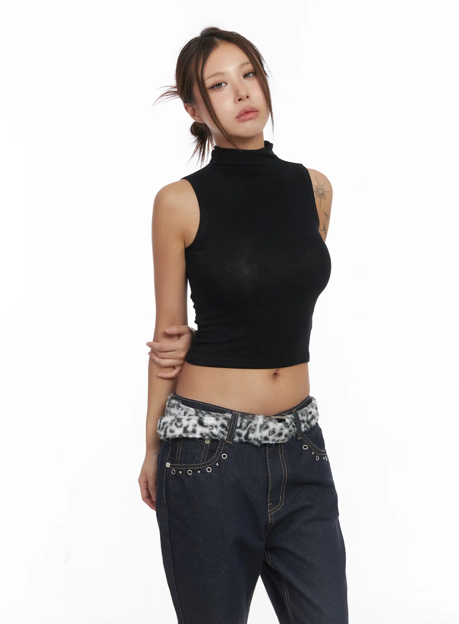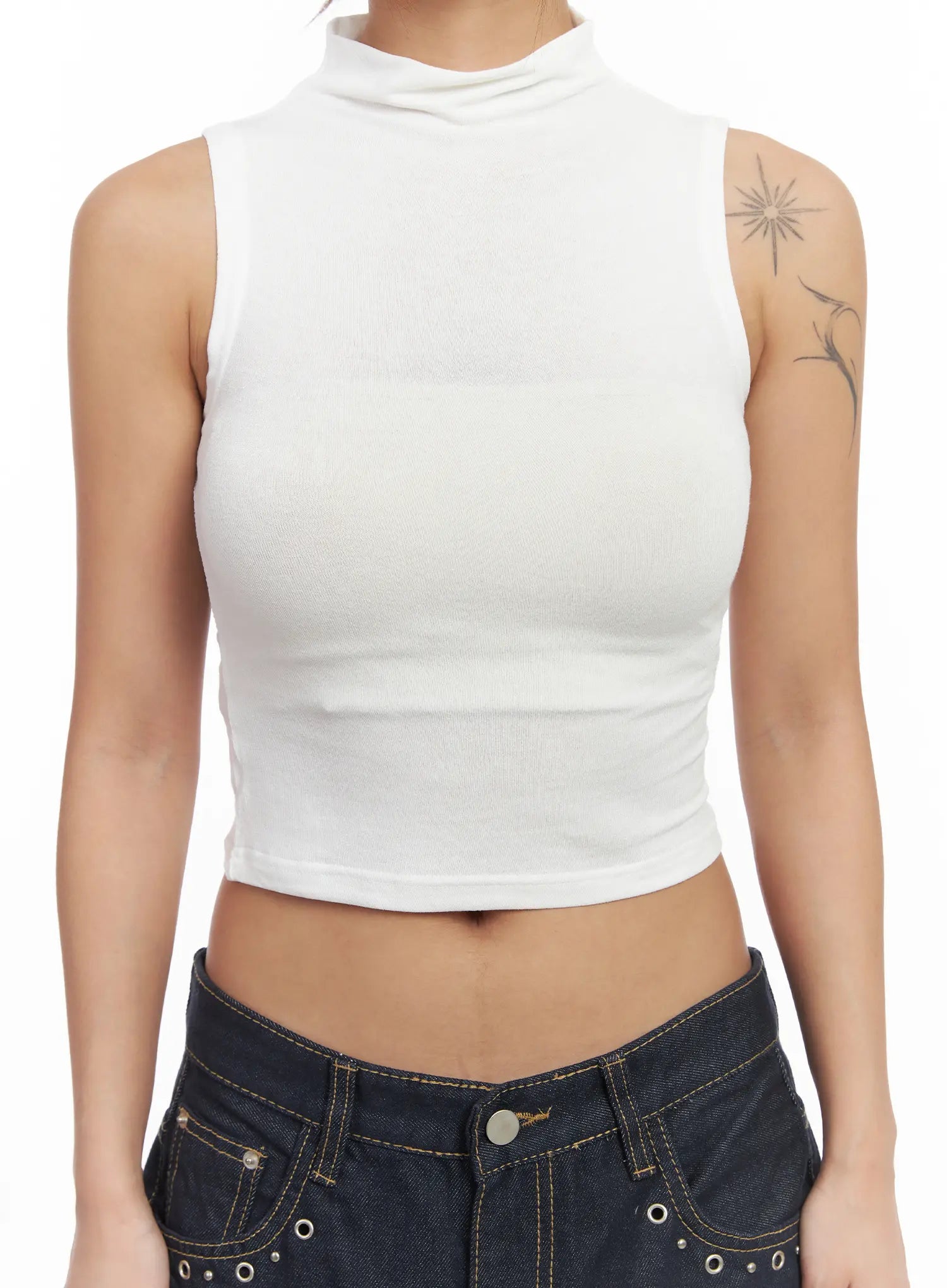 Basic Bock Neck Crop Tank CJ512