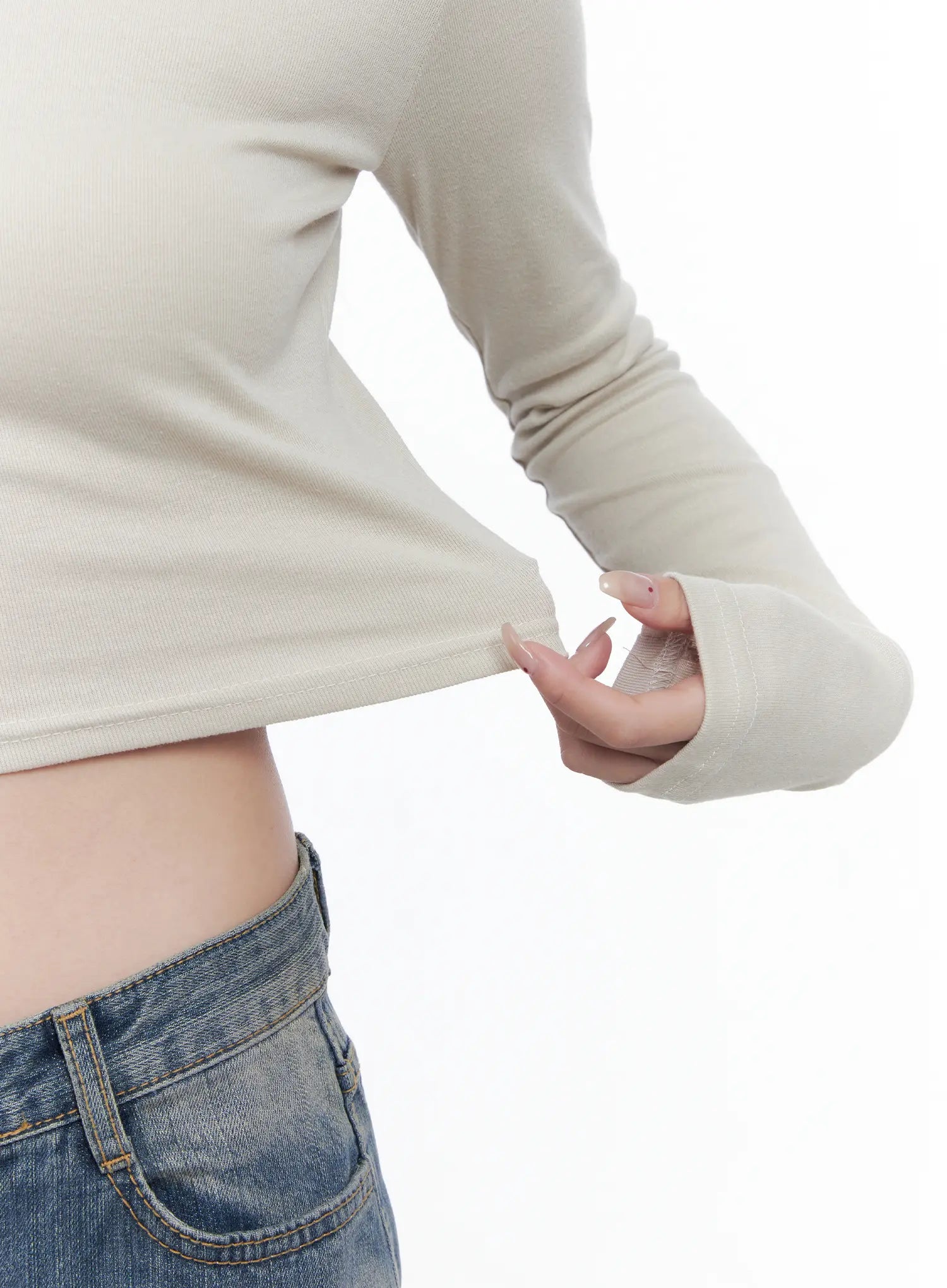 Basic U-Neck Long Sleeve Crop Tee CG529