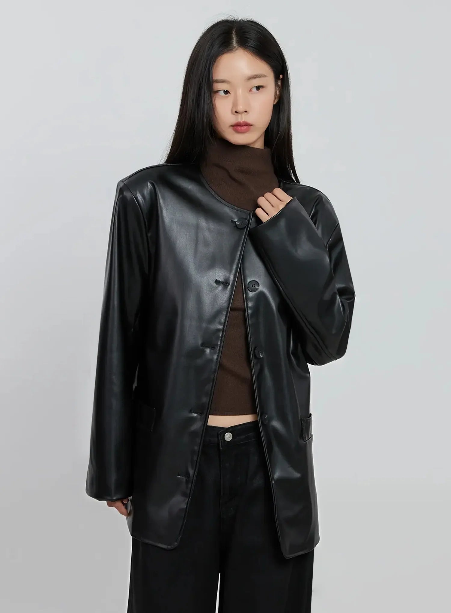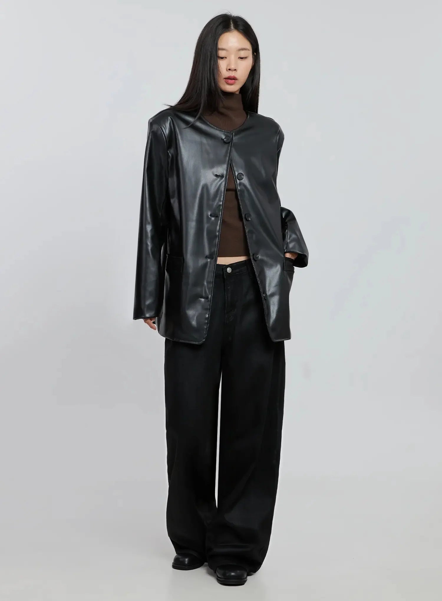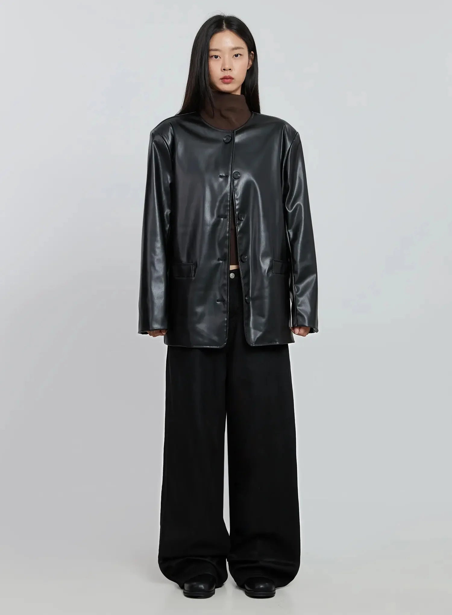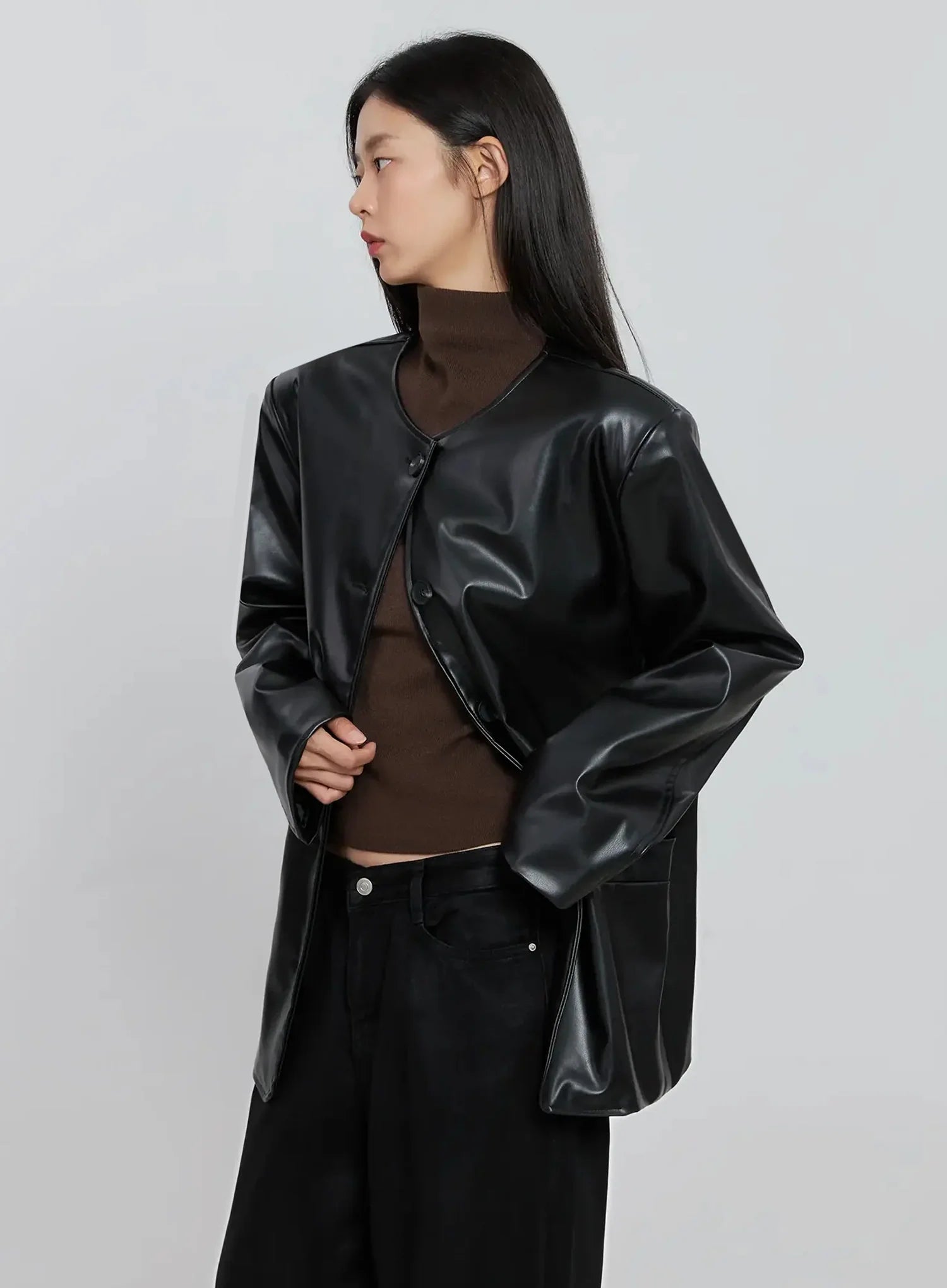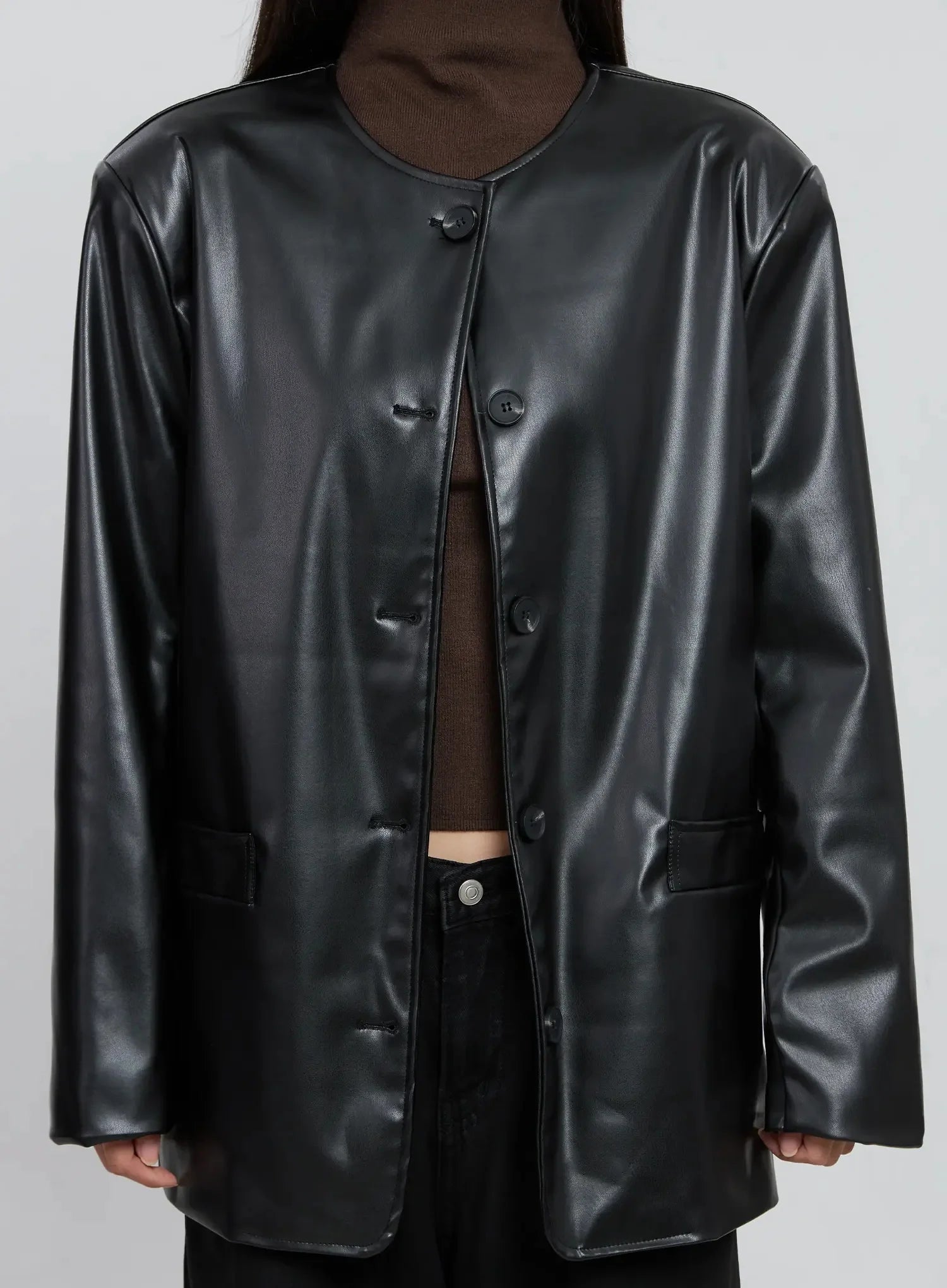 Black Faux Leather Jacket IO530