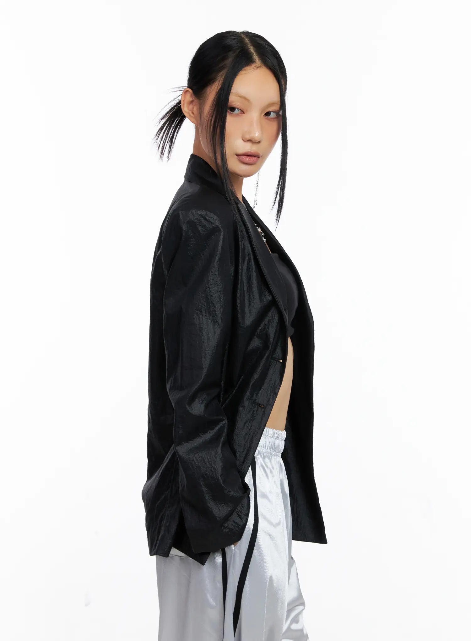 Black Nylon Slim Fit Jacket CS511
