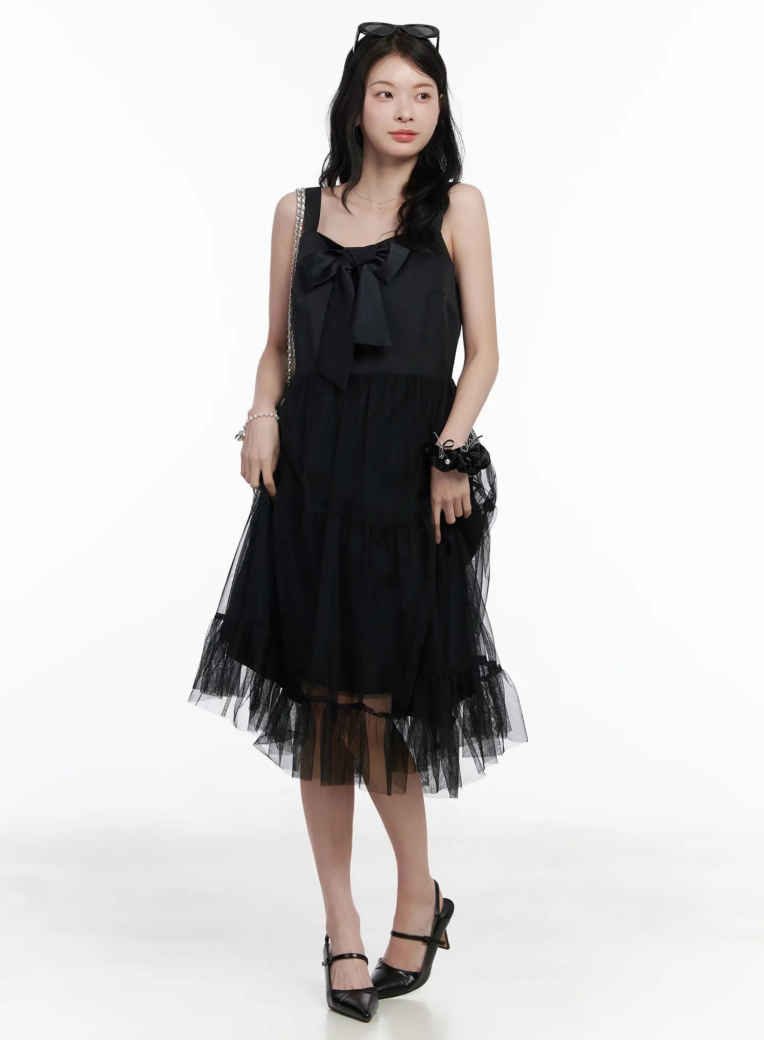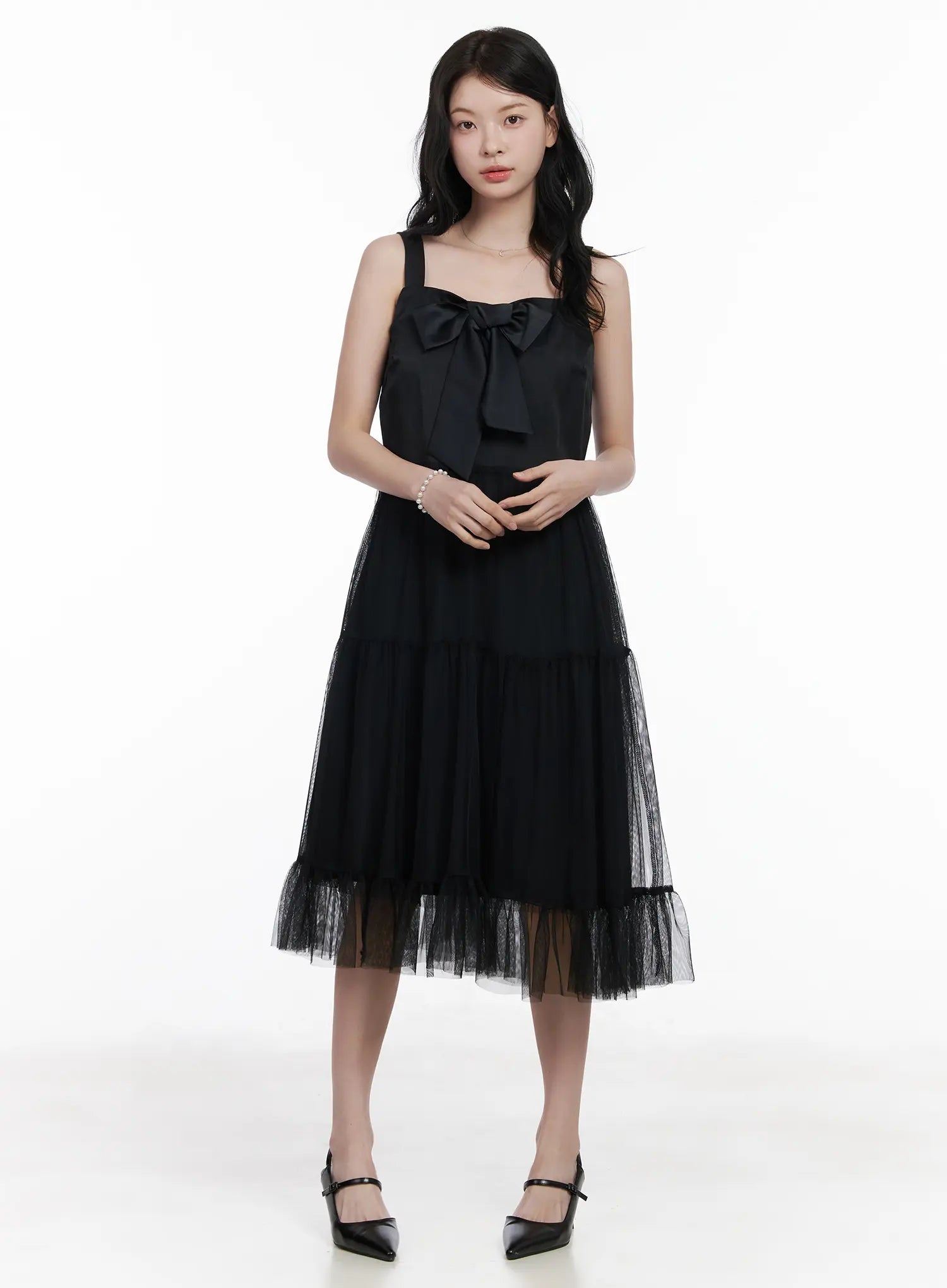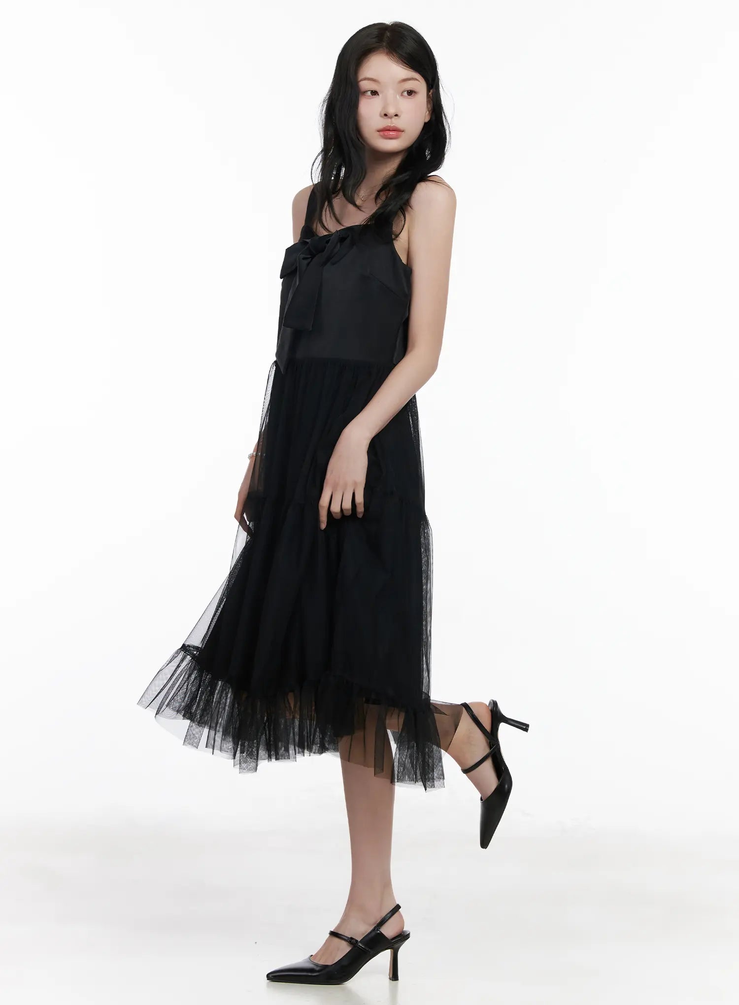 Bow Tiered Tulle Midi Dress CA509