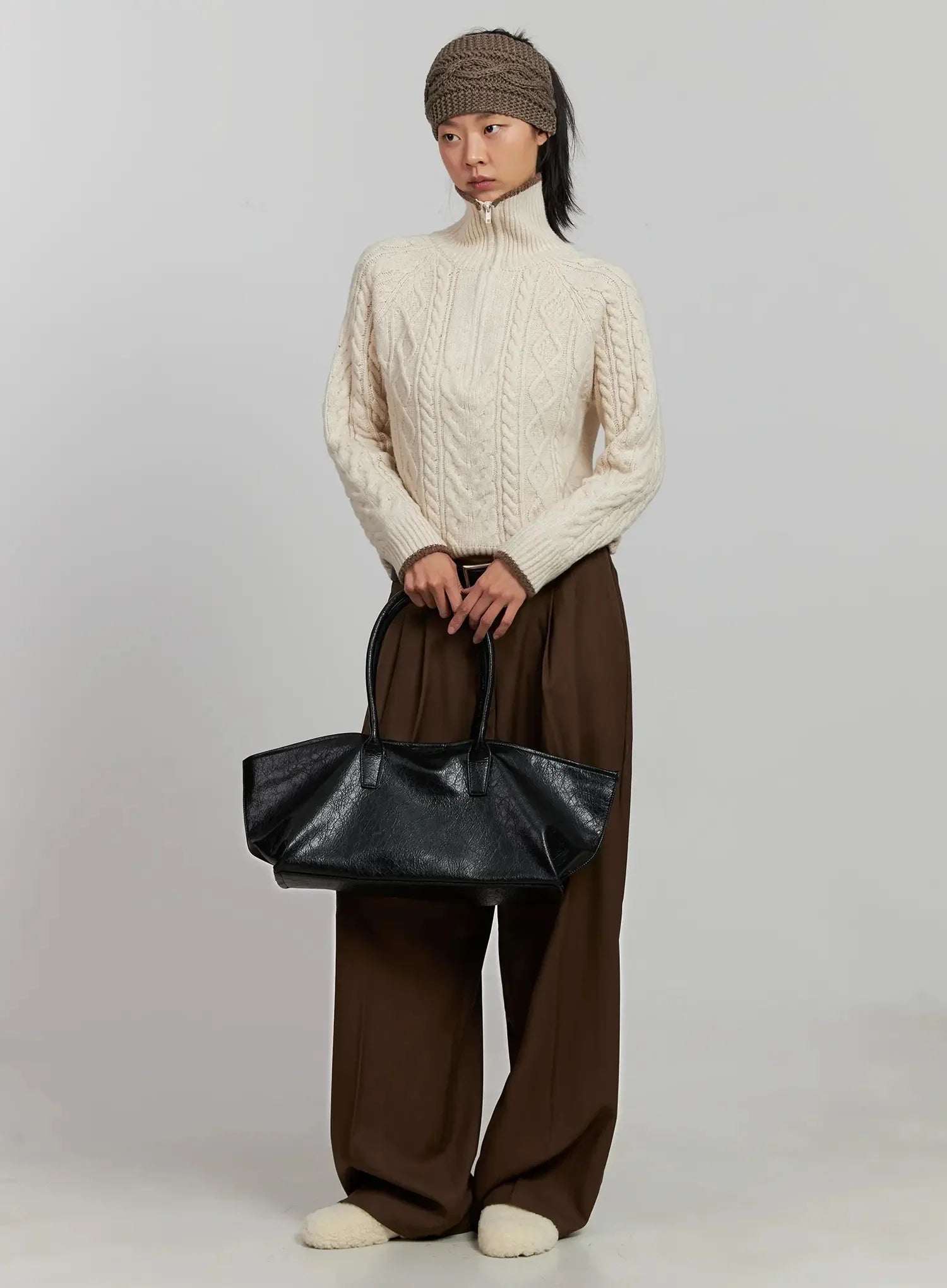 Model is wearing size L and the color Brown.