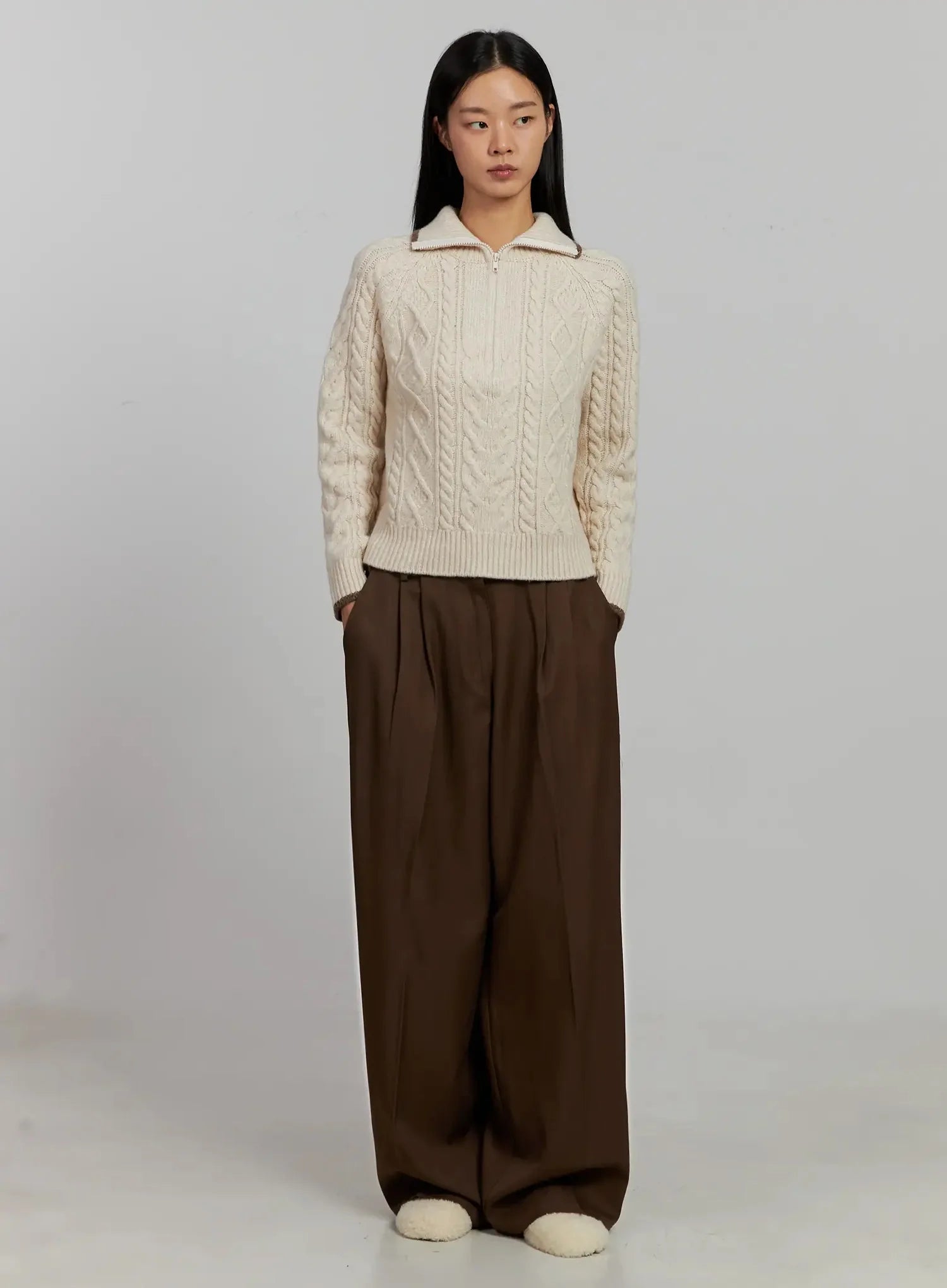 Brown Pleated Slacks IJ505