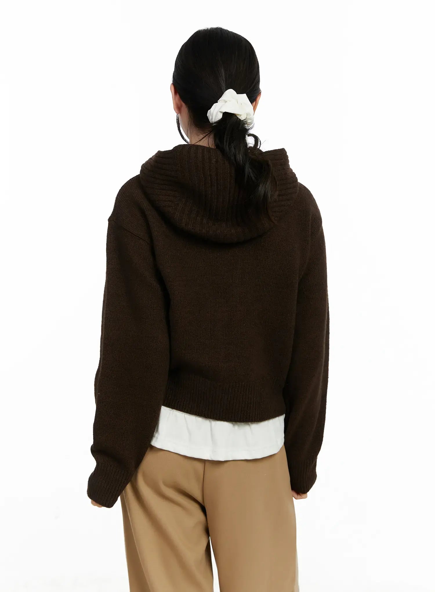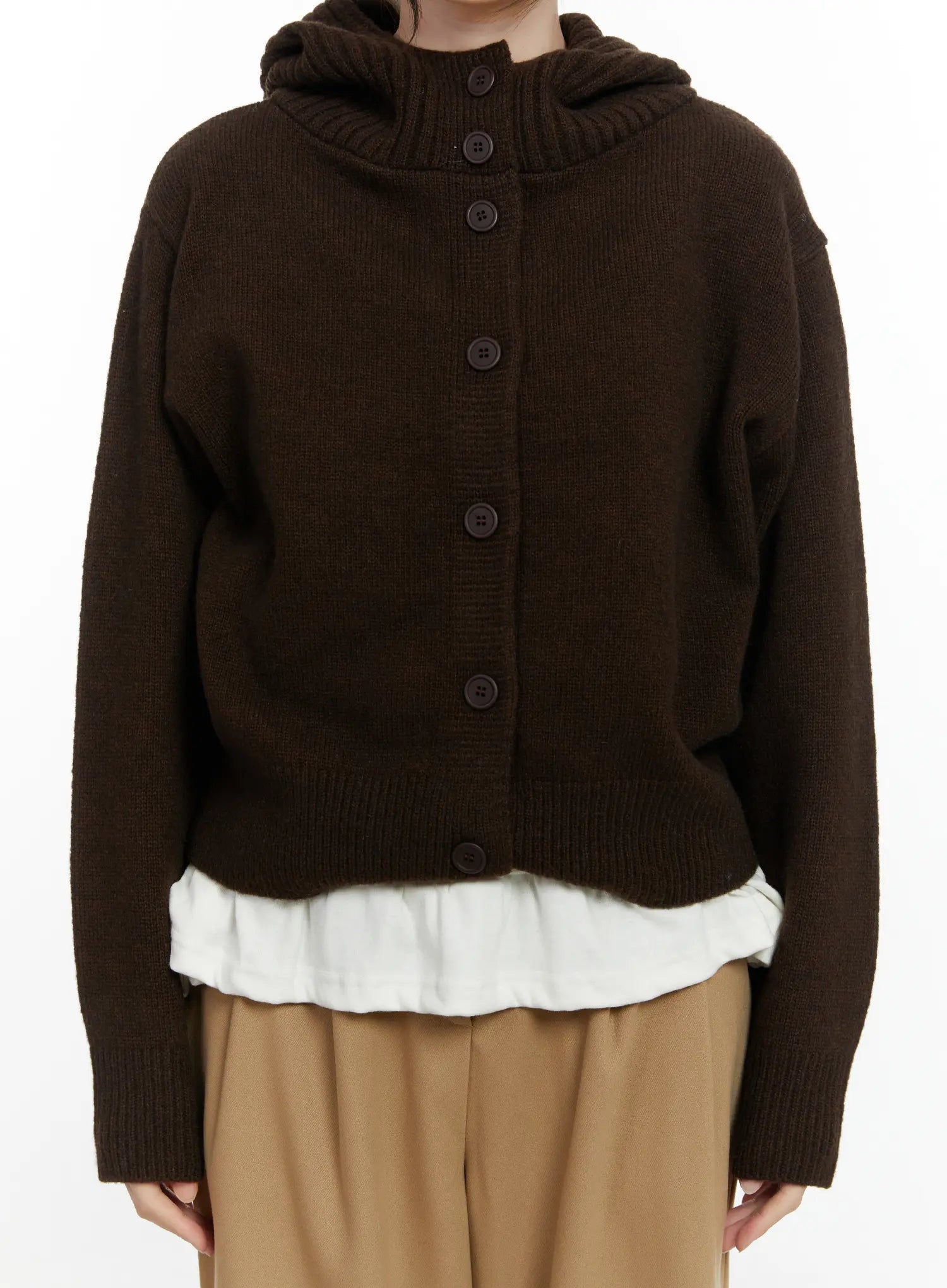 Button Hooded Knit Cardigan F502