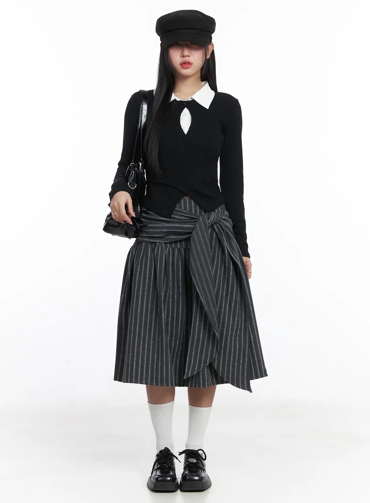 Button Wrap Collar Ribbed Long Sleeve Top CD529