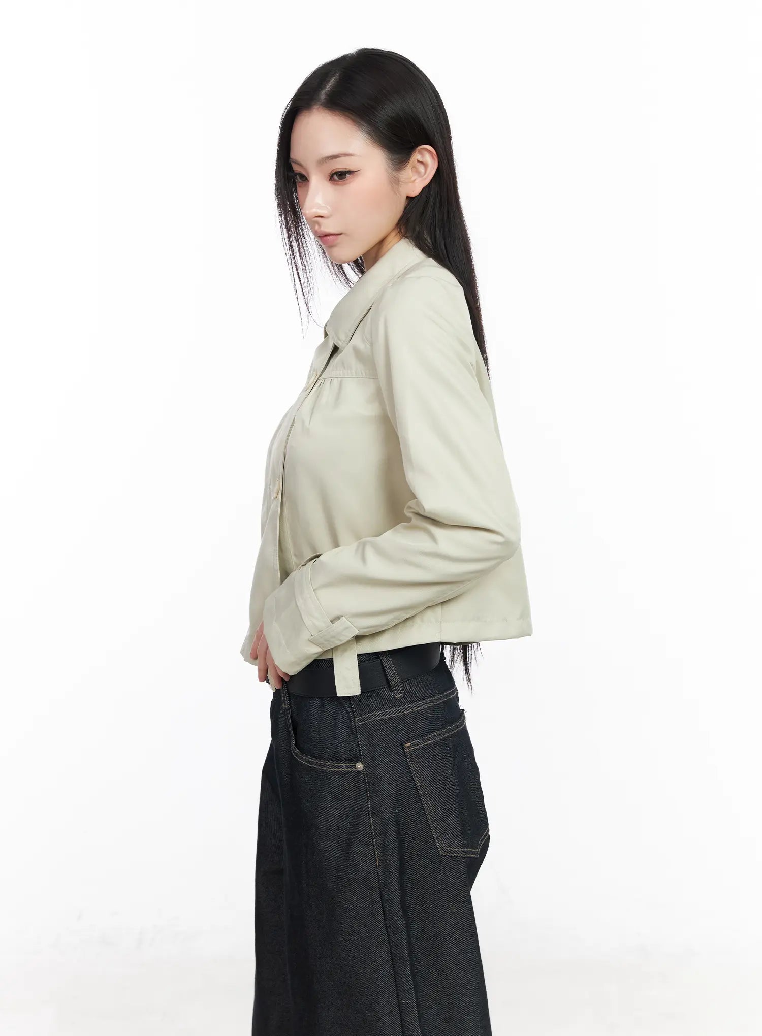 Buttoned Cropped Trench Jacket CM519