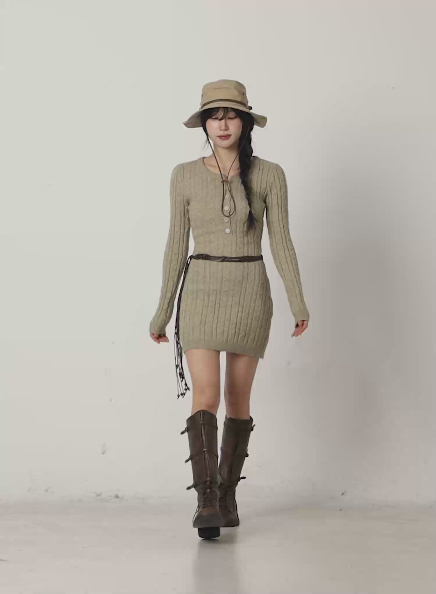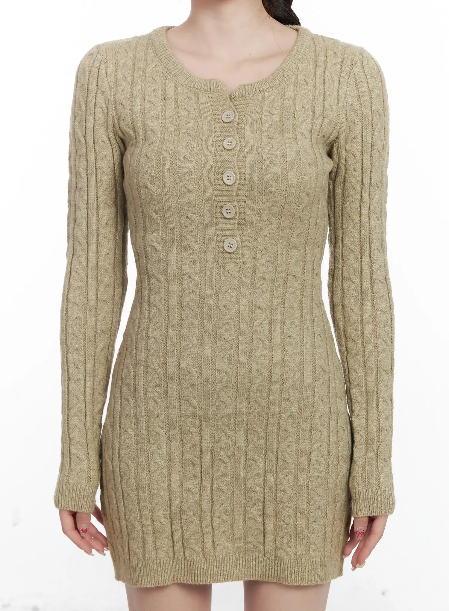 Cable Knit Button Sweater Mini Dress CJ526