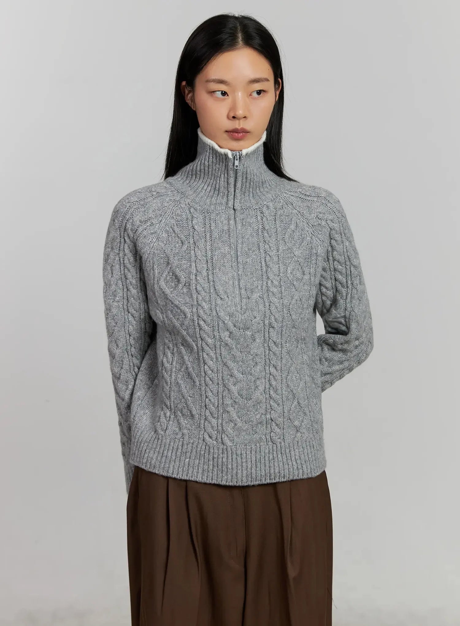 Cable Knit Half-Zip Sweater IJ505