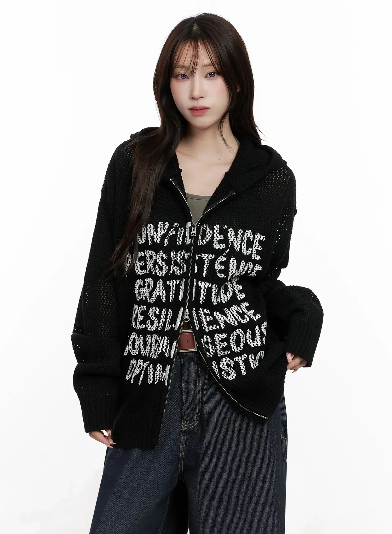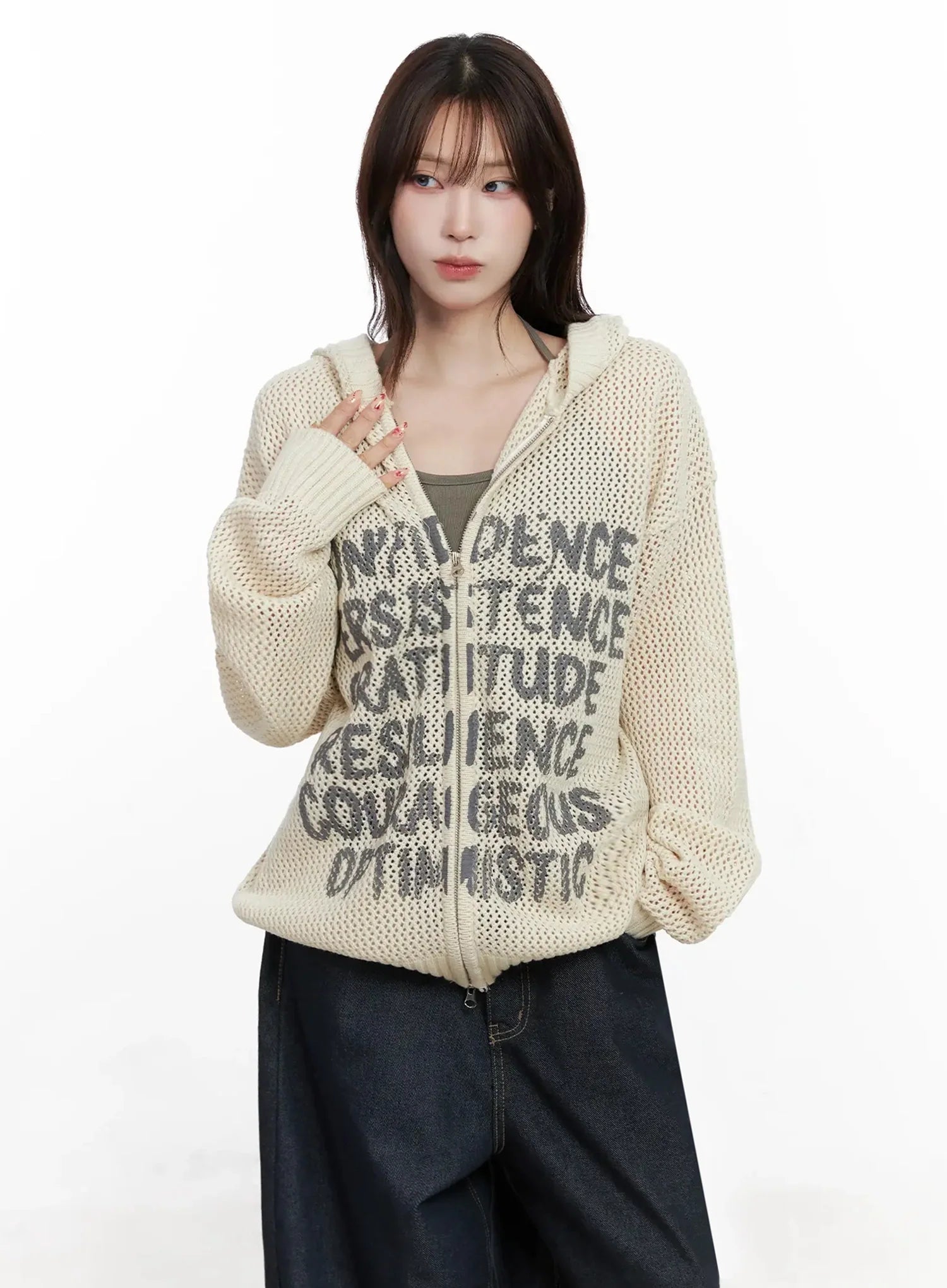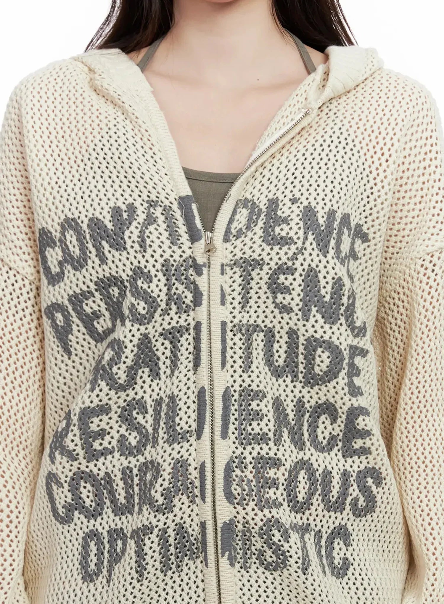 Casual Mesh Lettering Hoodie Jacket IN514