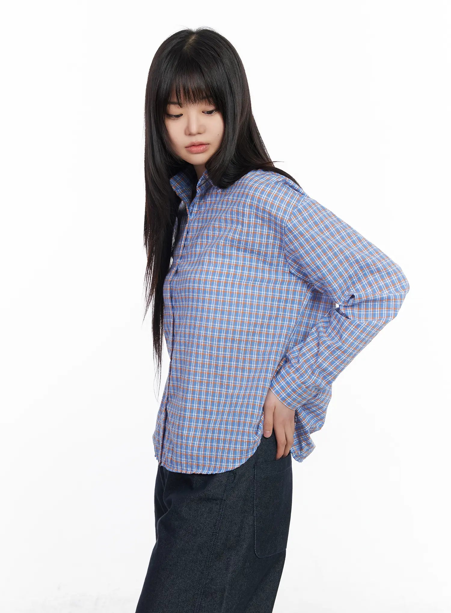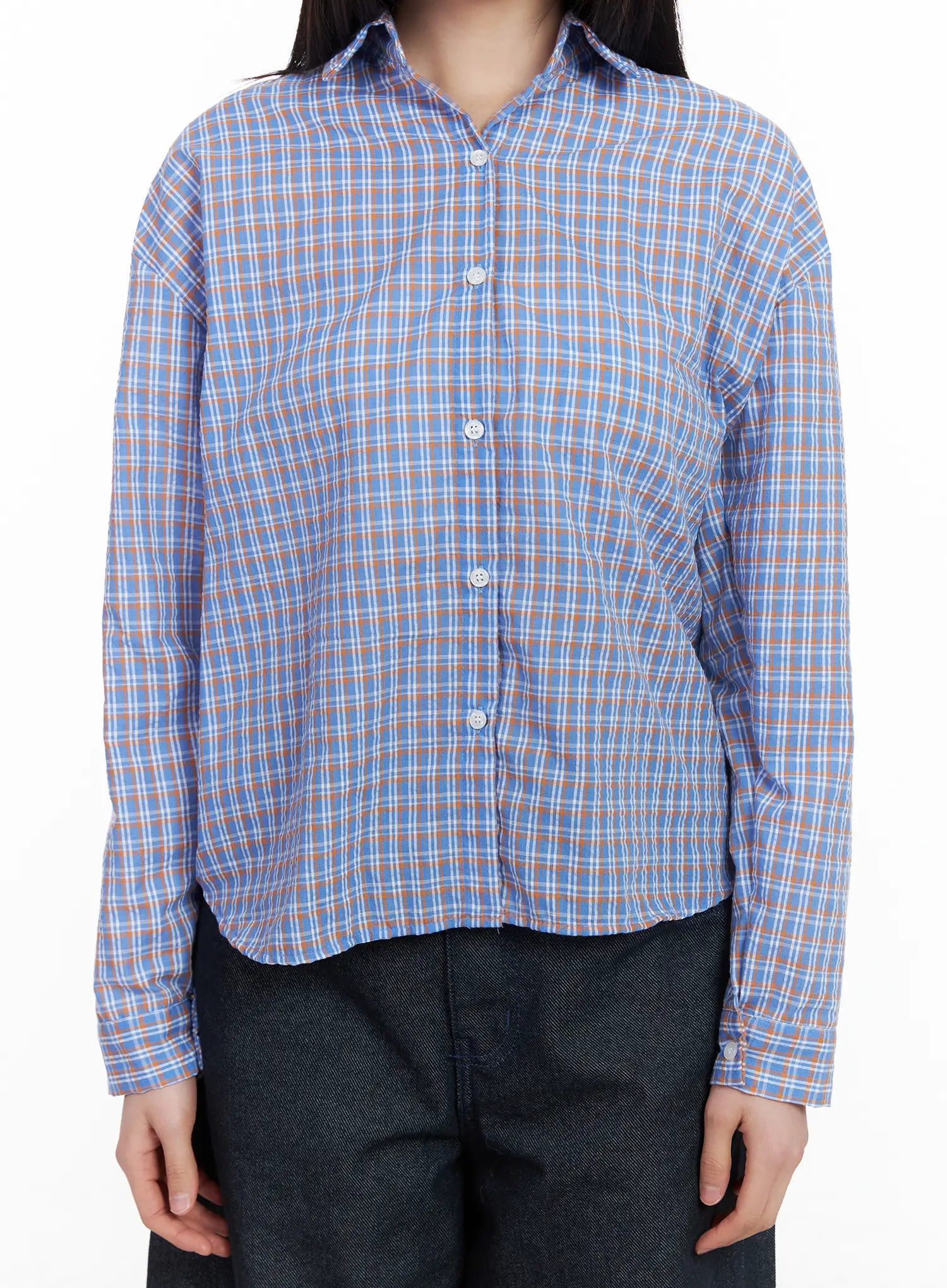 Casual Plaid Button-Up Blouse CM513