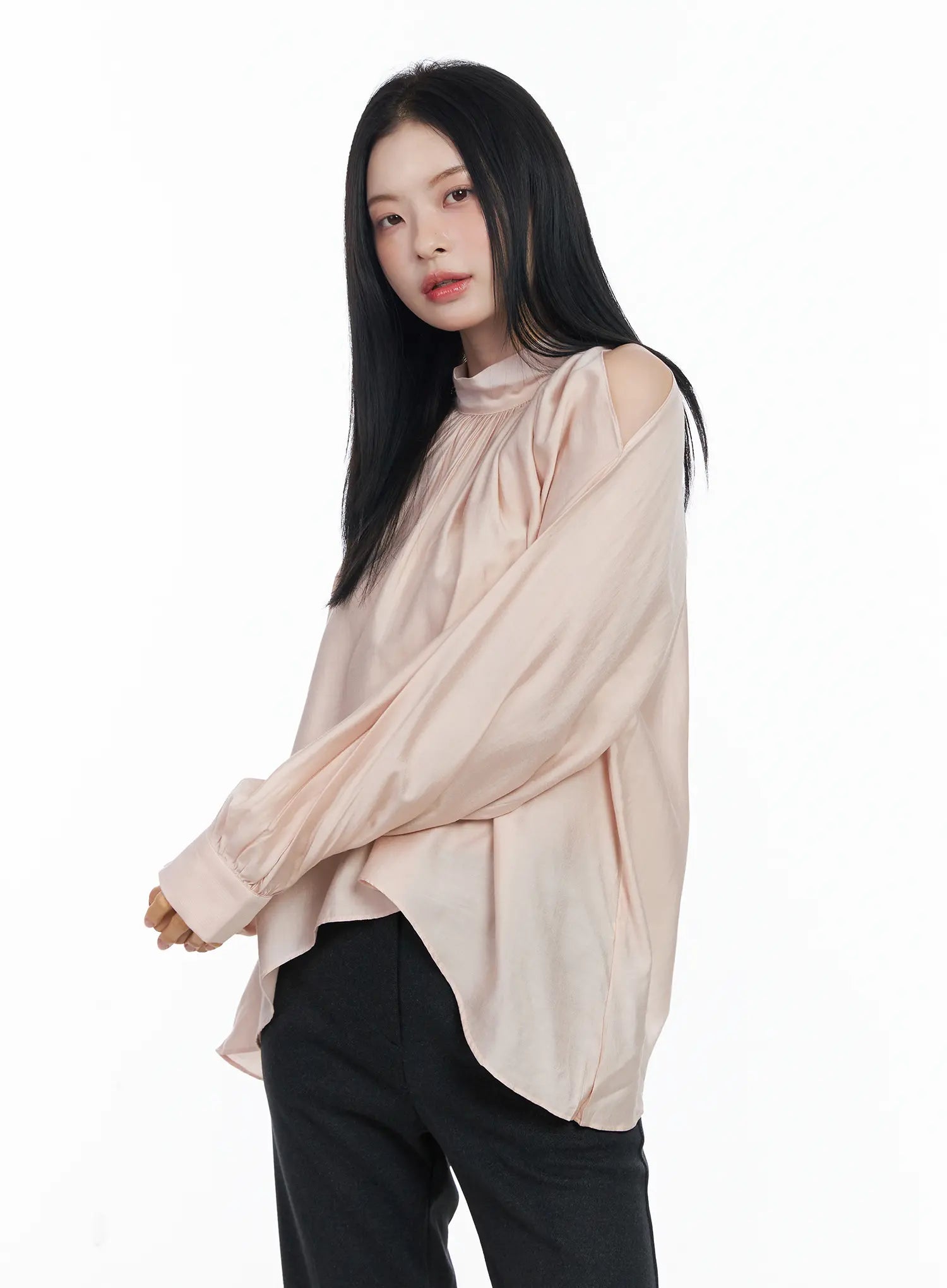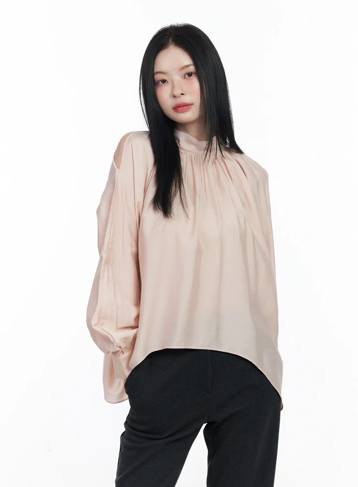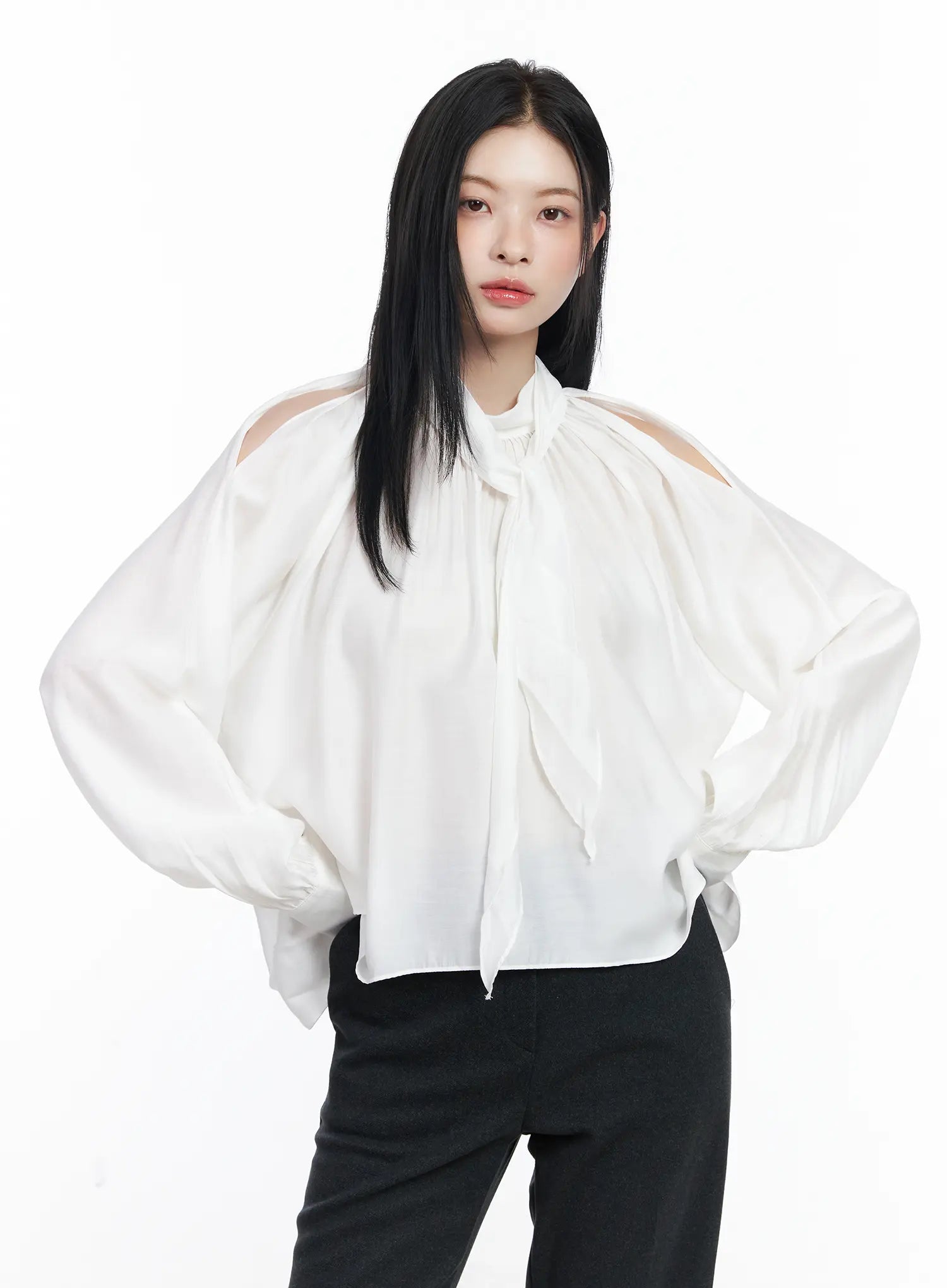 Chic Open Shoulder Scarf Blouse CJ519