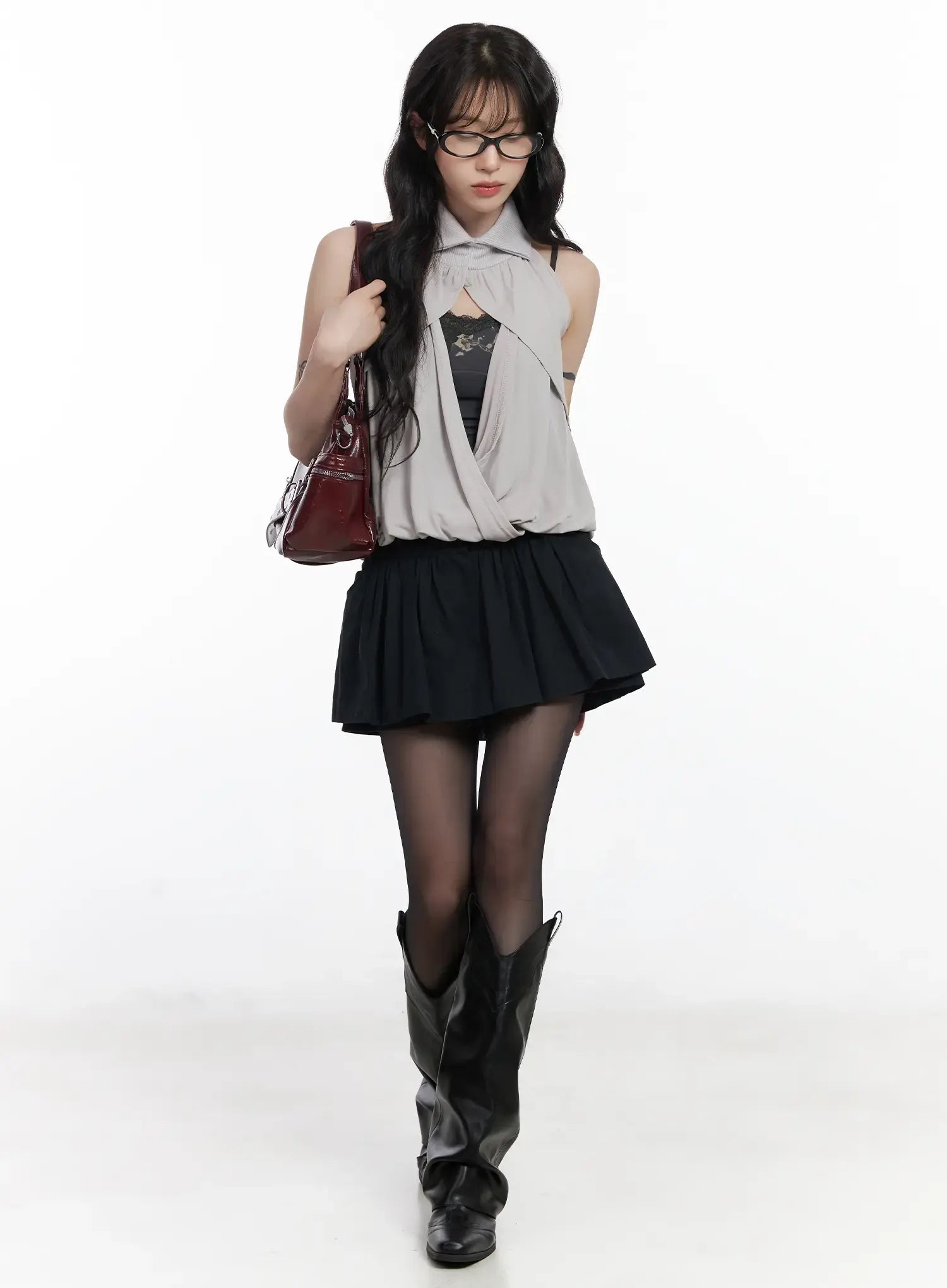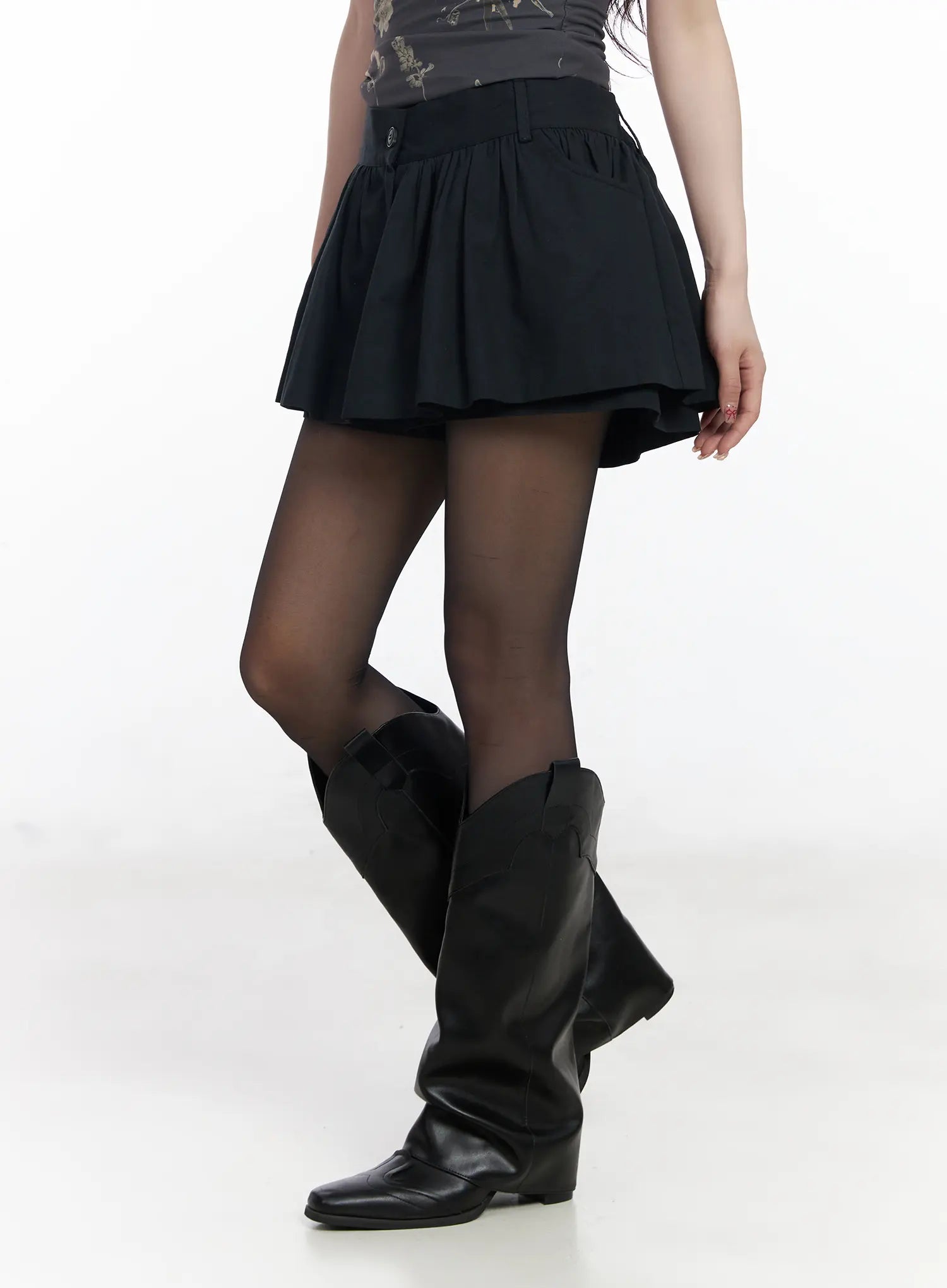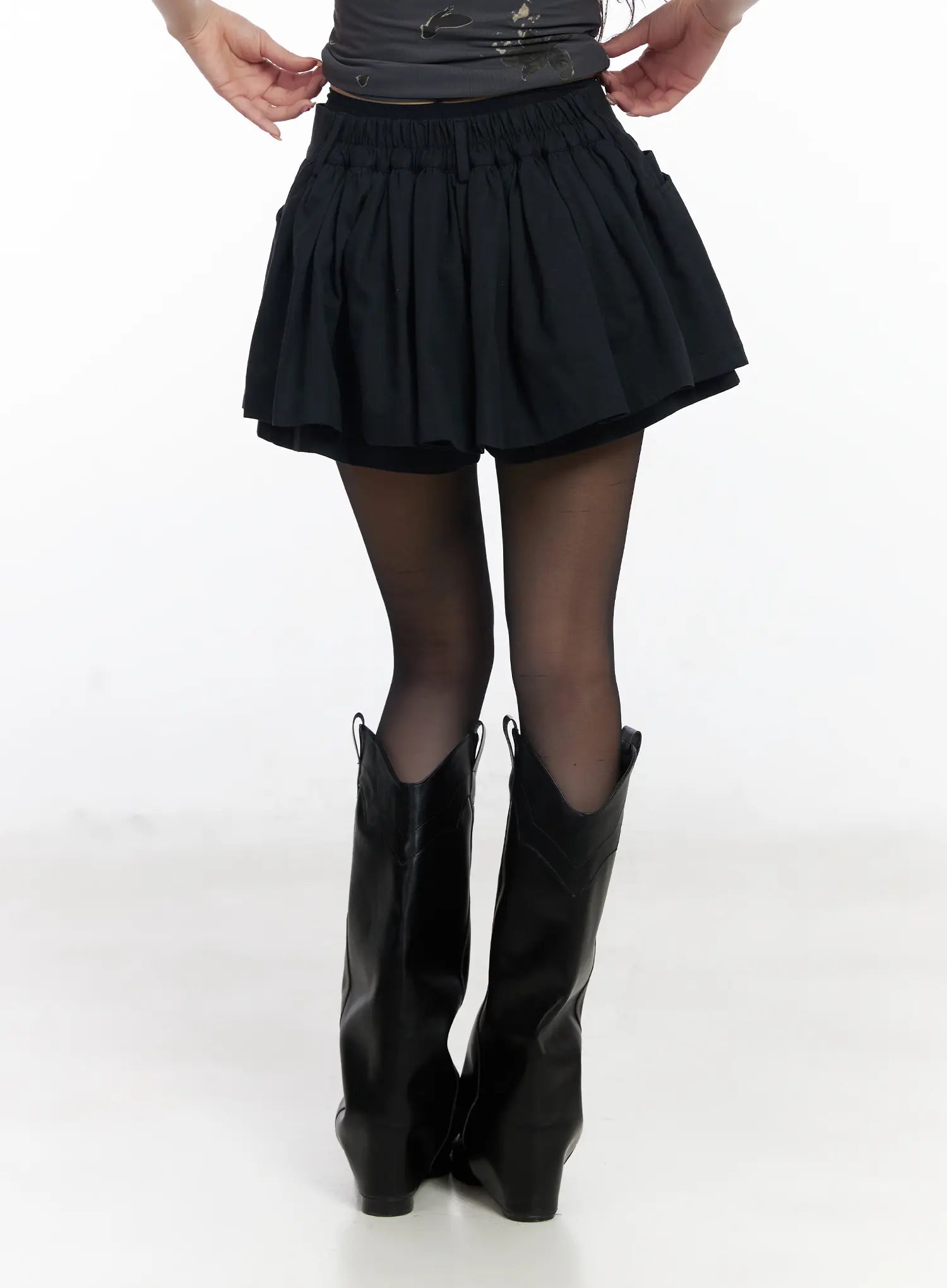 Chic Pleated Mini Skort with Elastic Waistband CJ526