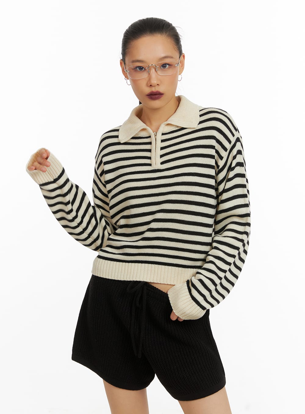 Collared Zip-Up Neck Pullover IA417