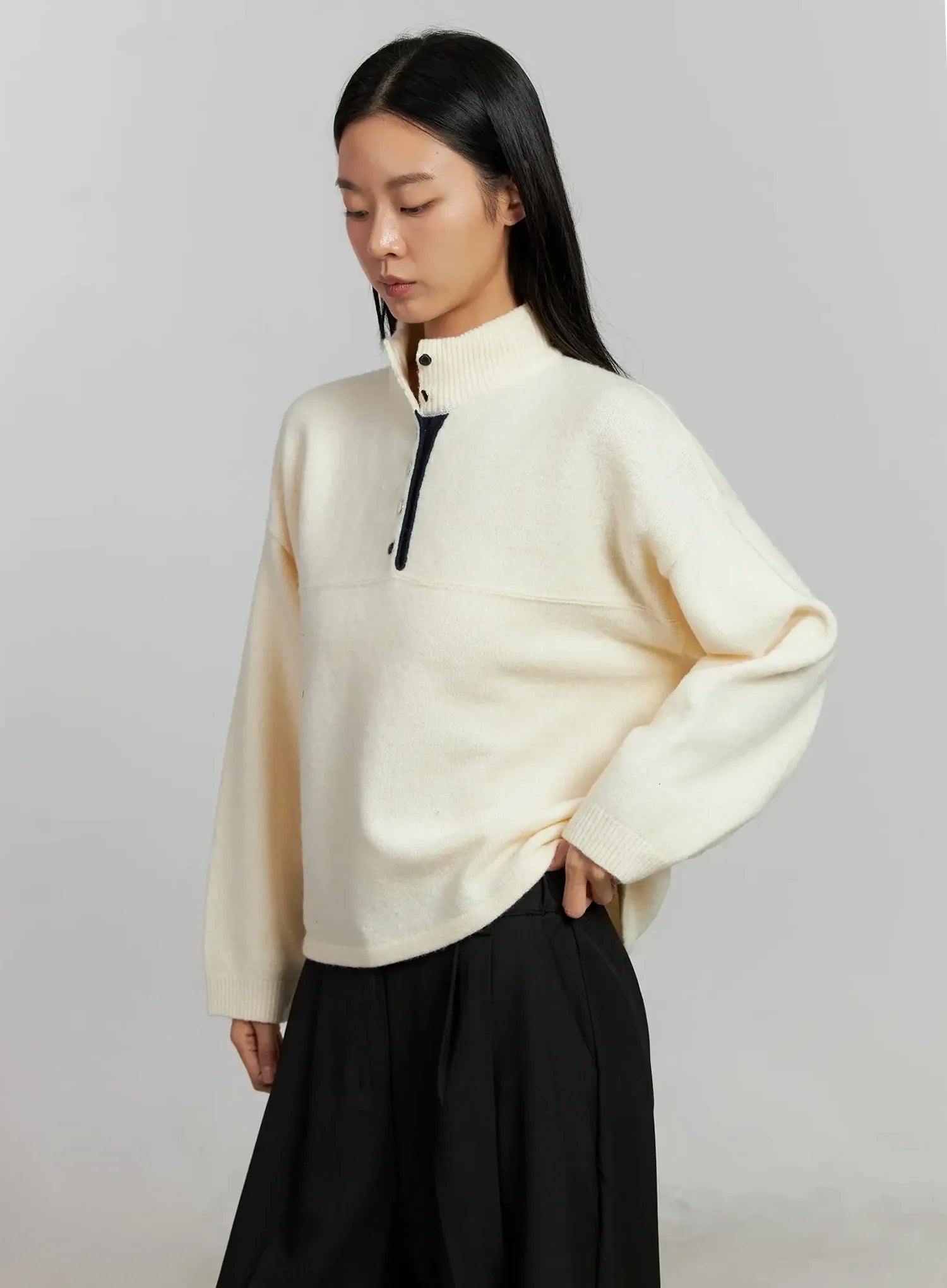 Contrast Collar Knit Top IJ505