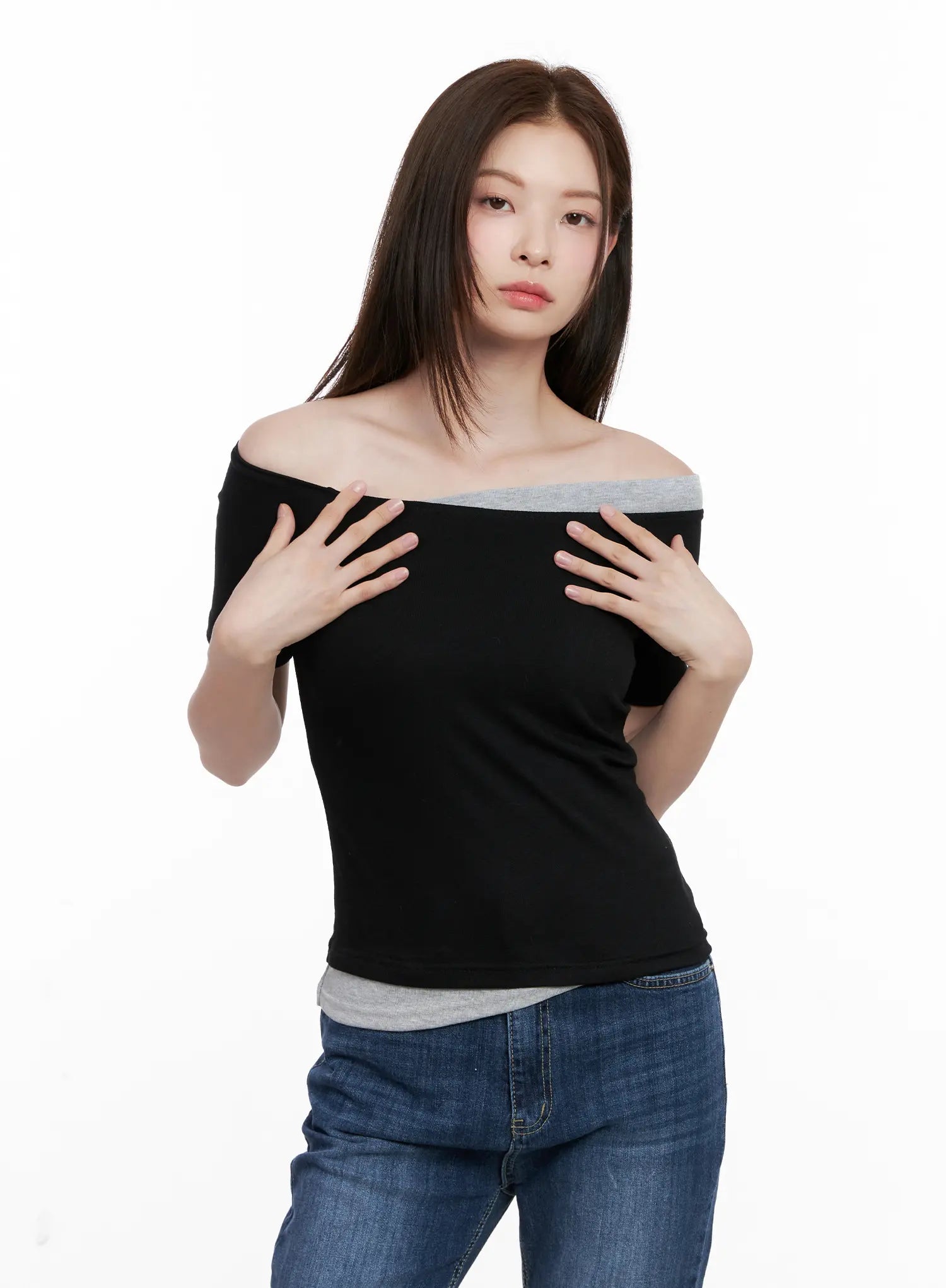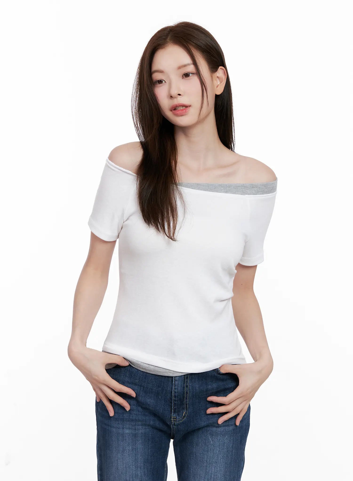 Contrast Off-Shoulder Short-Sleeve Tee CL524