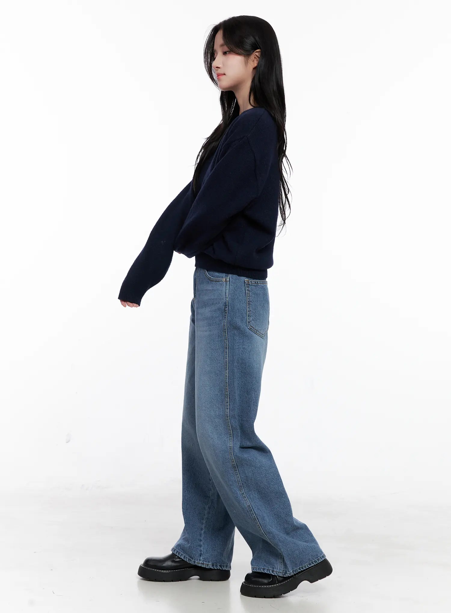 Model is wearing size M/L and the color Dark blue.