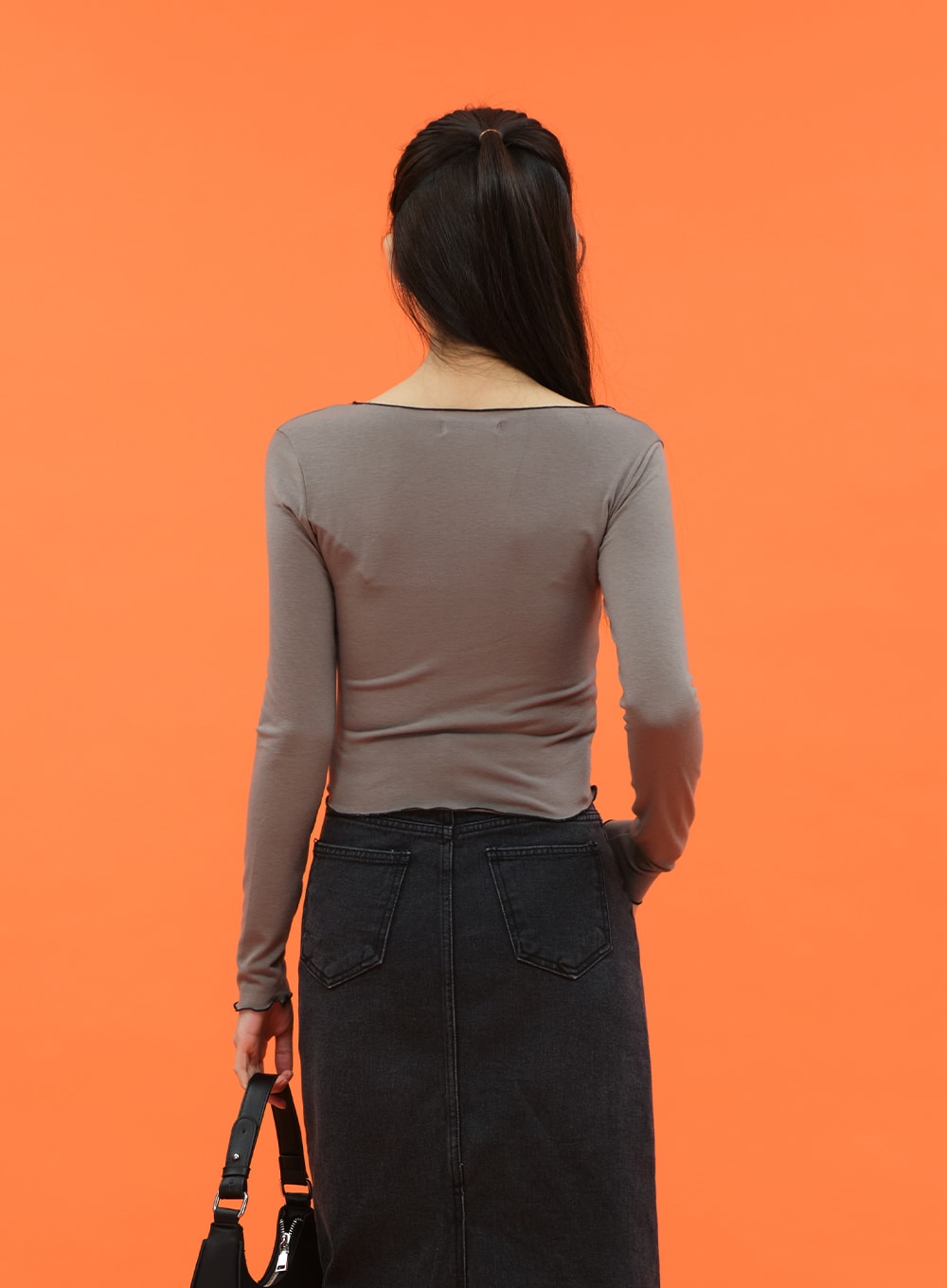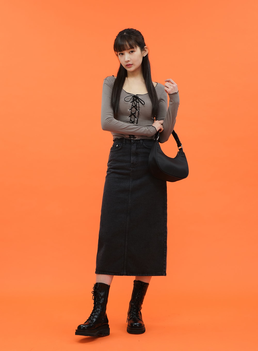 Cropped Long Sleeve Top with Front Lace Detail C1703