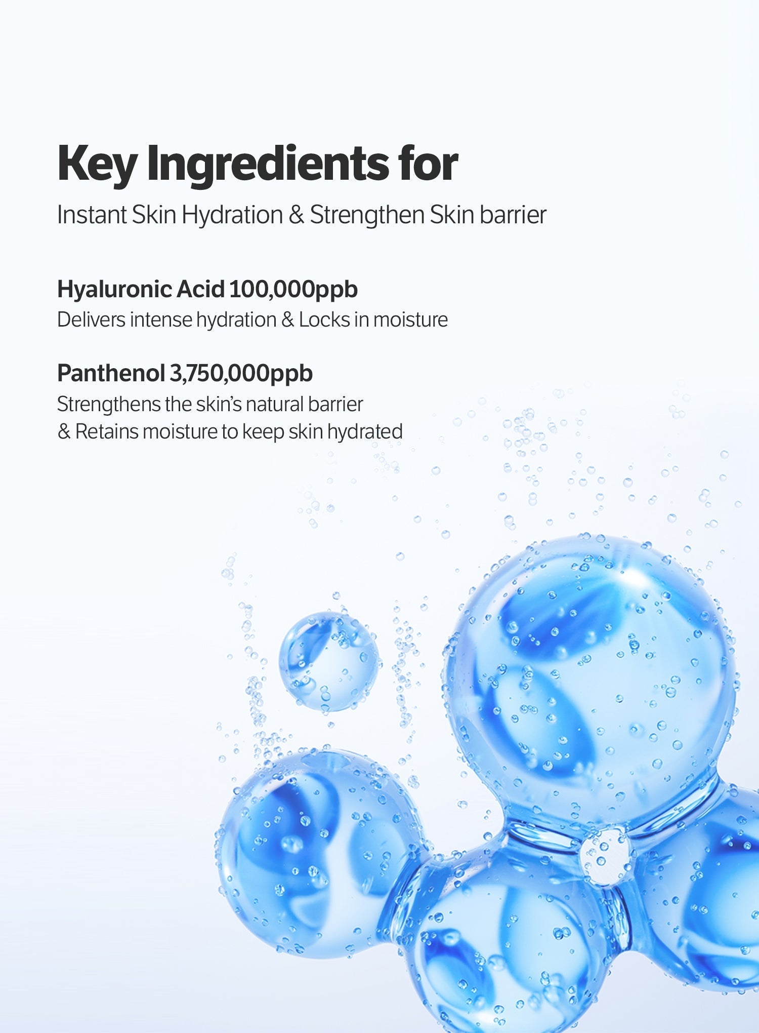 - Hyaluronic acid and panthenol deeply hydrate, lock in moisture, and strengthen barrier