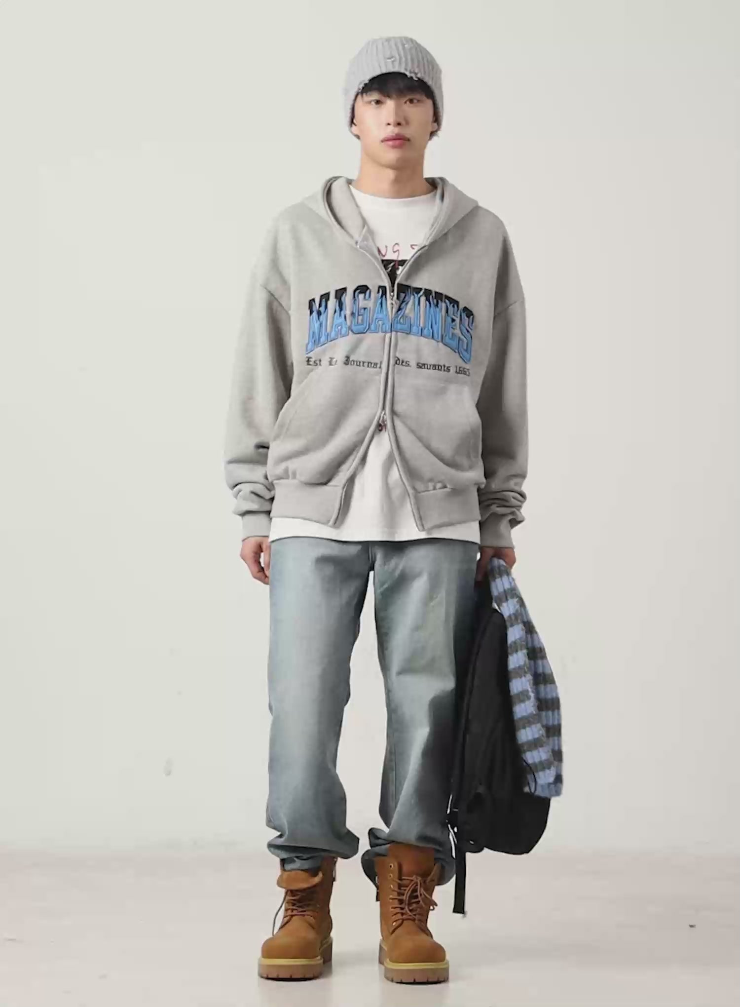 Model is wearing size One Size and the color Gray.