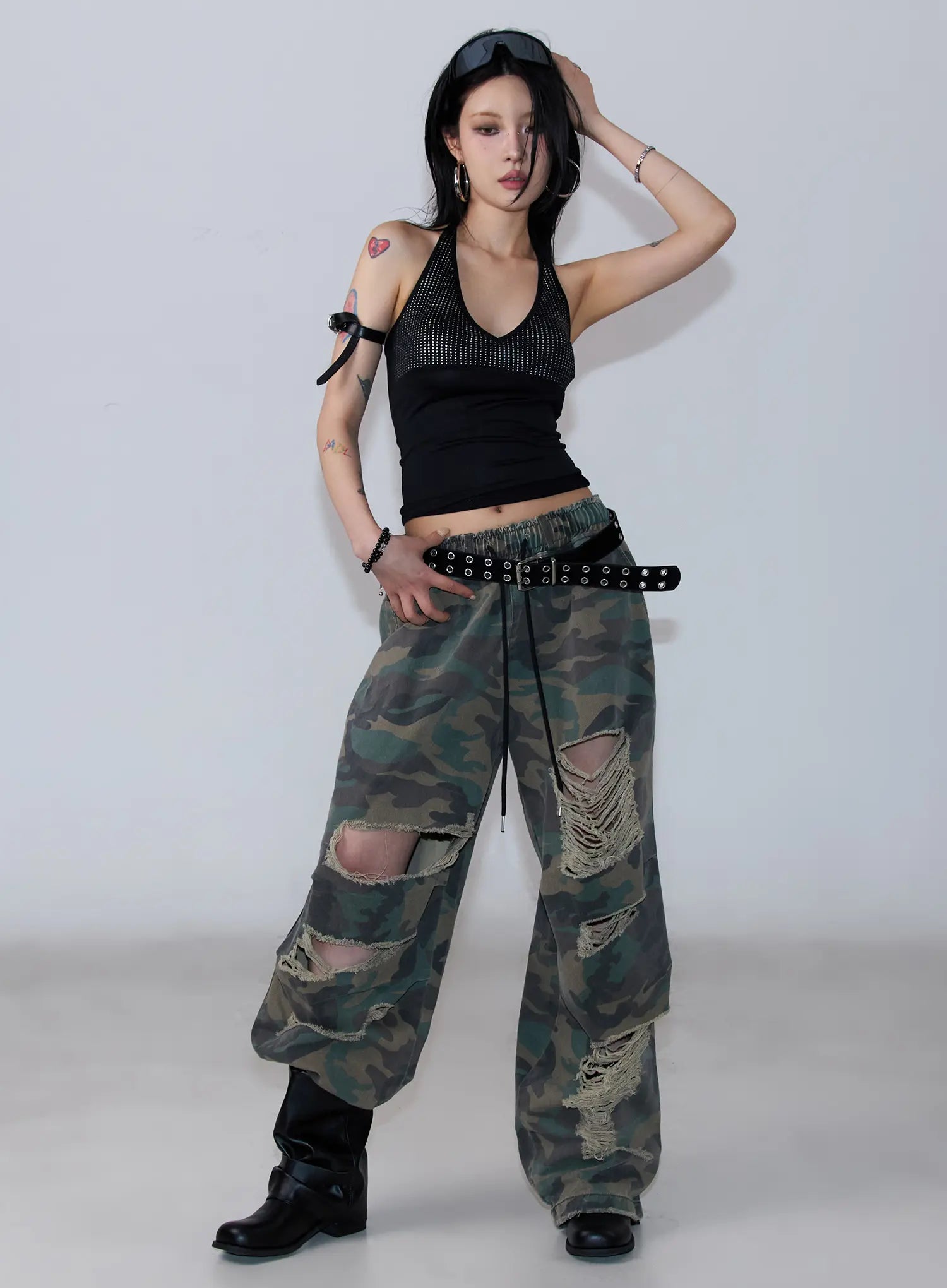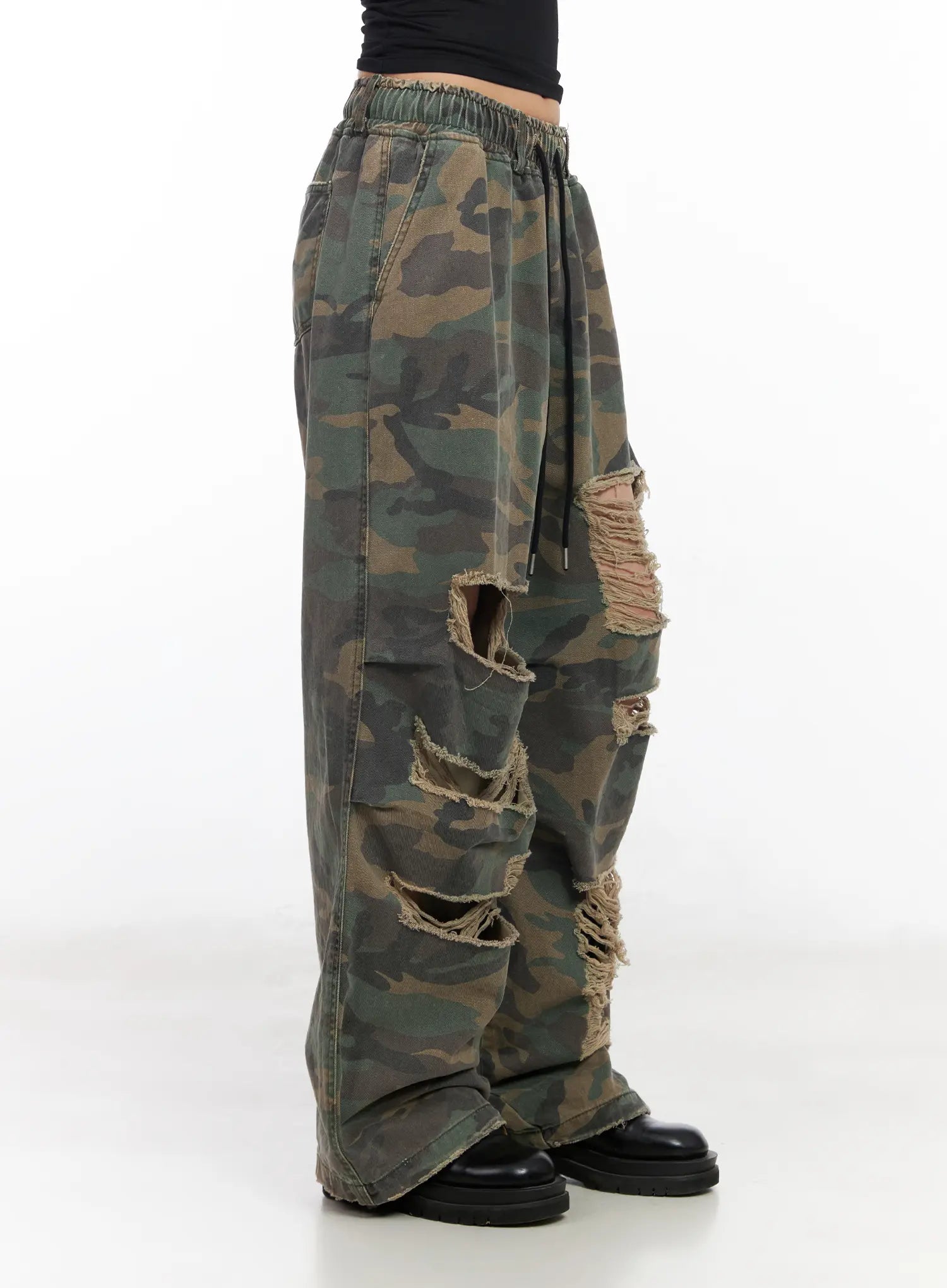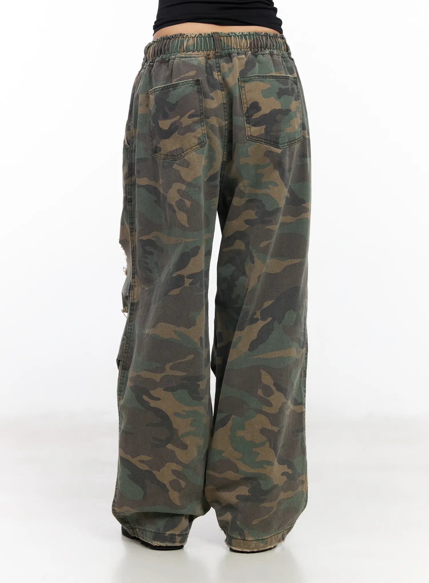 Distressed Wide-Leg Camo Pants CF527