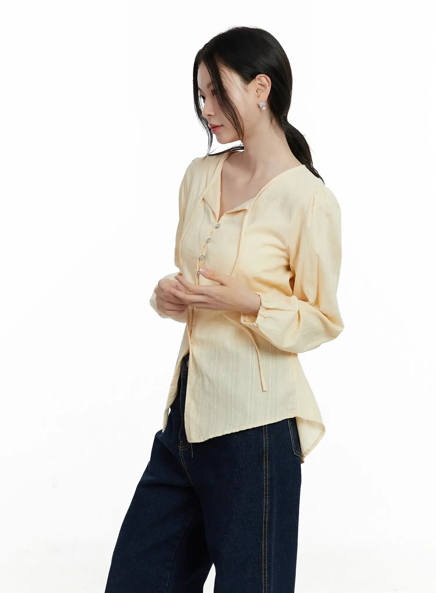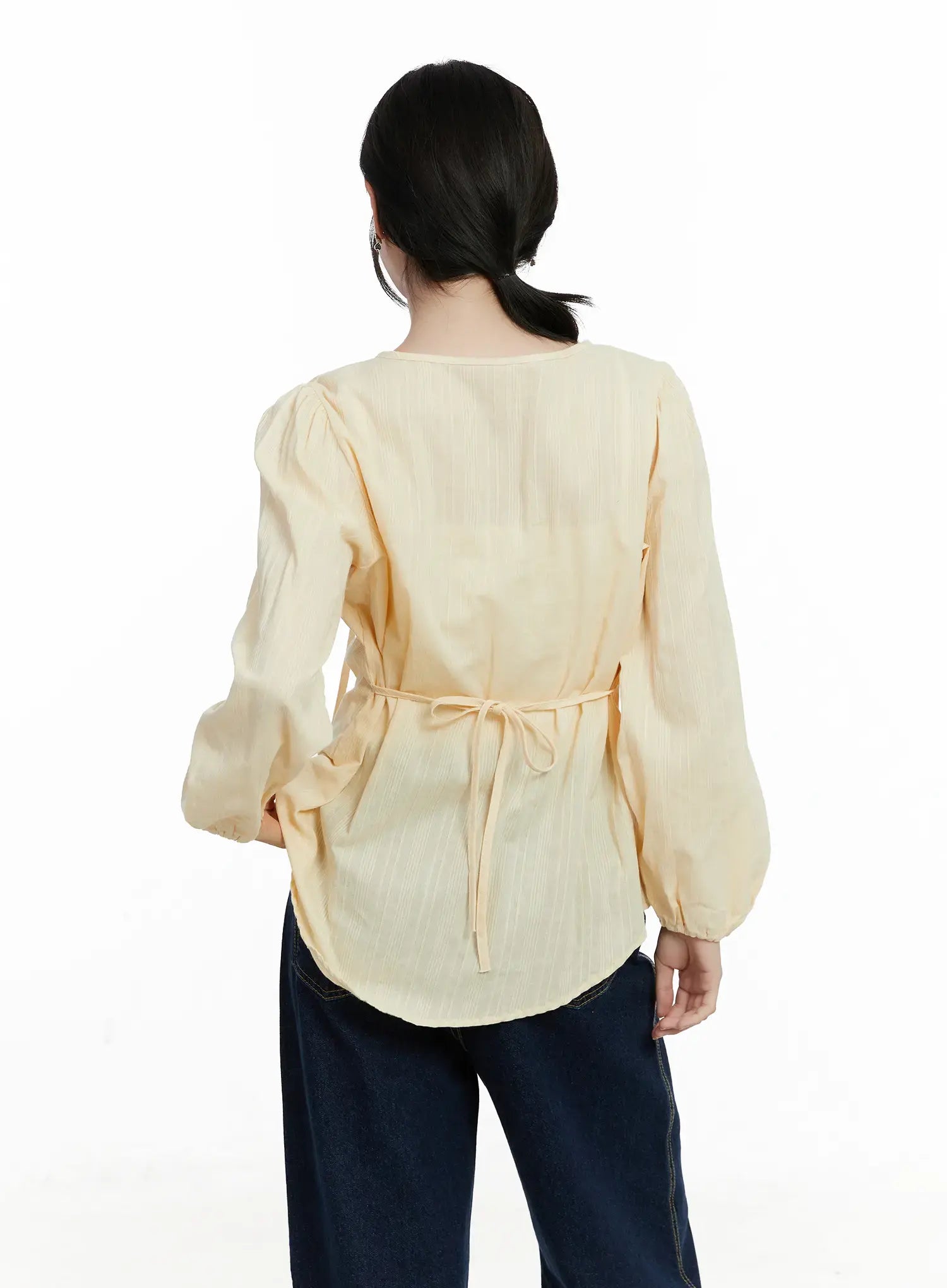Model is wearing size S/M and the color Light yellow.