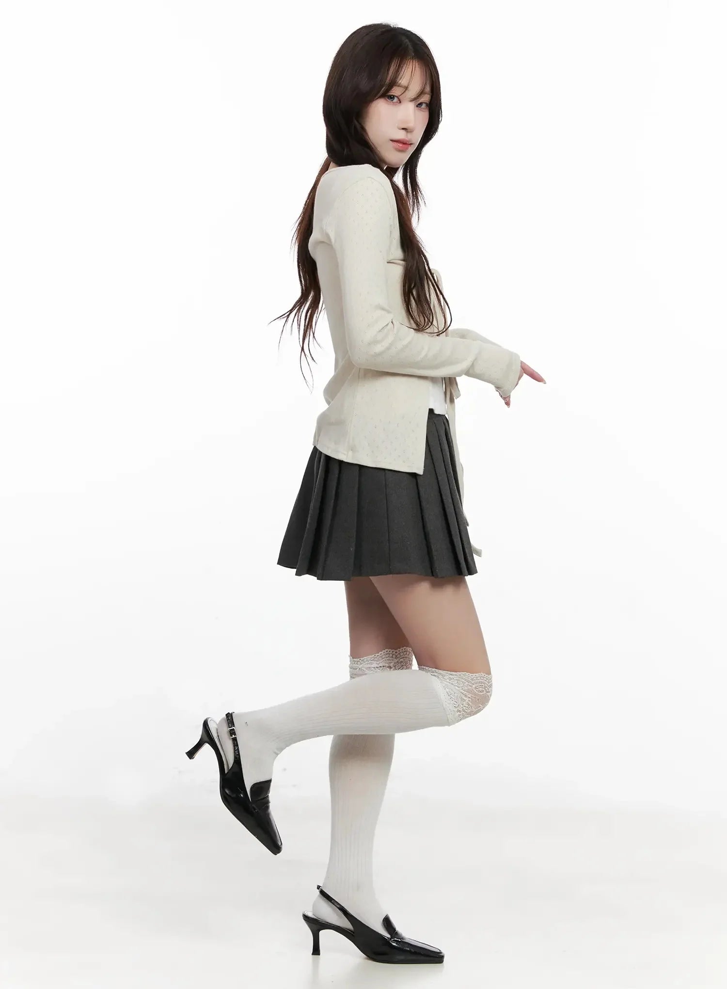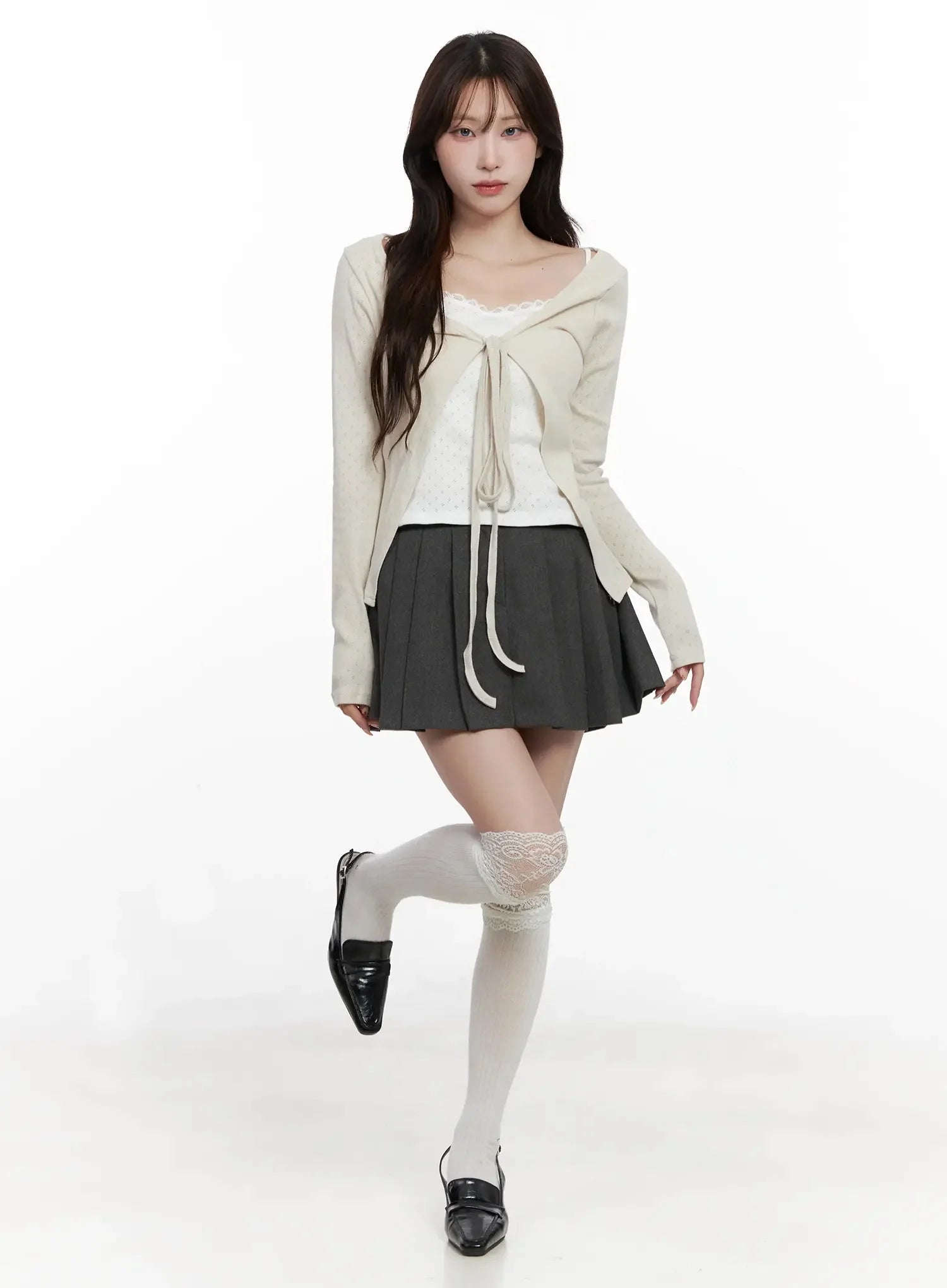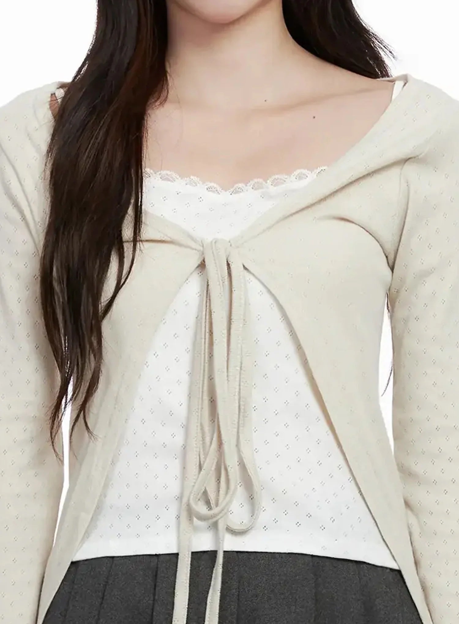 Elegant Tie-Front Ribbon Cardigan IN514