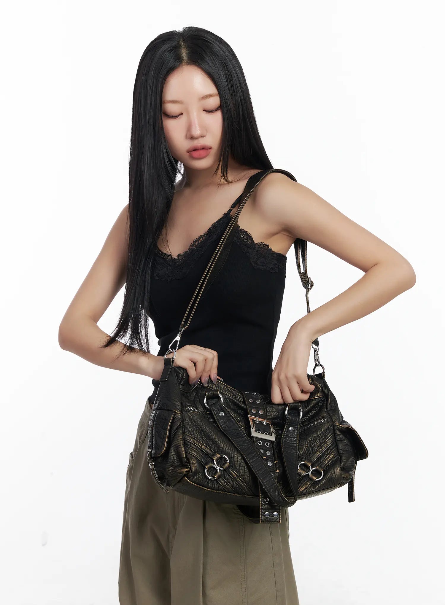 Faux-Leather Eyelet Belted Crossbody Bag CF503