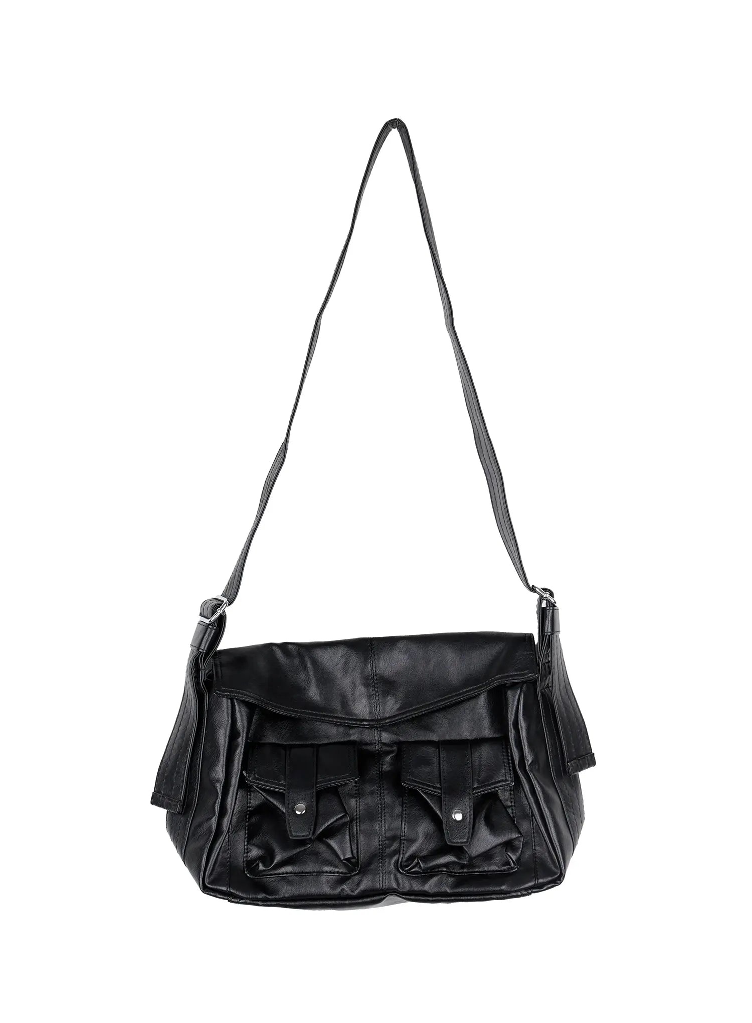 Faux Leather Two-Pocket Crossbody Bag IO506