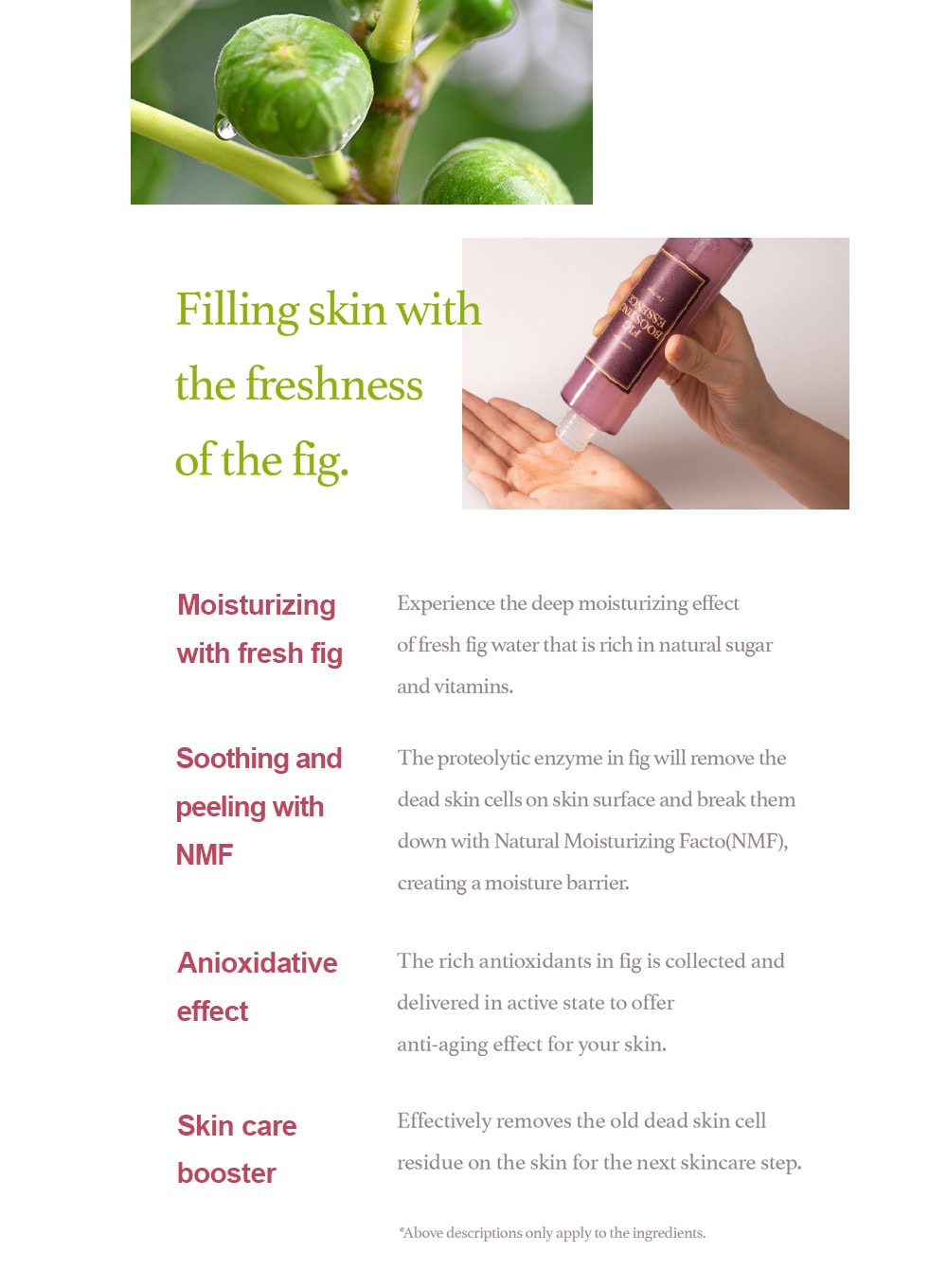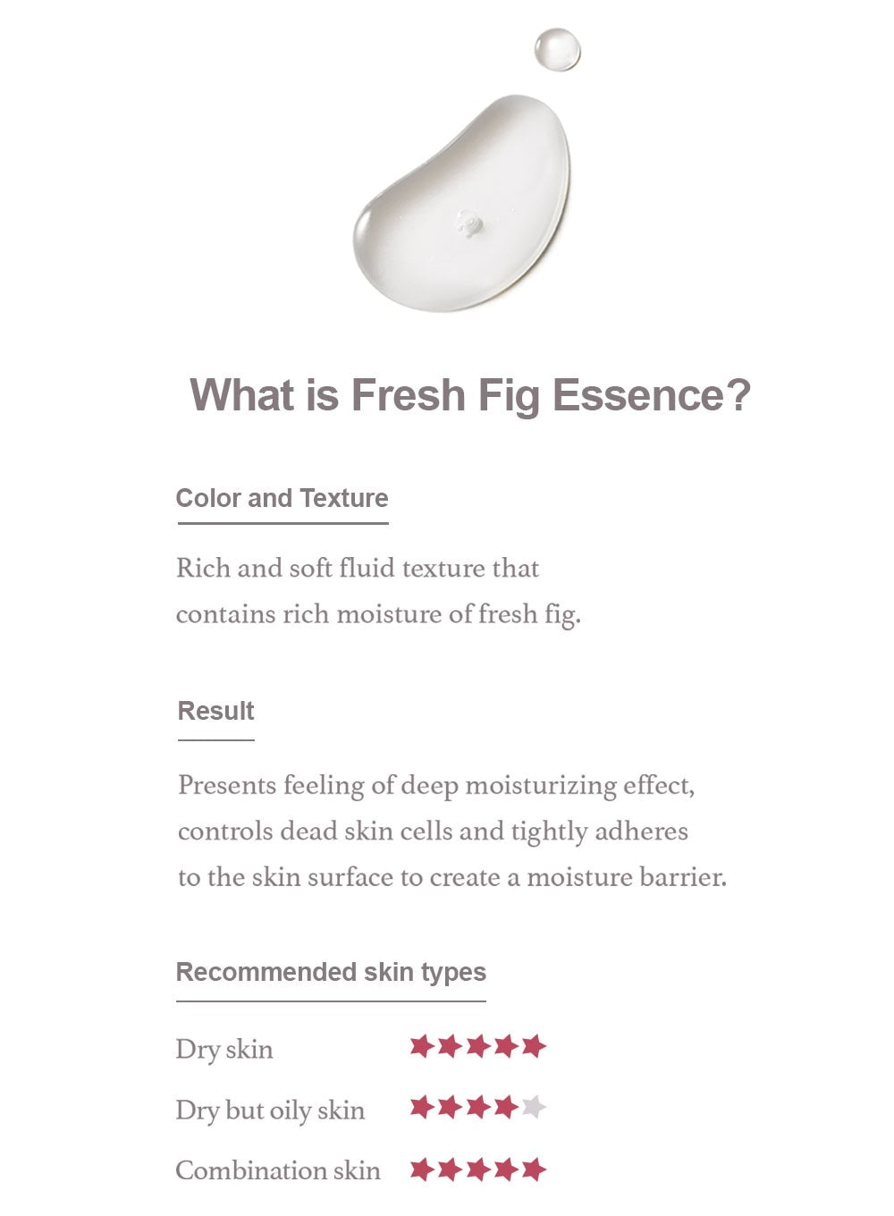A vegan essence containing 62% fig extract that deeply moisturizes the skin.