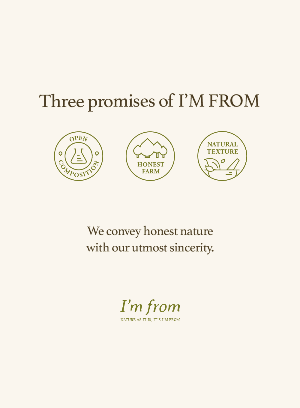I'm From is a Korean skincare brand known for using natural ingredients to create gentle and effective products. They transparently disclose the source of their ingredients and feature products made with regional specialties.