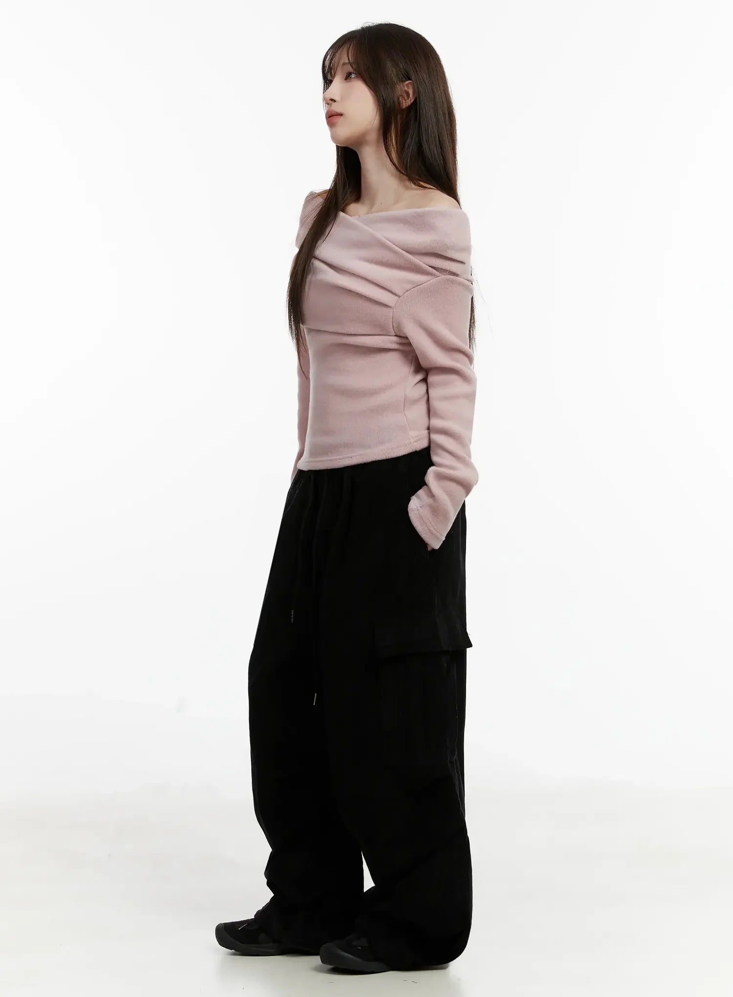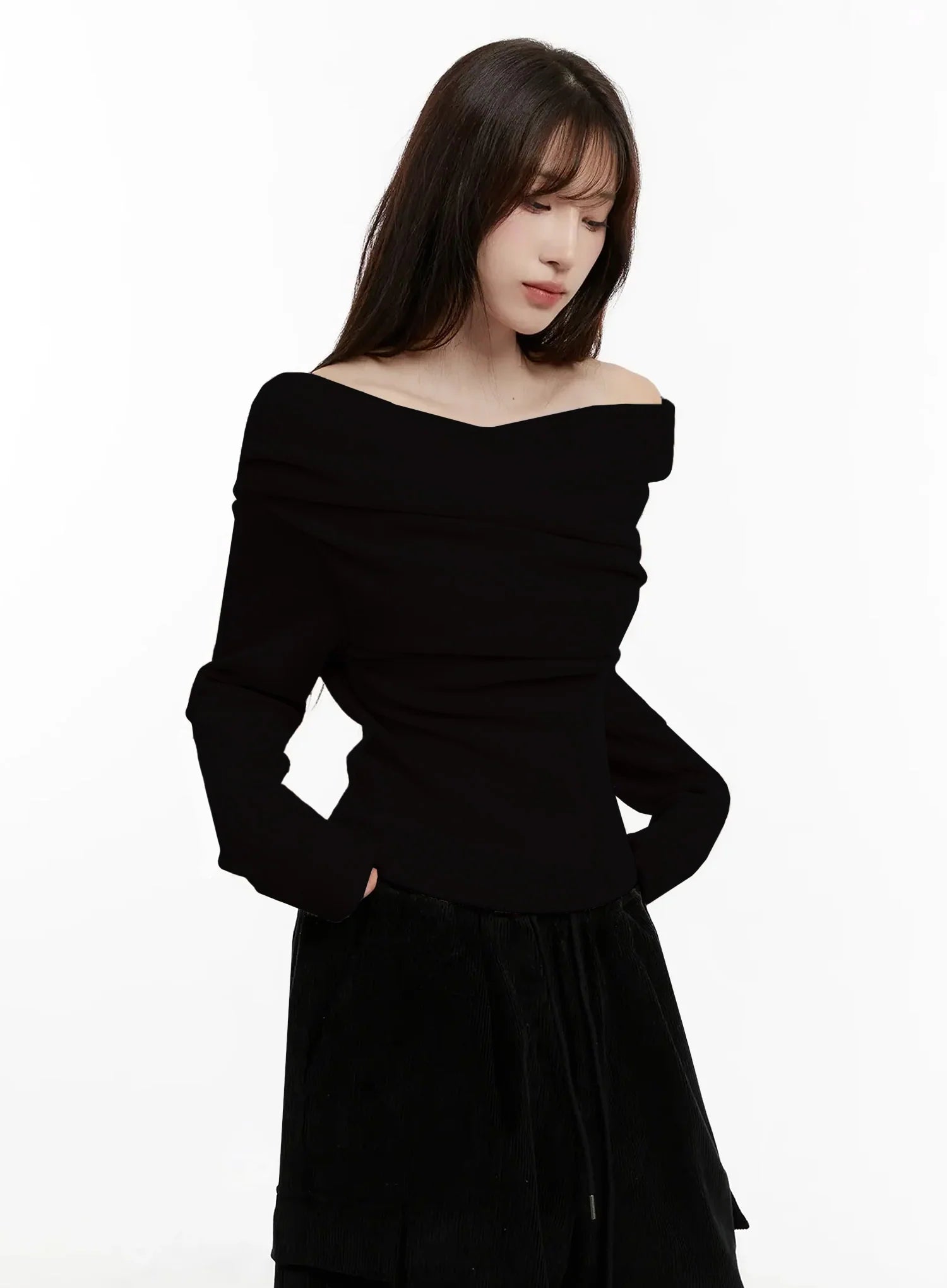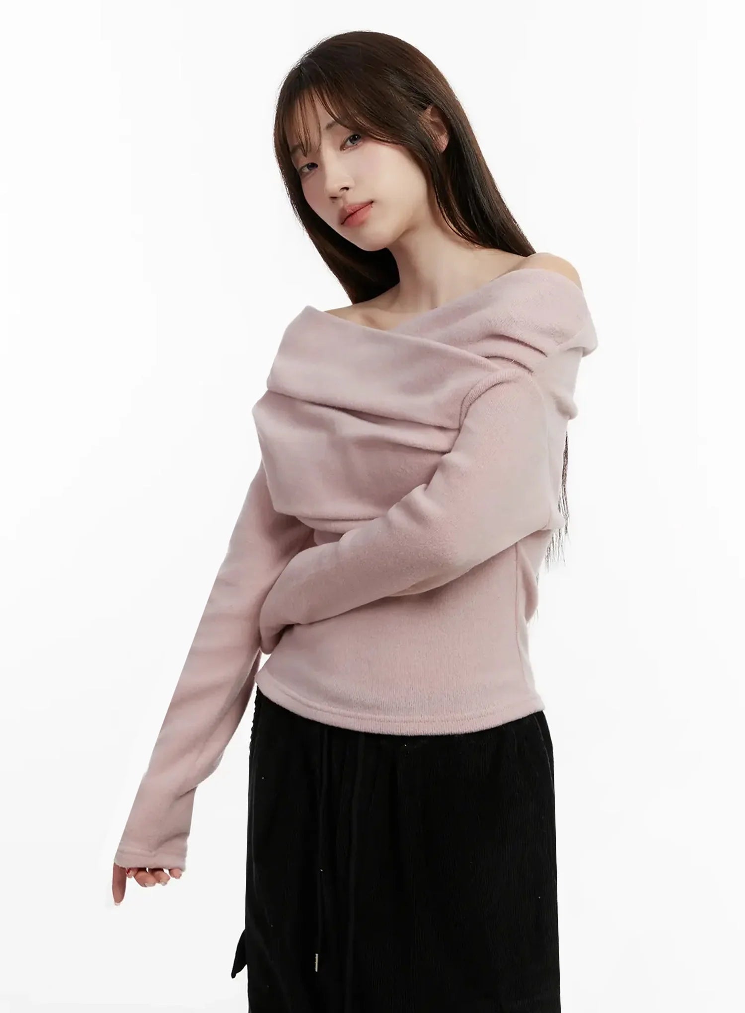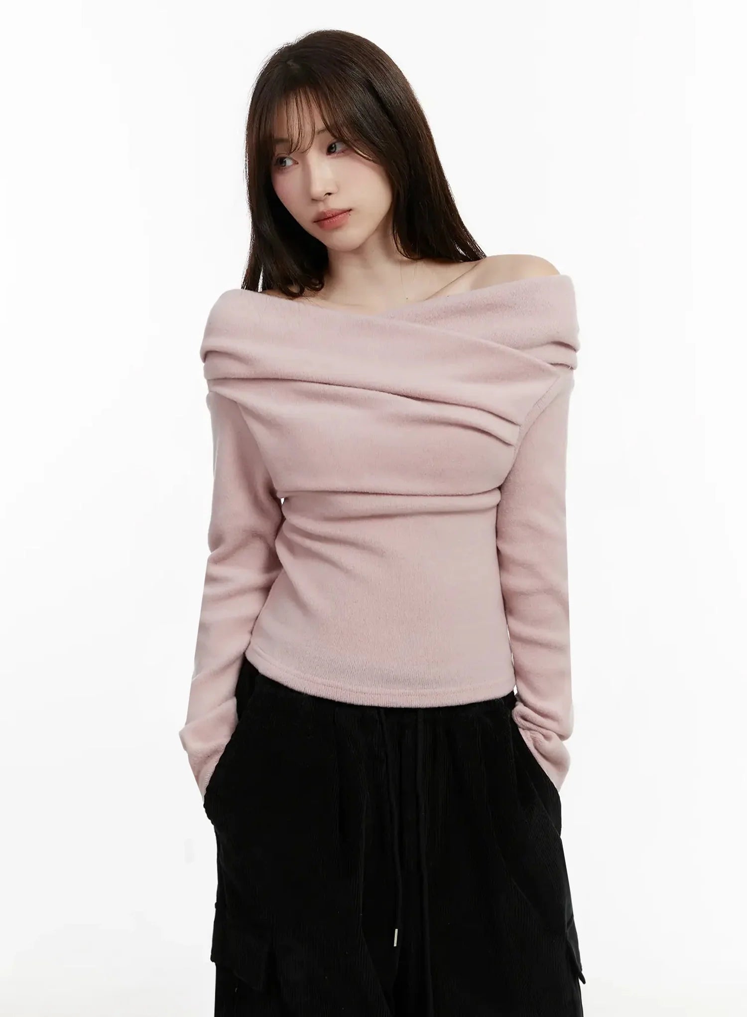 Fleece Off-Shoulder Long Sleeve Top IJ521