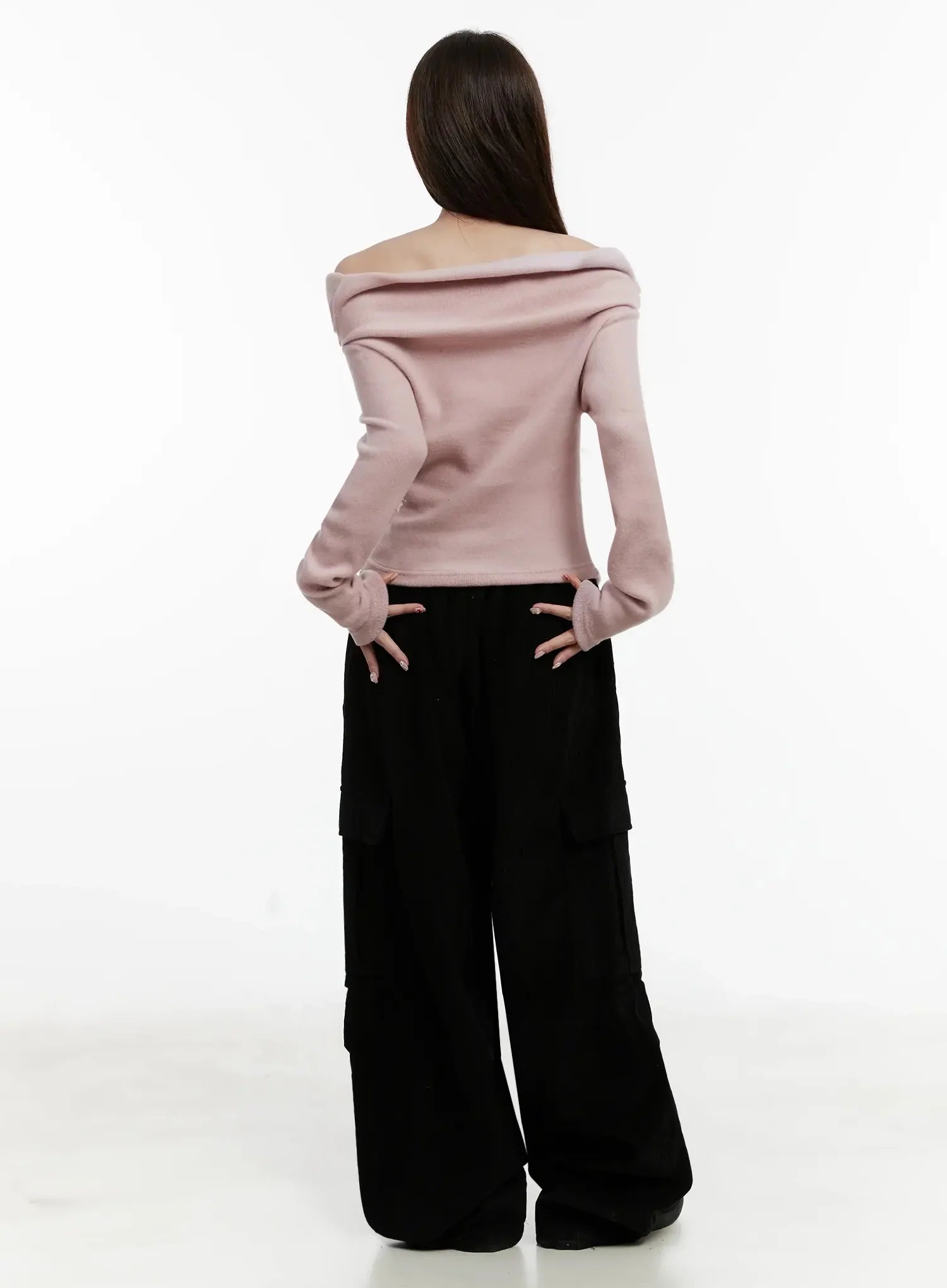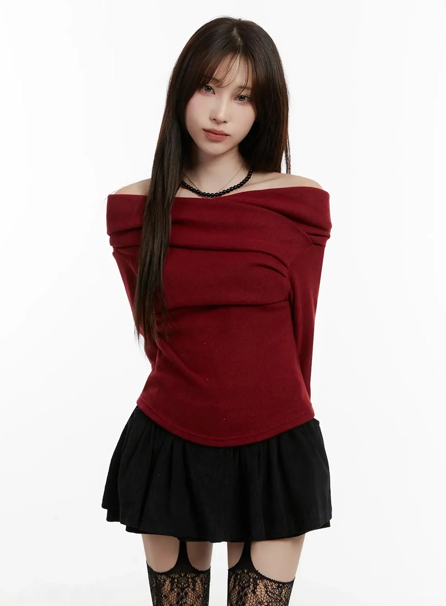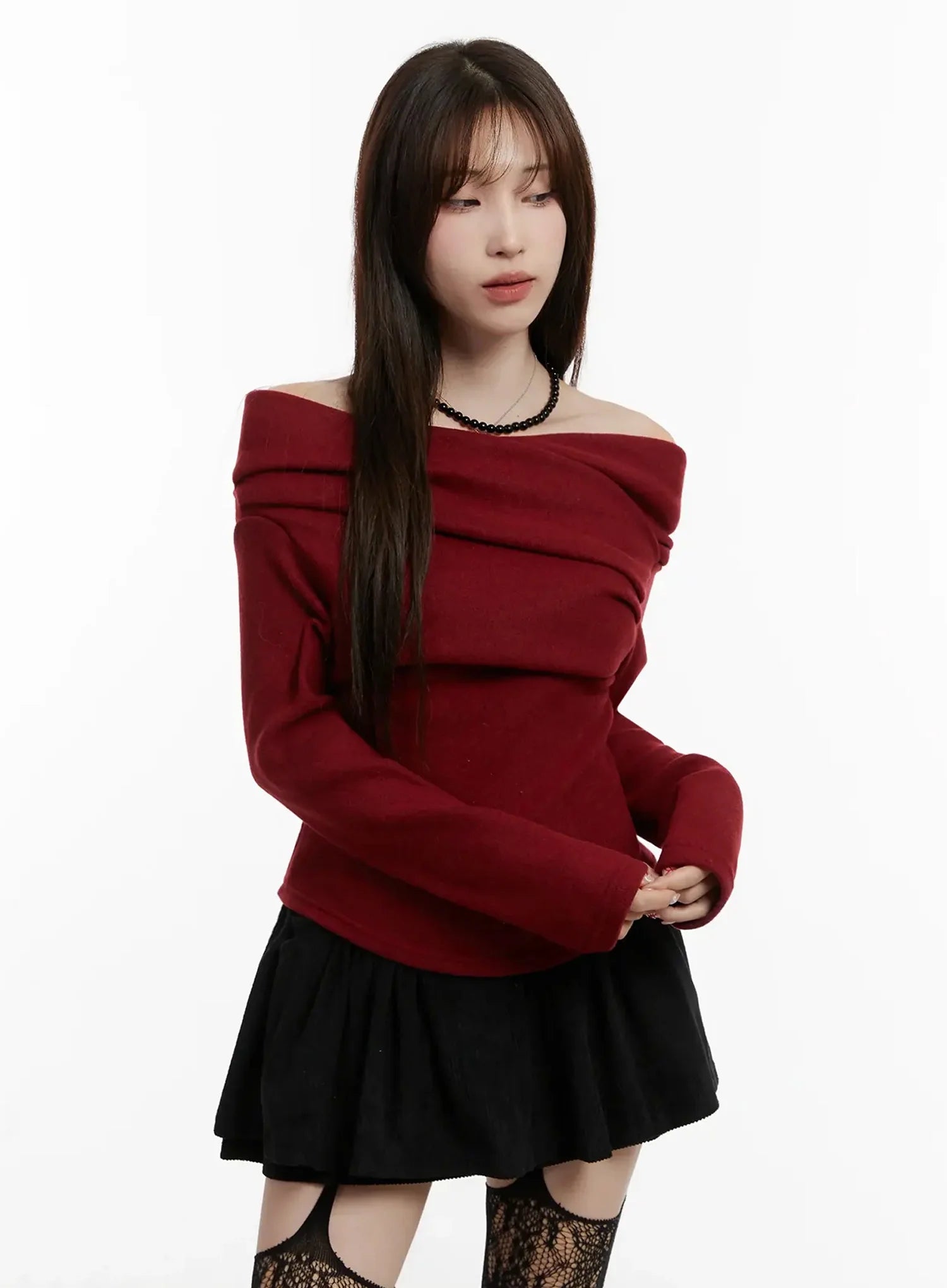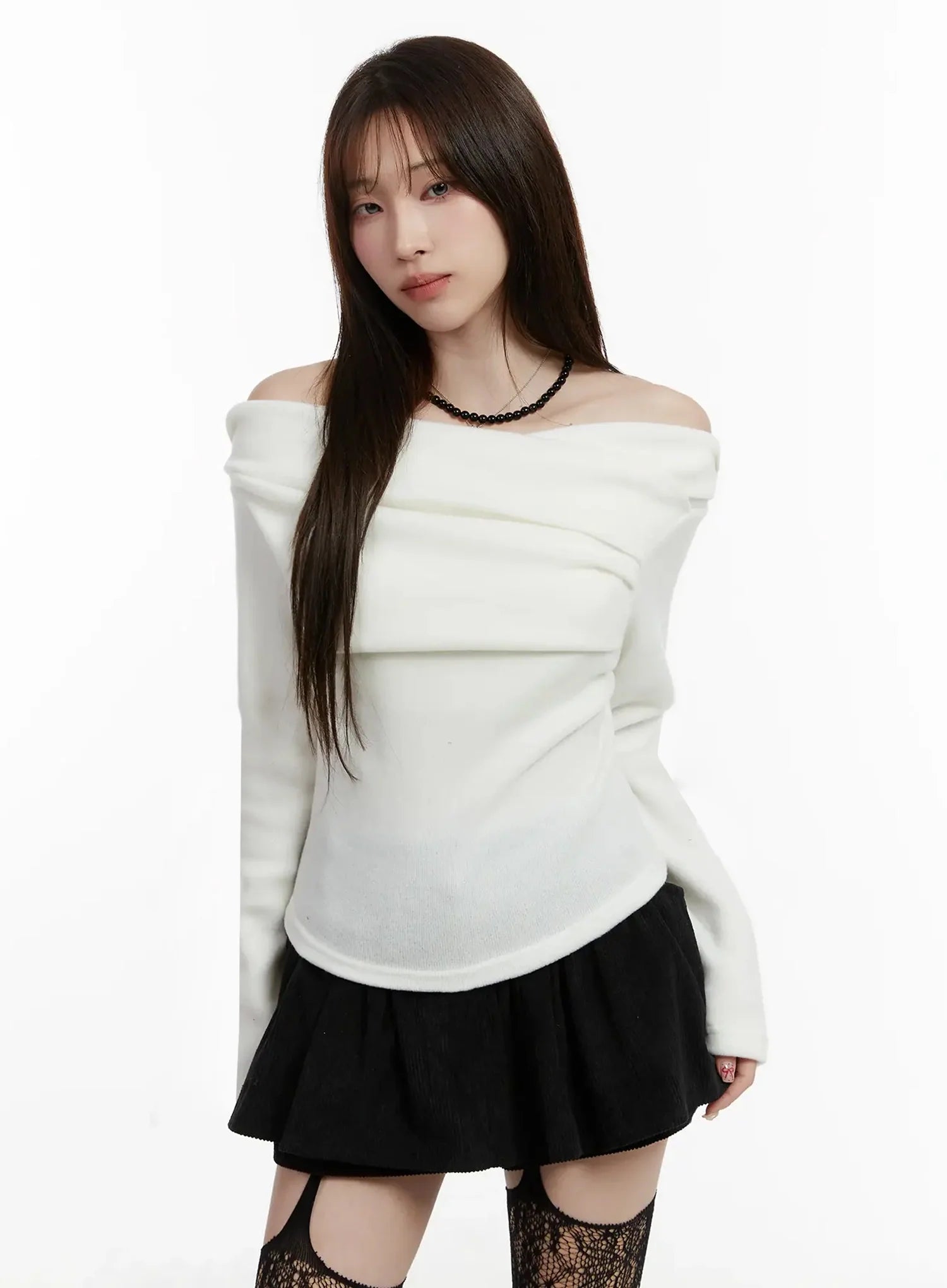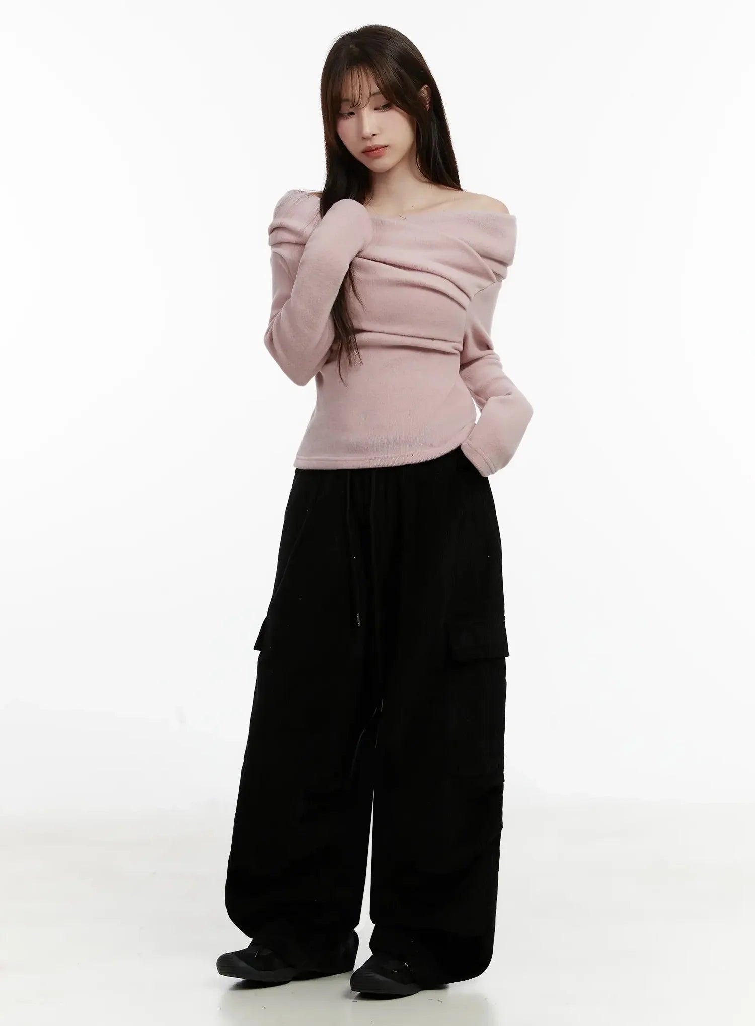 Fleece Off-Shoulder Long Sleeve Top IJ521