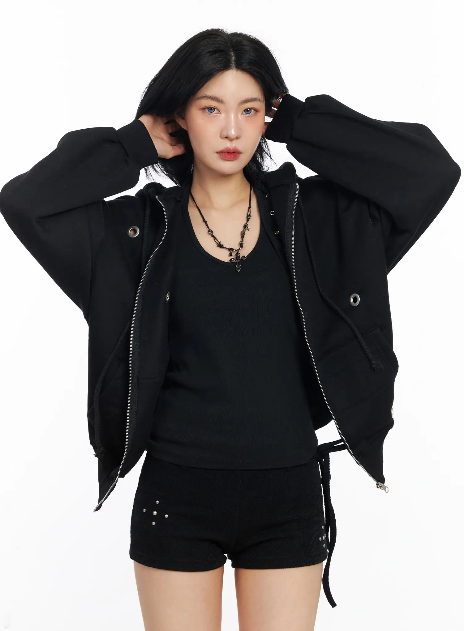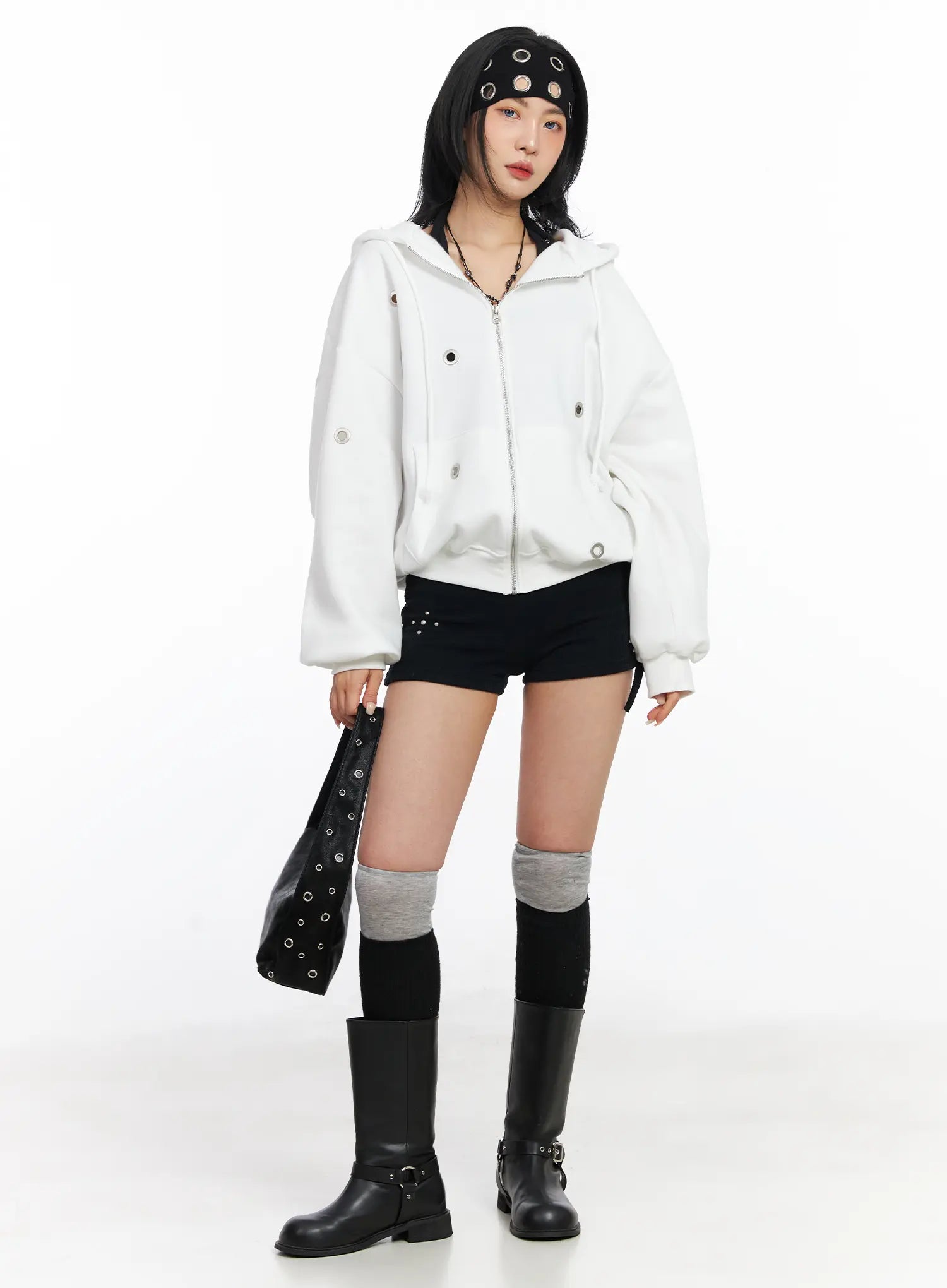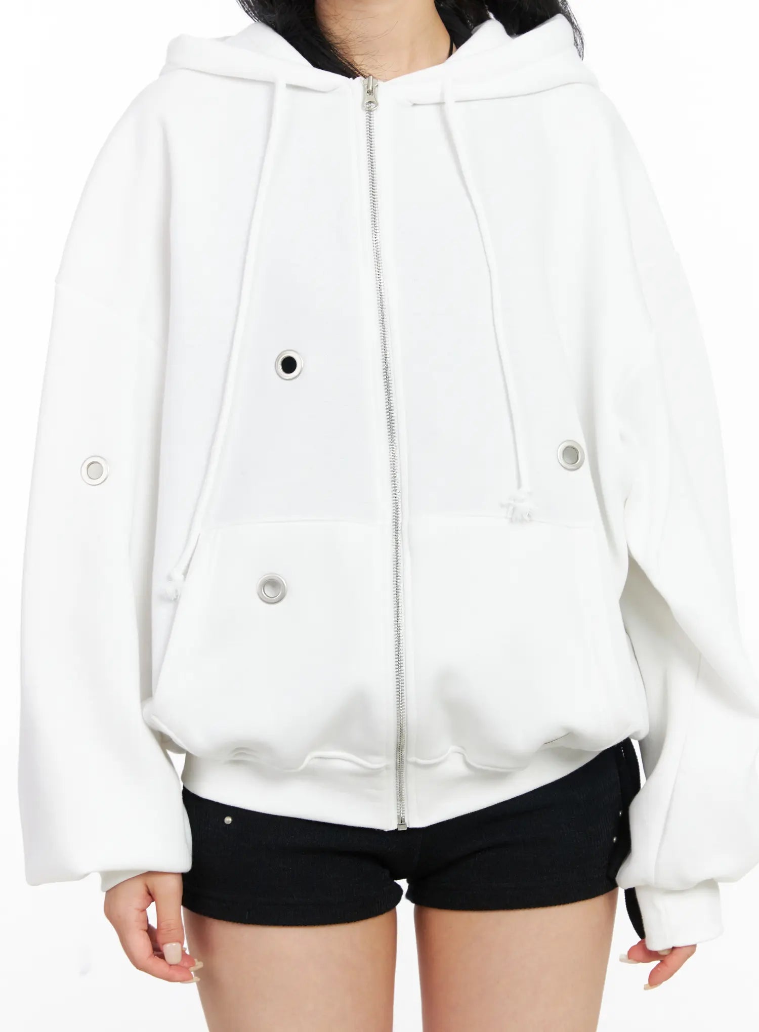Fleeced Over-Fit Eyelet Zip-Up Hoodie CJ522