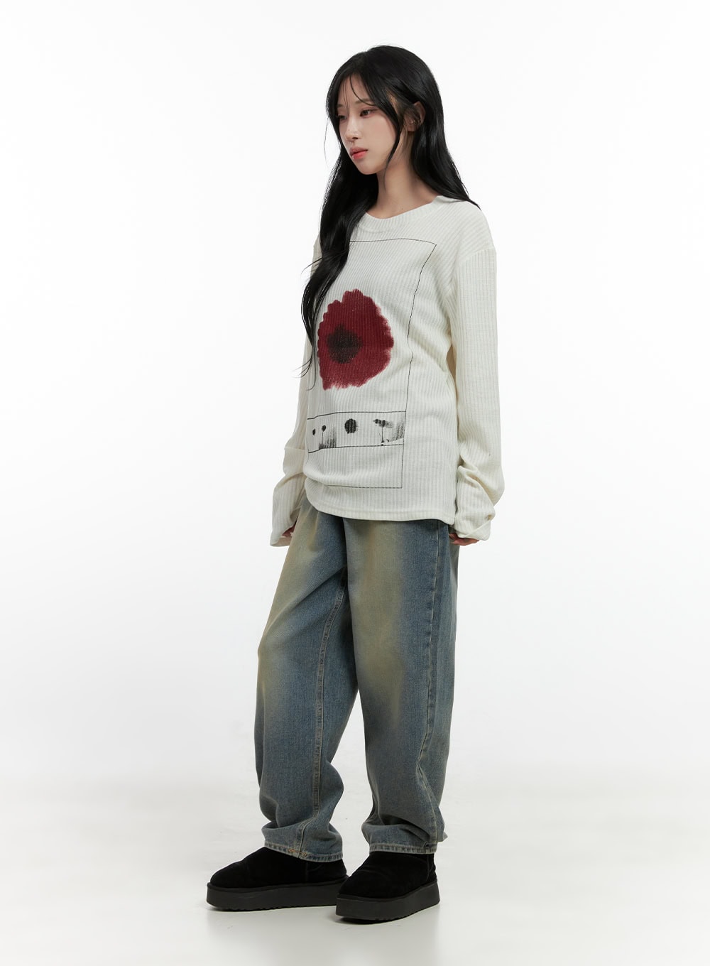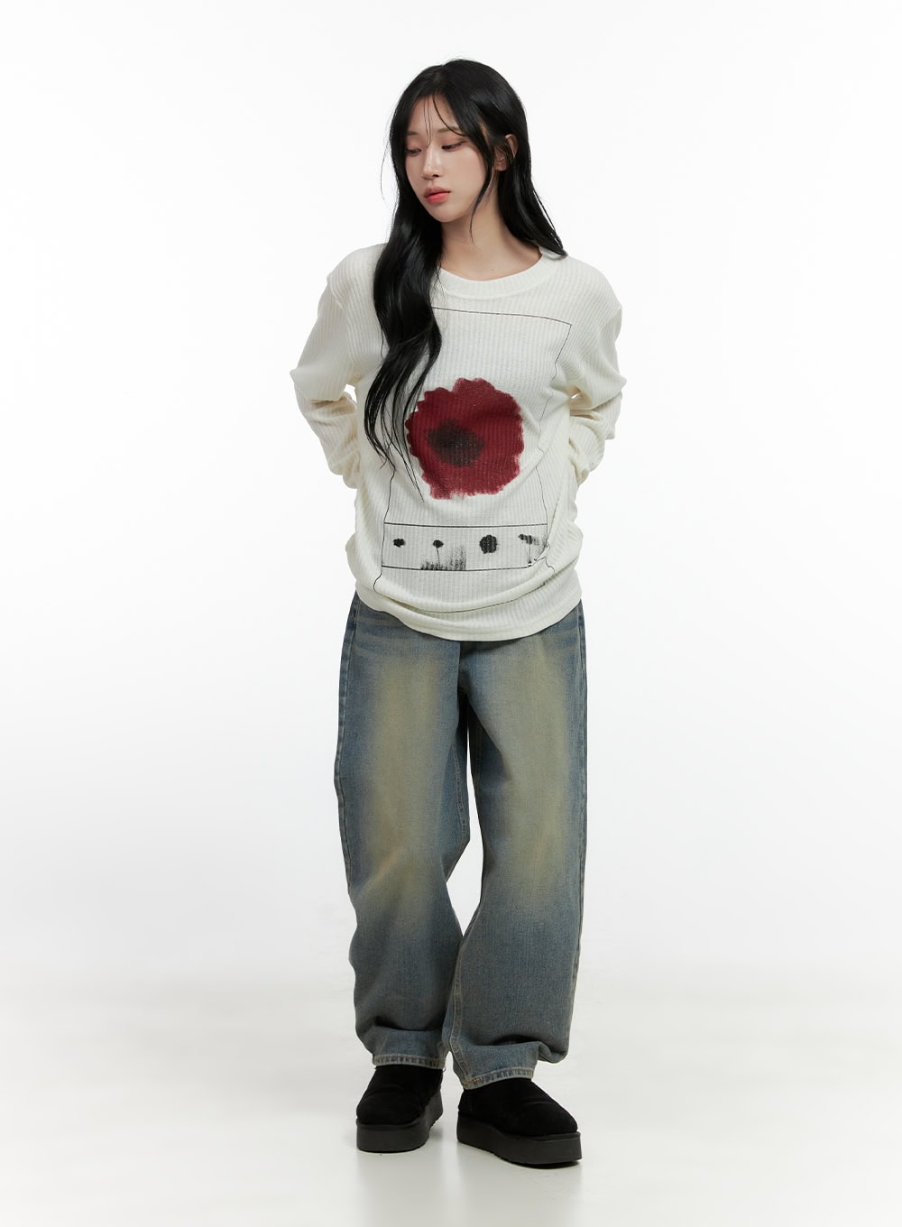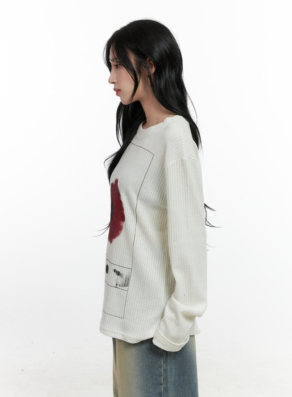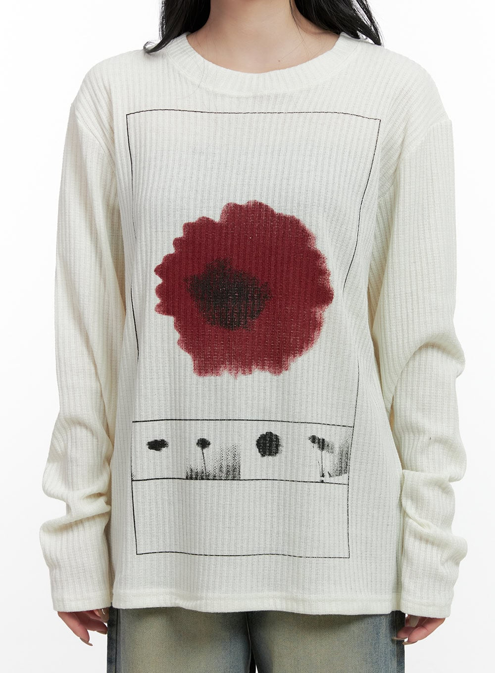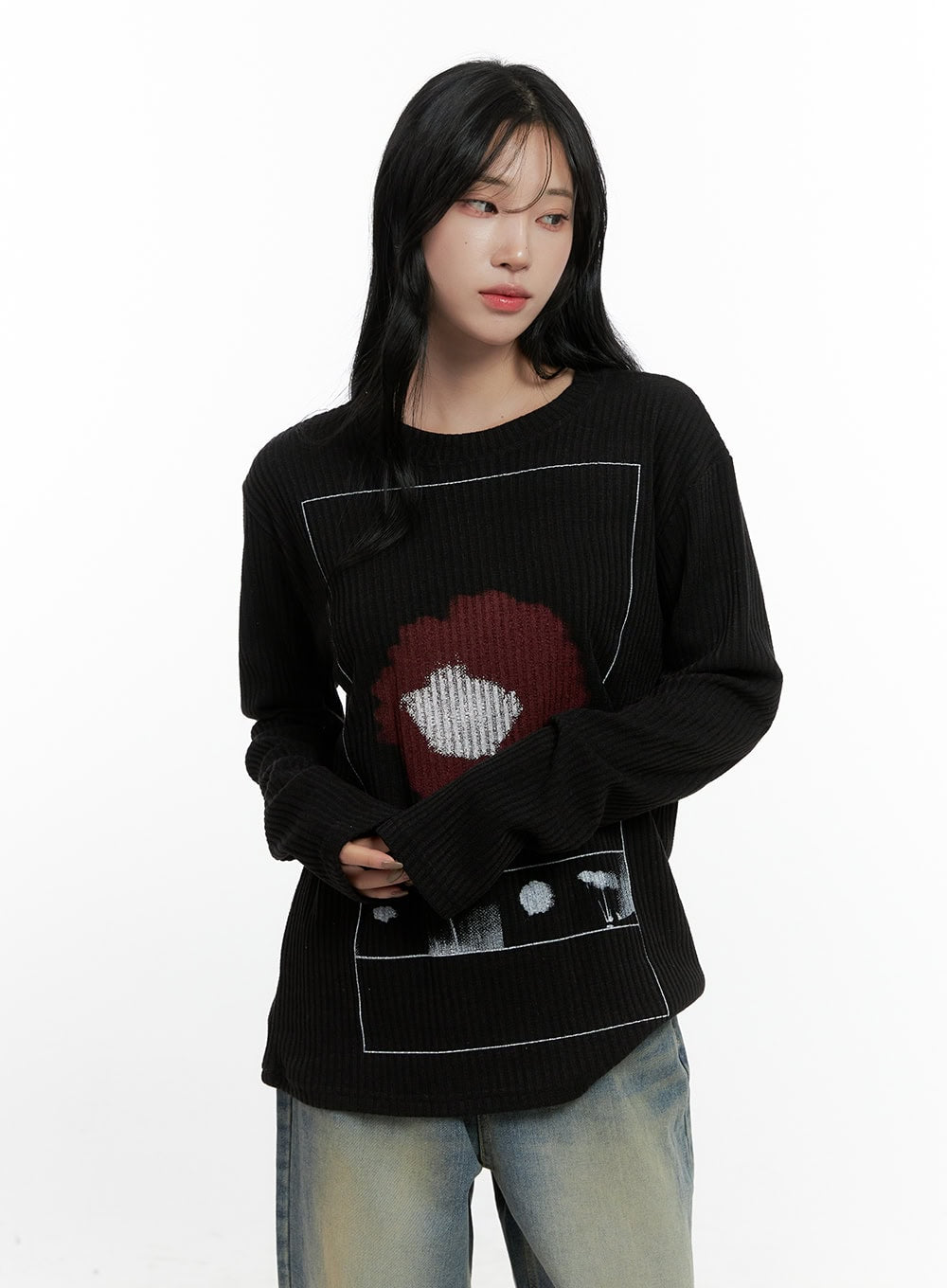 Floral Ribbed Long Sleeve Tee CN407