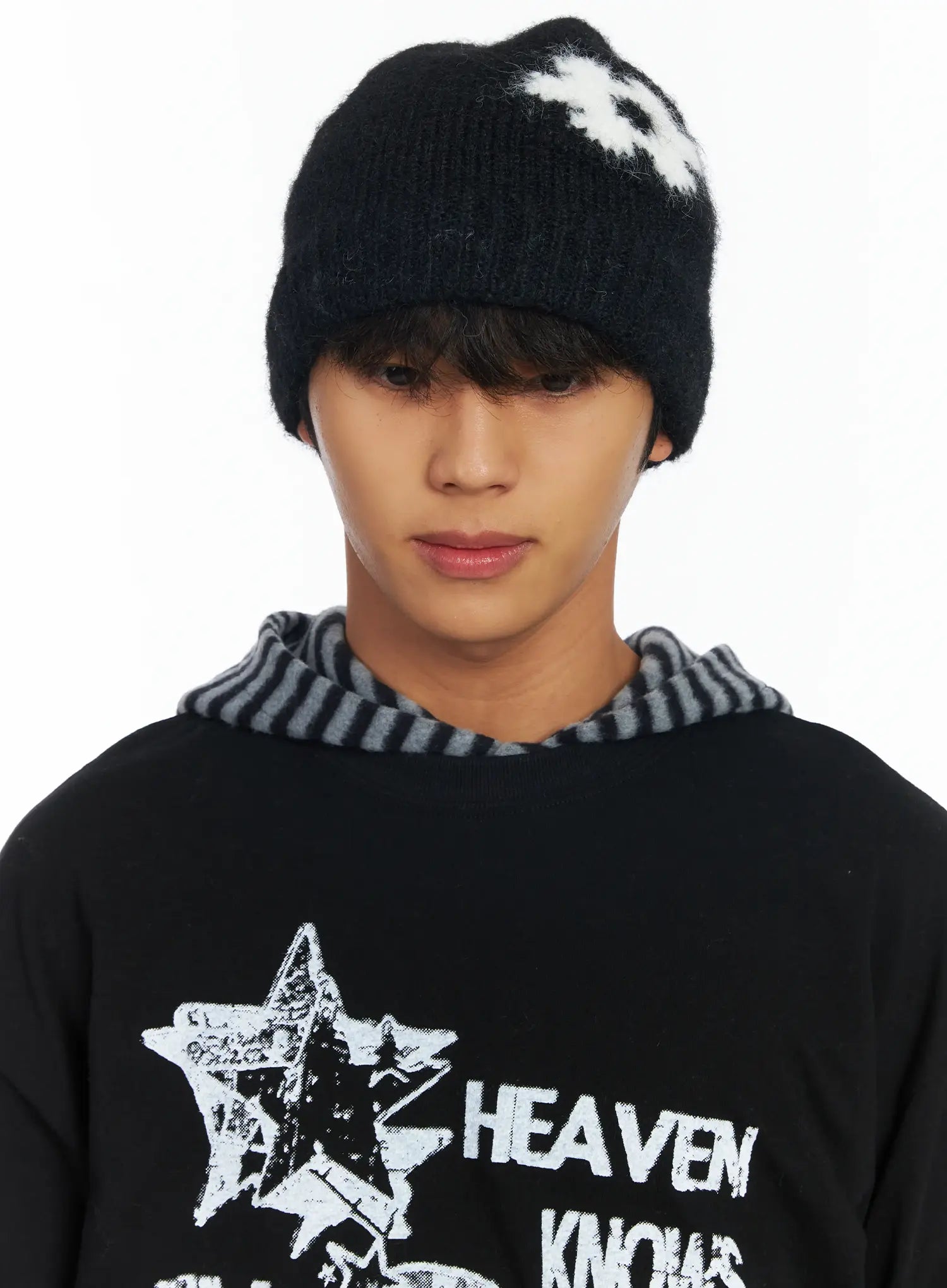 Flower Knit Beanie (Black) IF506