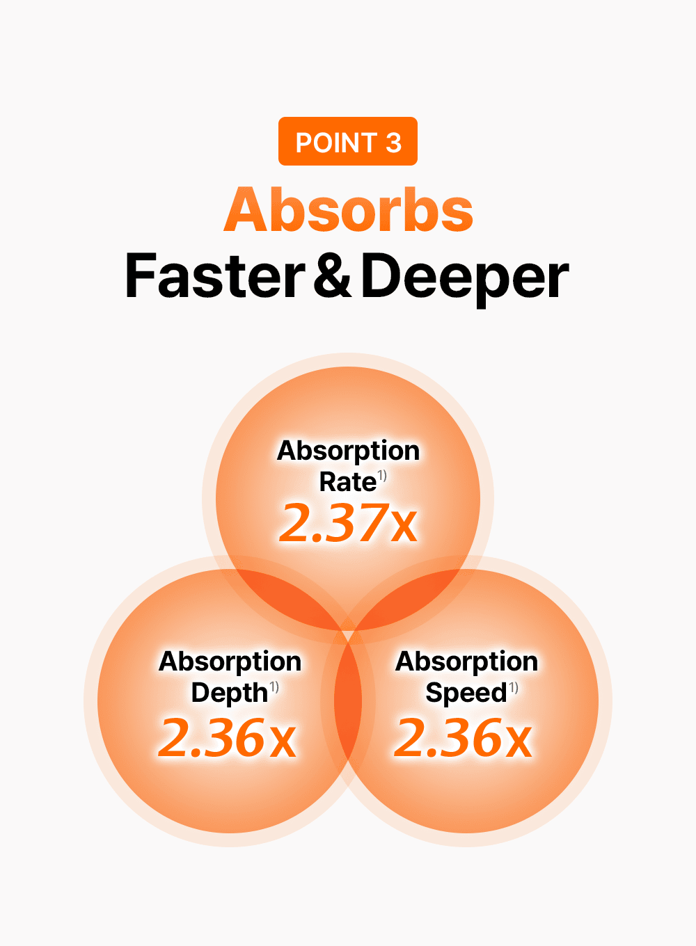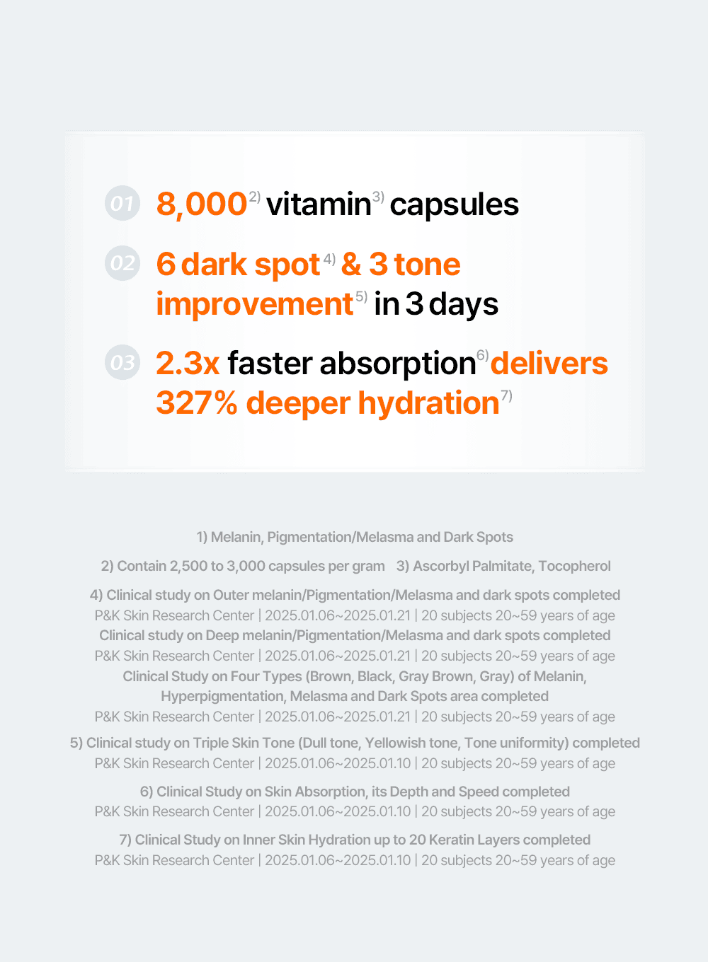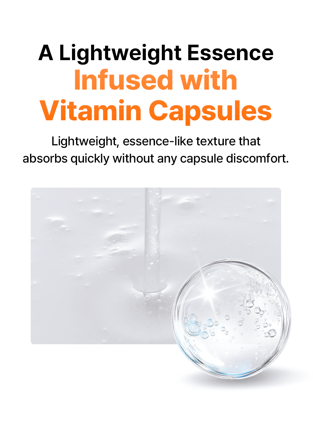 - The formula contains 8,000 vitamin capsules in a watery essence that absorbs 2.3x deeper and faster, delivering instant hydration and vitality.