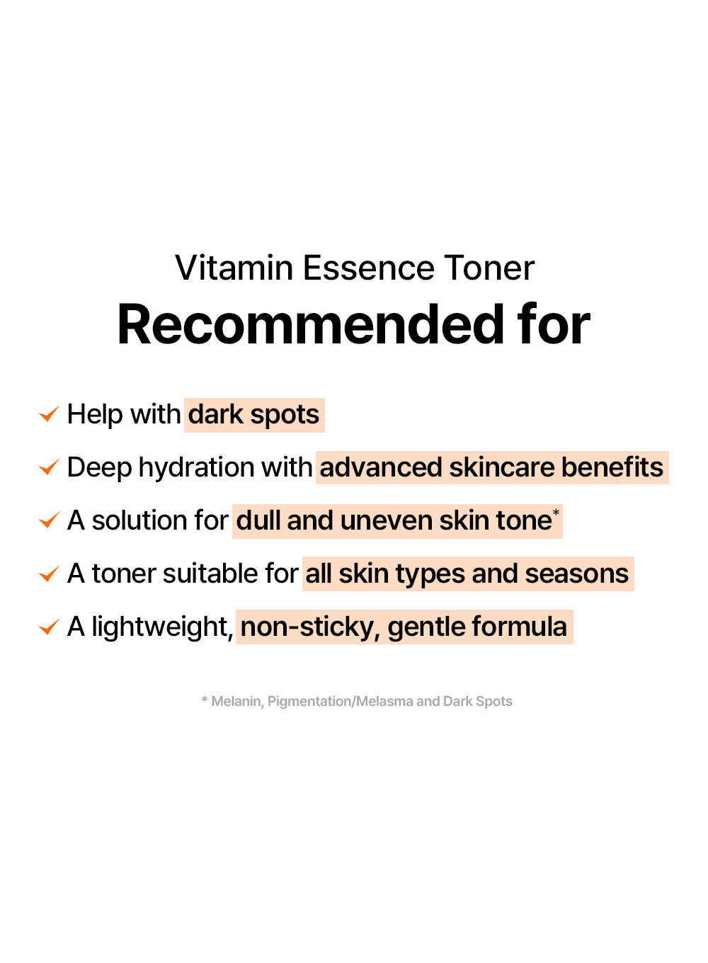 - Powered by vitamin C and niacinamide, this toner targets melanin, dark spots, and pigmentation for a visibly clearer and more radiant complexion.