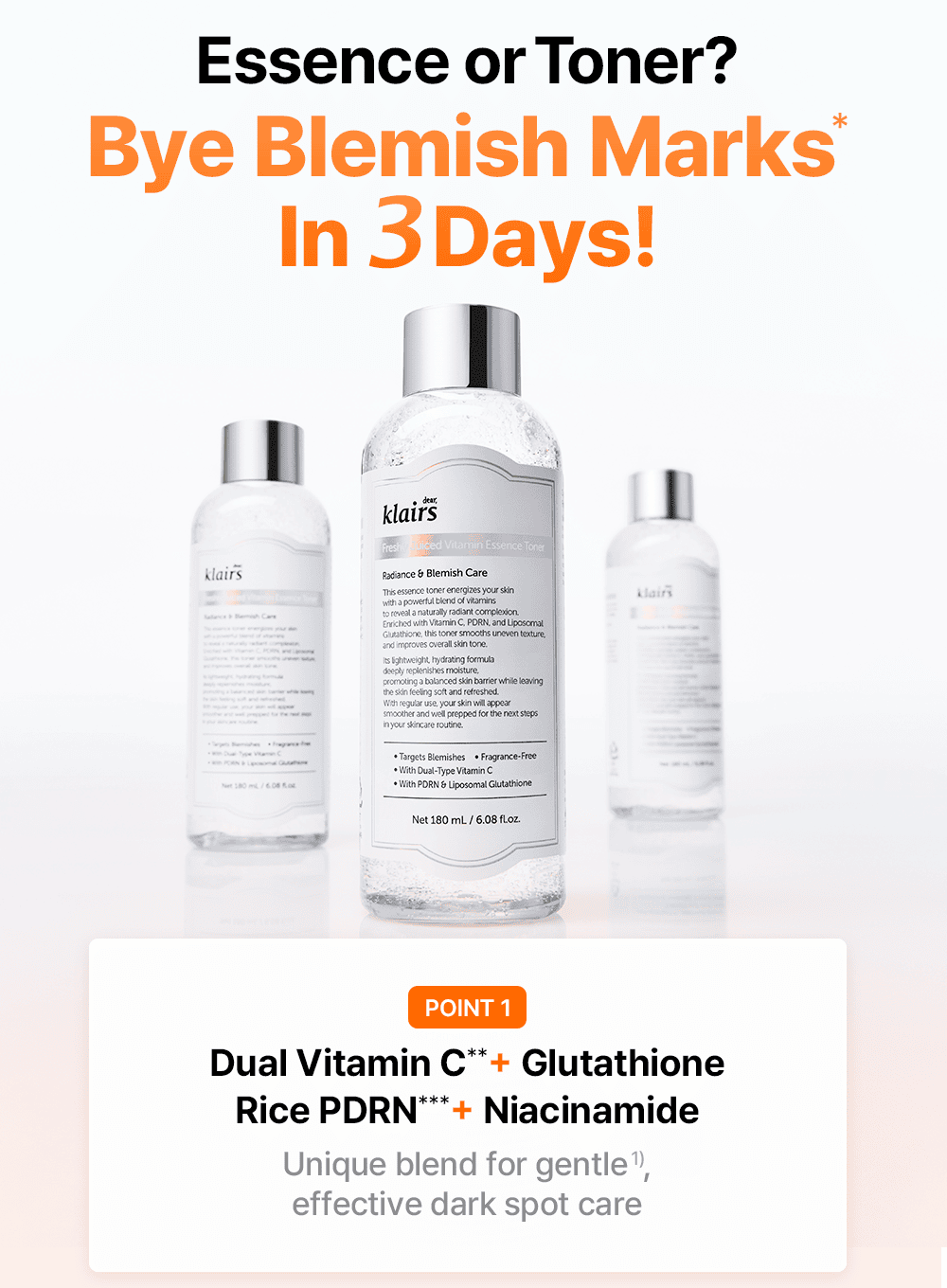 Lightweight essence toner infused with 8,000 vitamin capsules for bright, even skin.