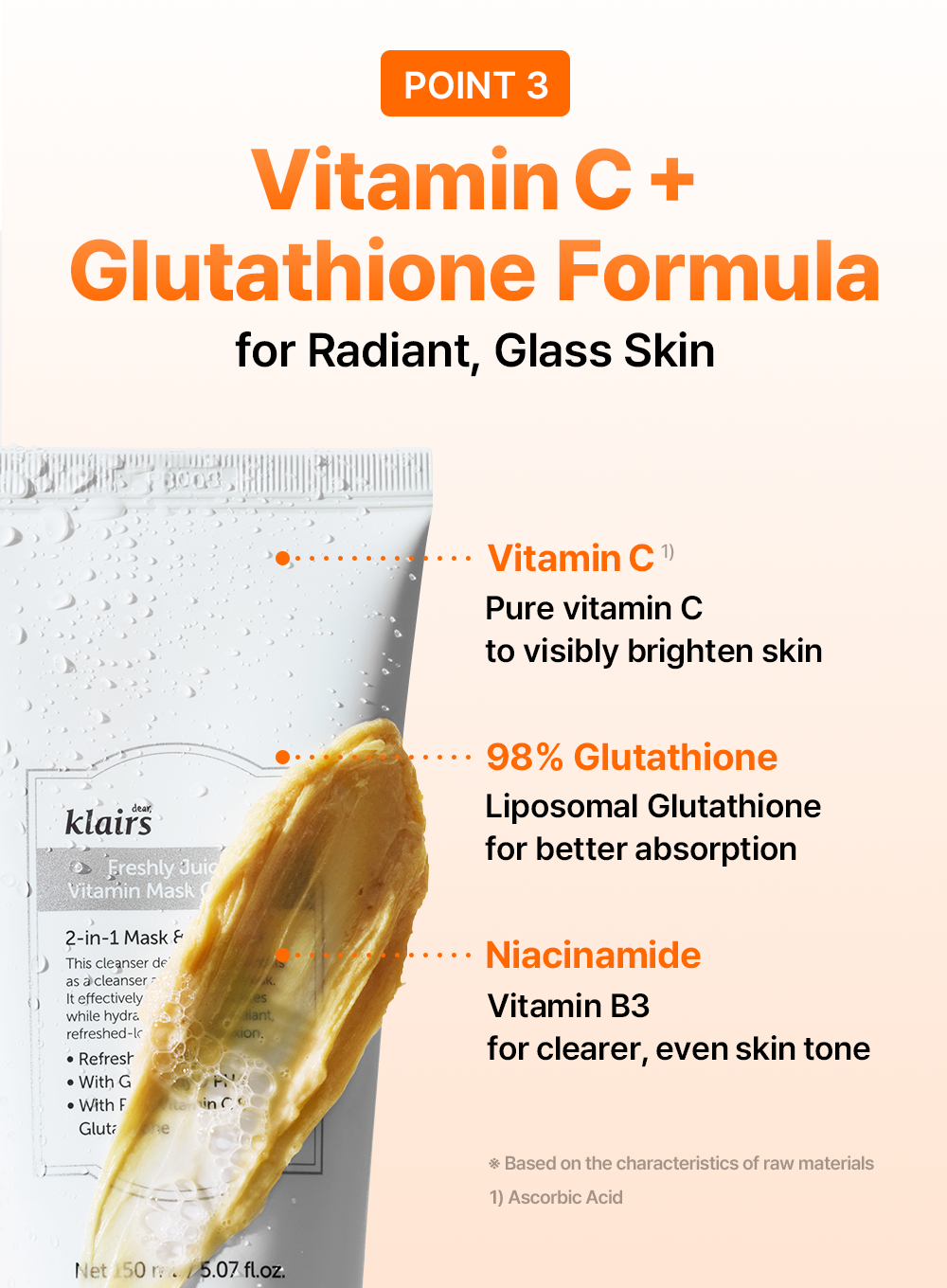 - Enriched with Vitamin C (Ascorbic Acid) and Glutathione to brighten dull skin and promote a healthy, glowing complexion.
