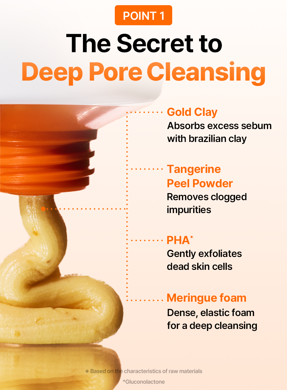 Gold Clay, Gluconolactone (PHA), Tangerine Peel Powder, Panthenol, Beta-Glucan,