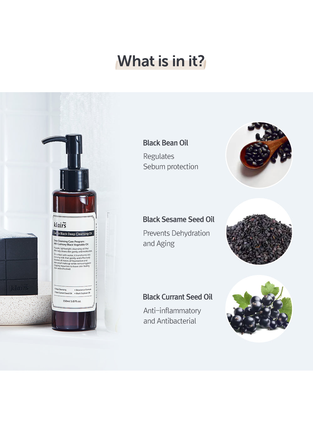 A gentle deep cleansing oil derived from natural black grains, providing deep cleansing without irritation.