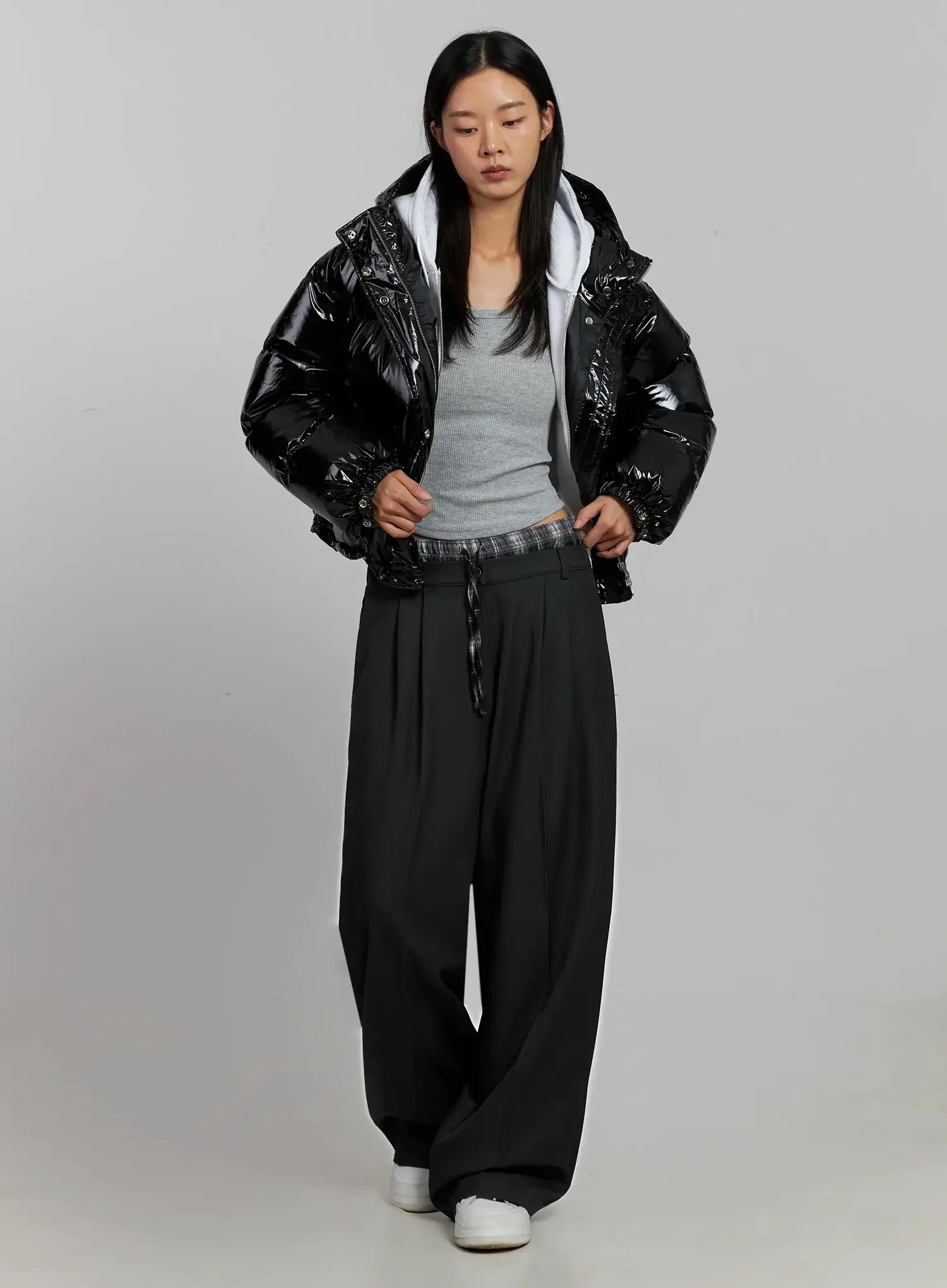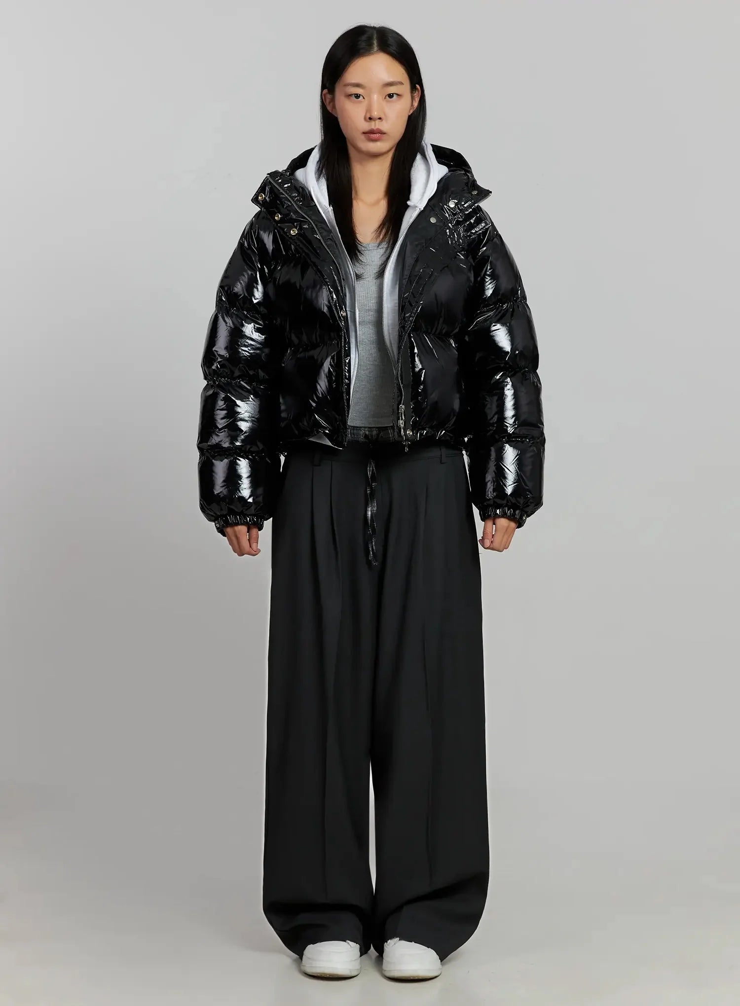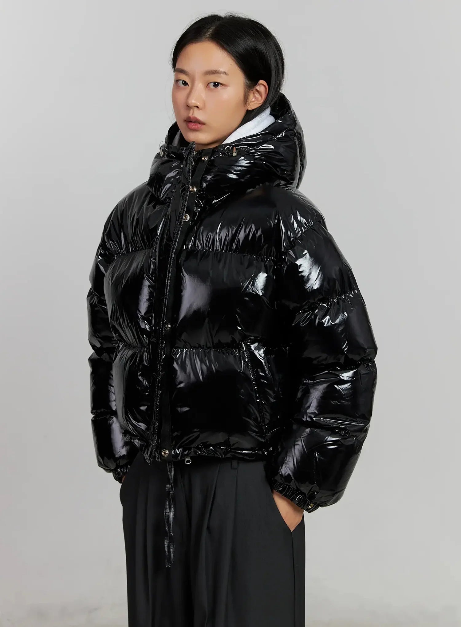Glossy Hooded Puffer Jacket IJ502