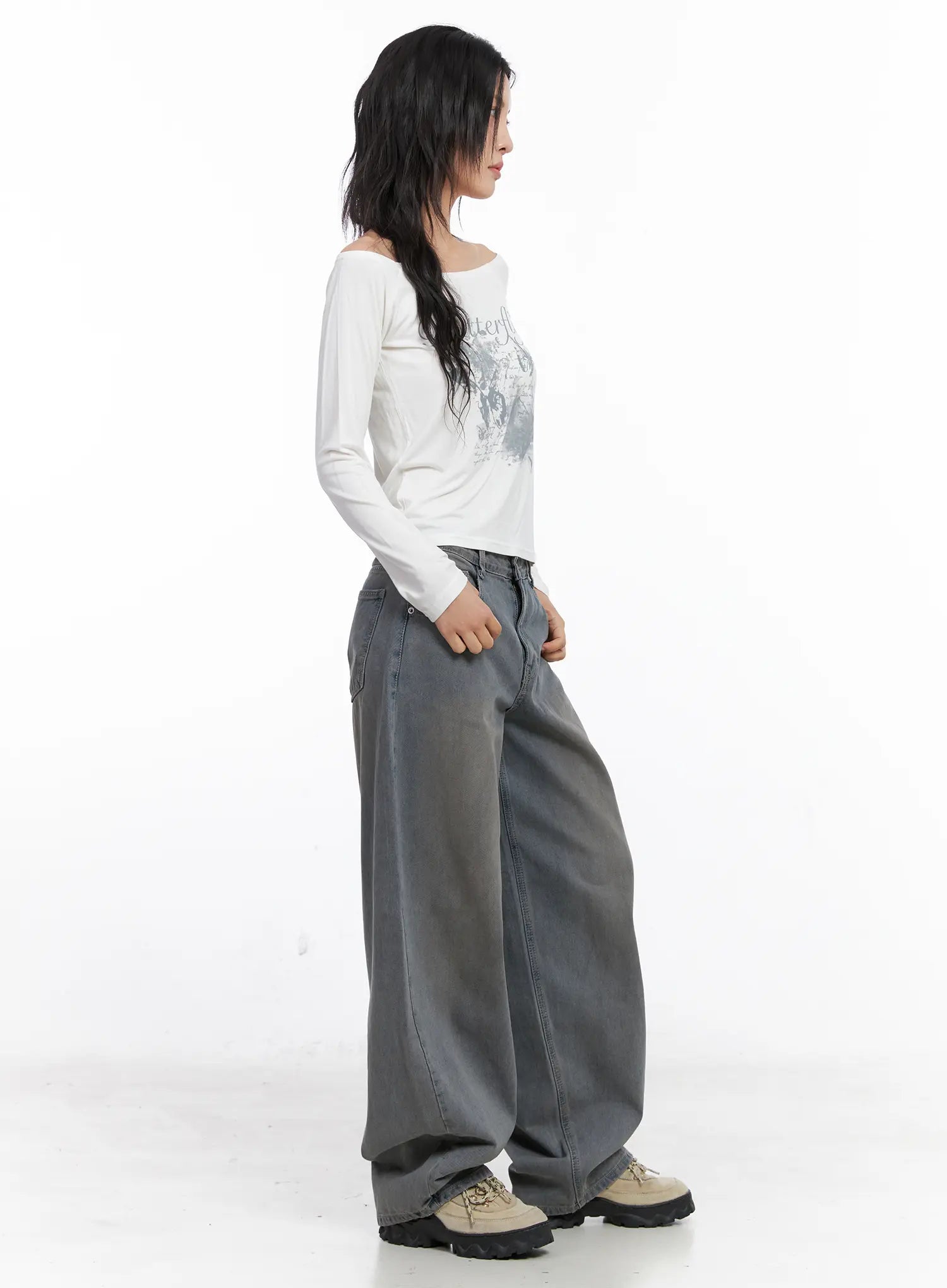 Graphic Off-Shoulder Long Sleeve Tee CC1809