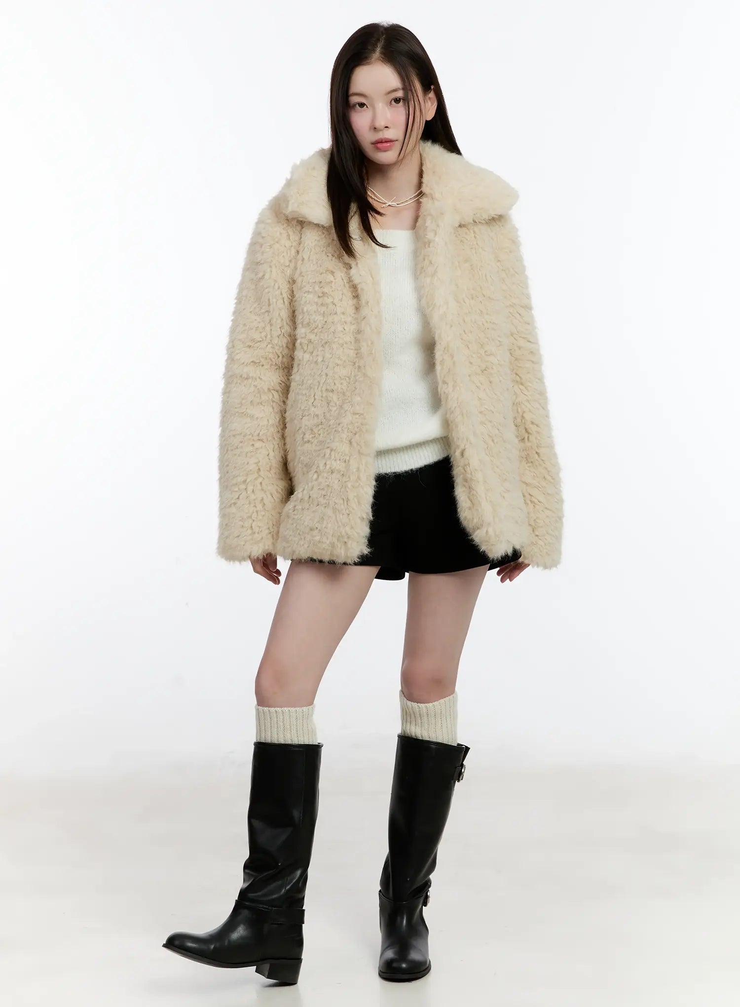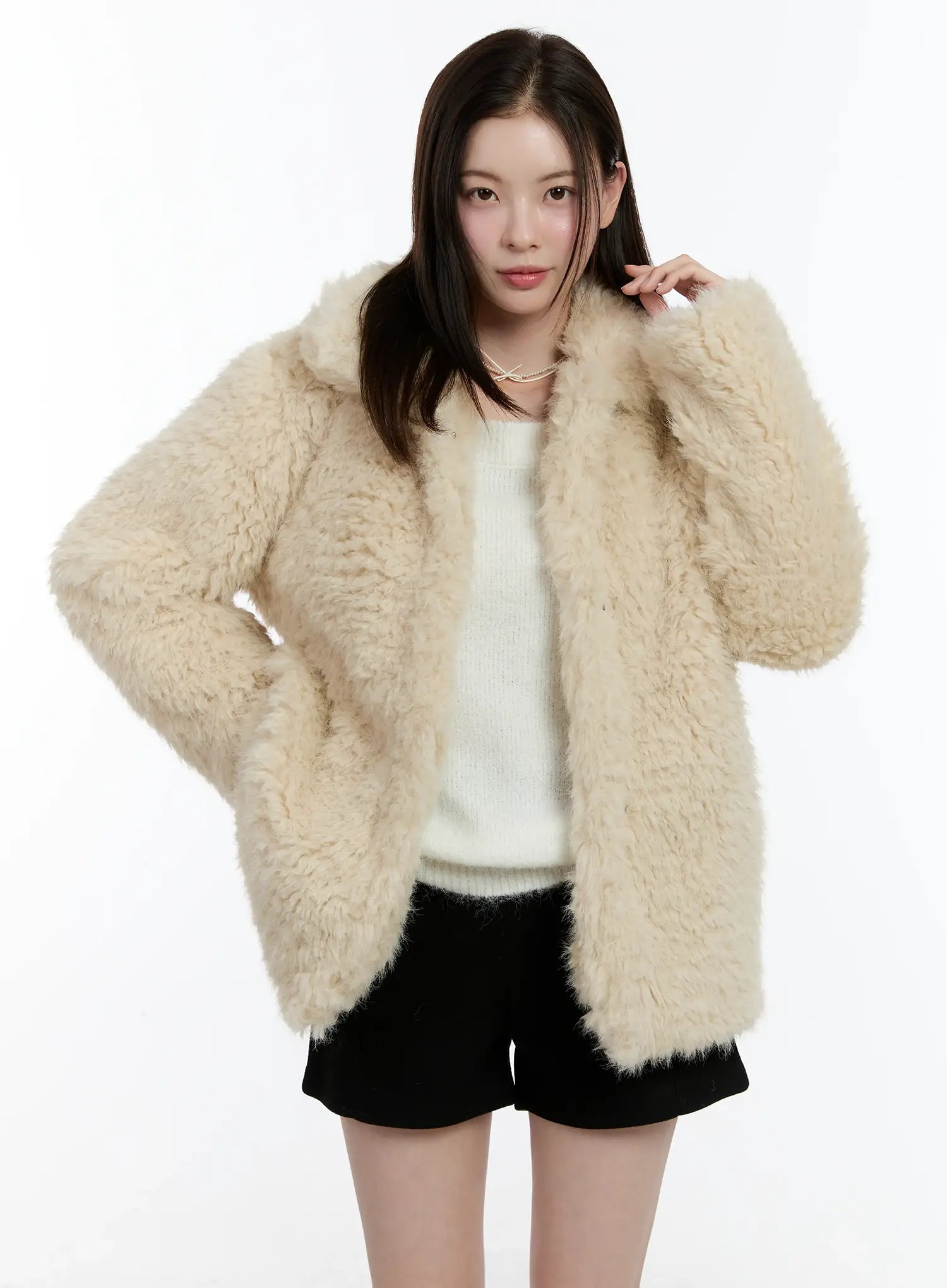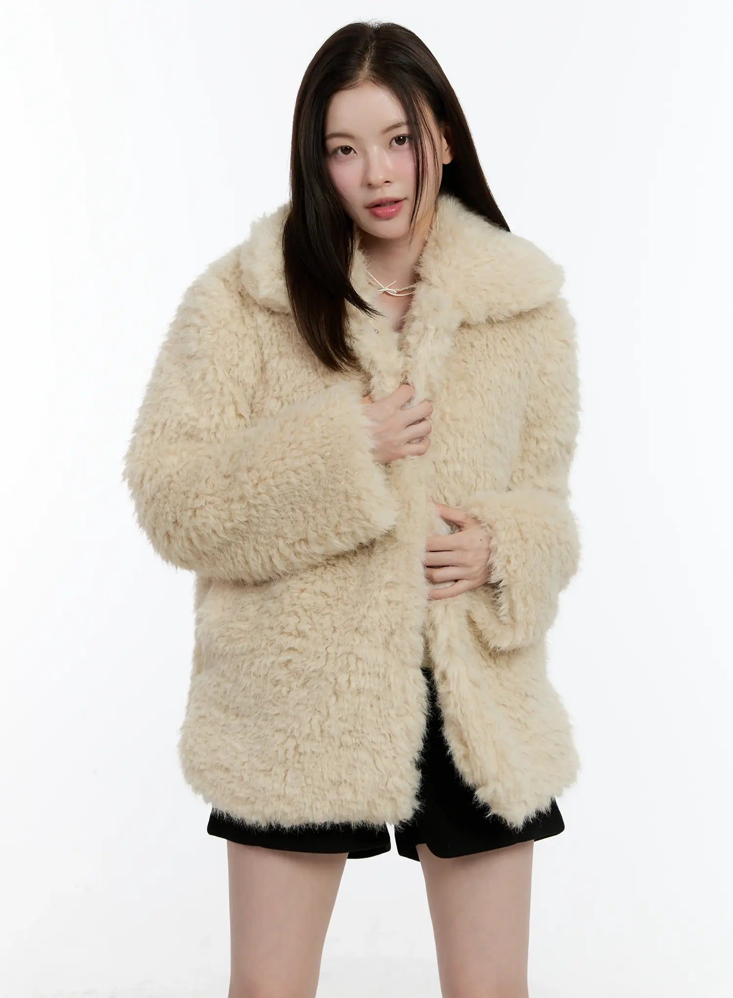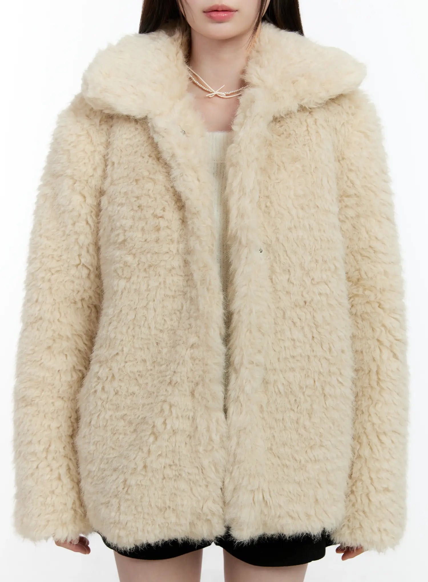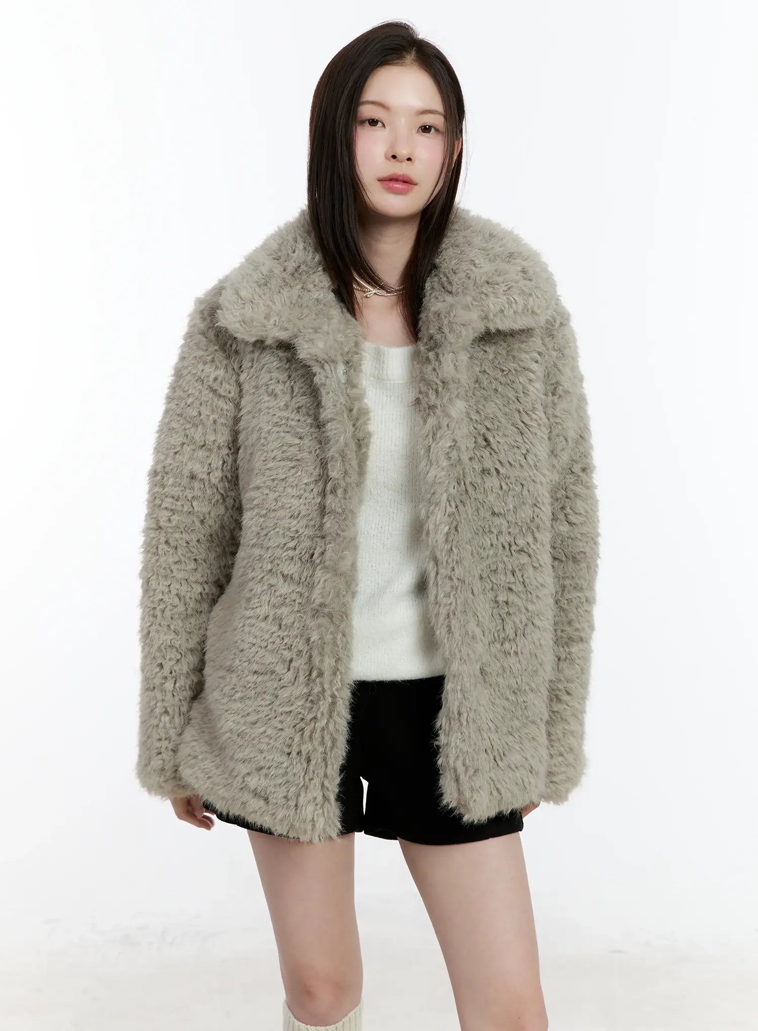 Half-Length Snap Button Faux Fur Jacket ID510