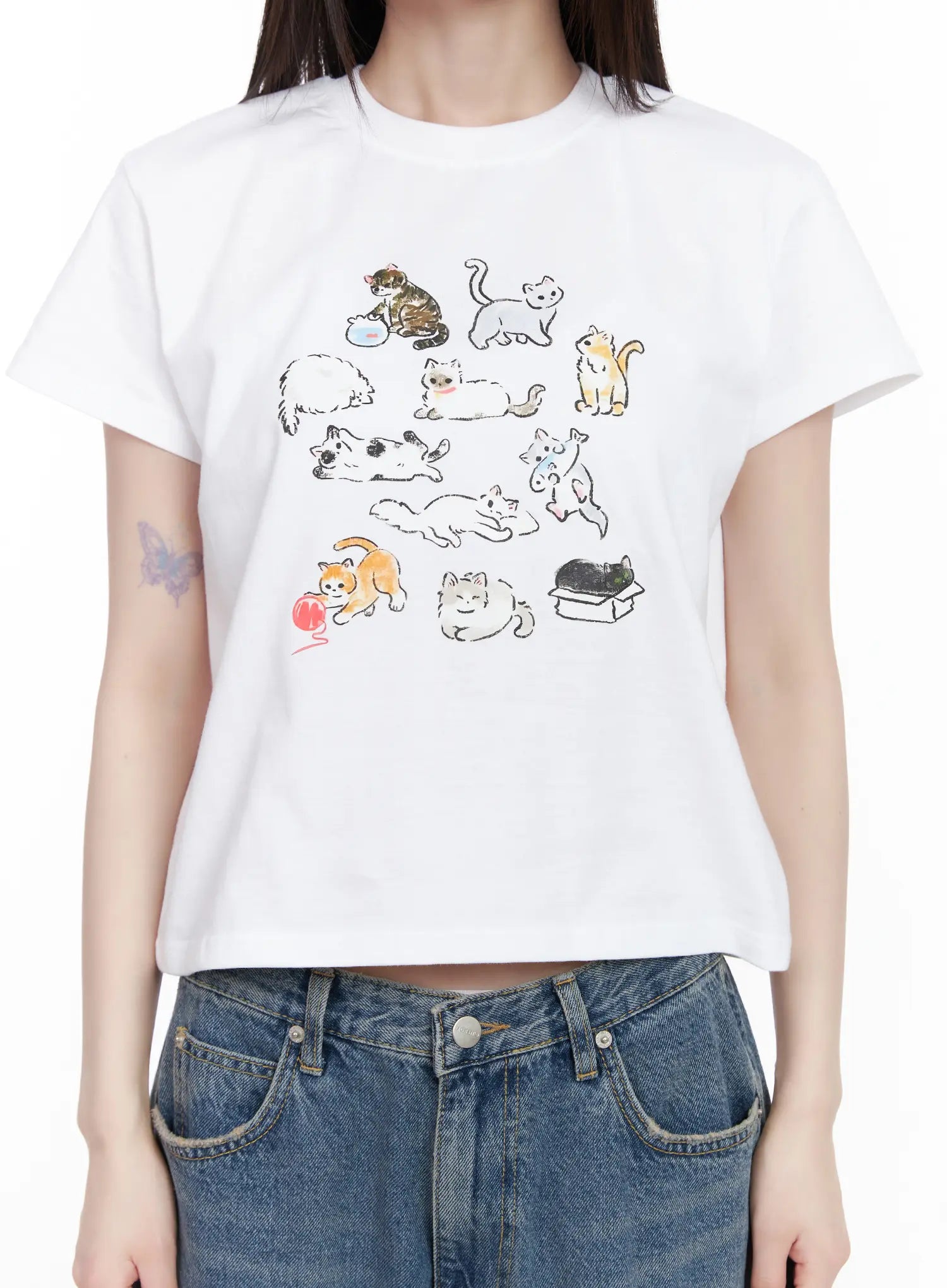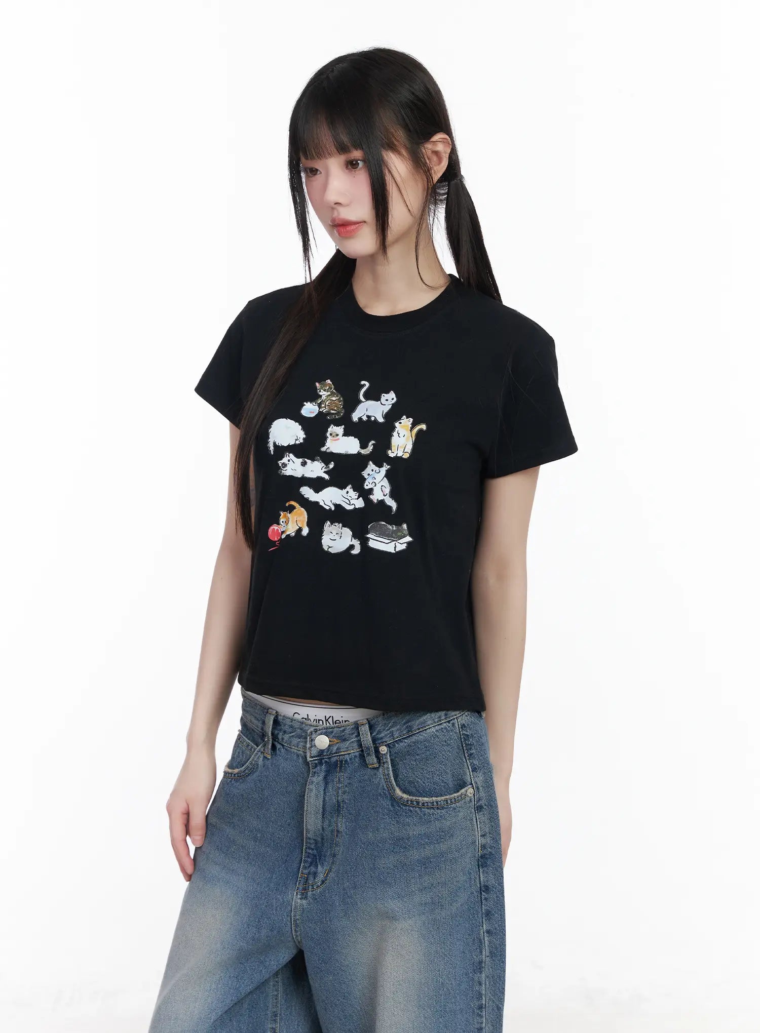Kitty Graphic Semi-Crop Tee CM526
