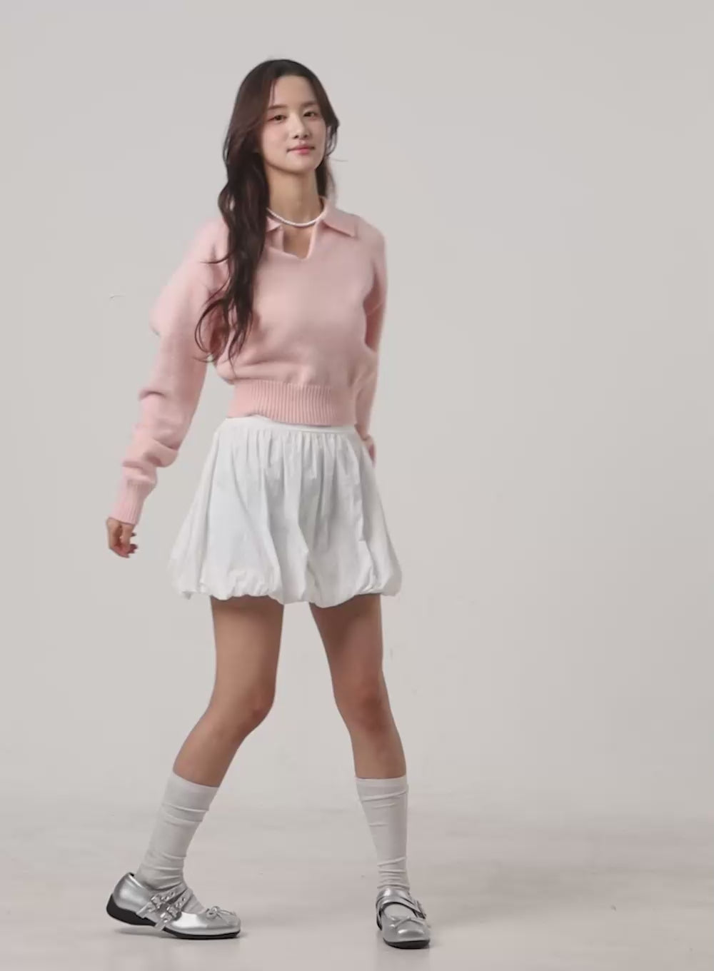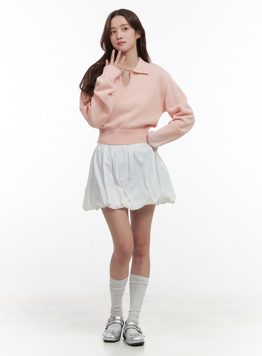 Knit Collared Crop Sweater OO421
