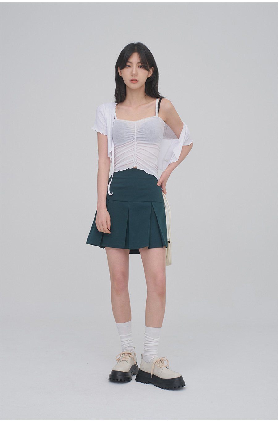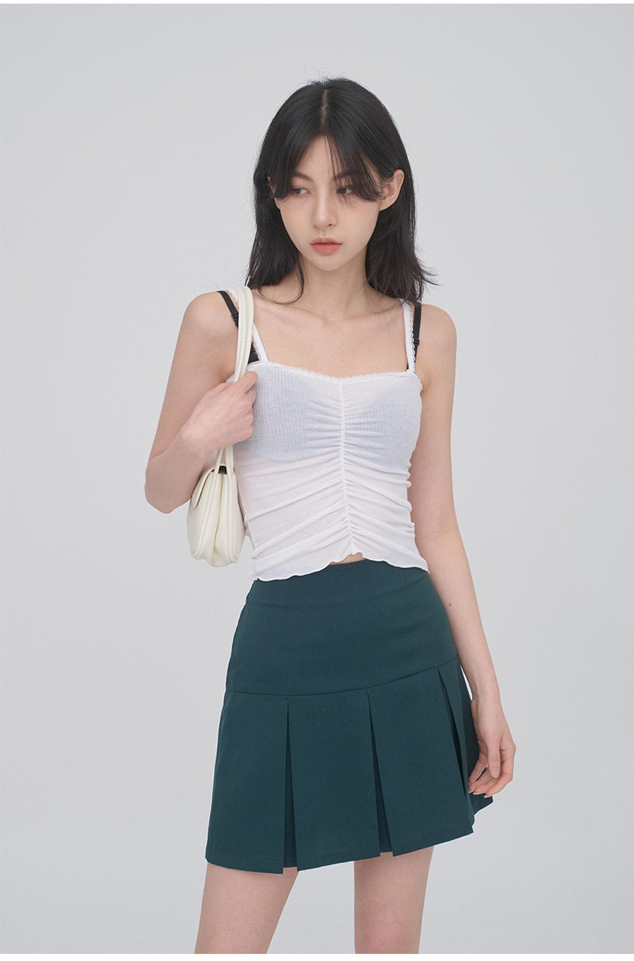 Lace Camisole Sleeveless Top with Front Shirring CM3