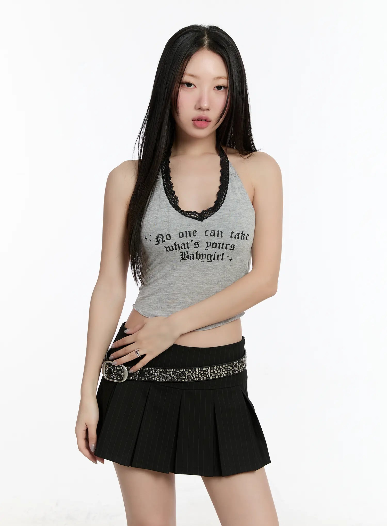 Lace Lettering V-Neck Crop Top CM511
