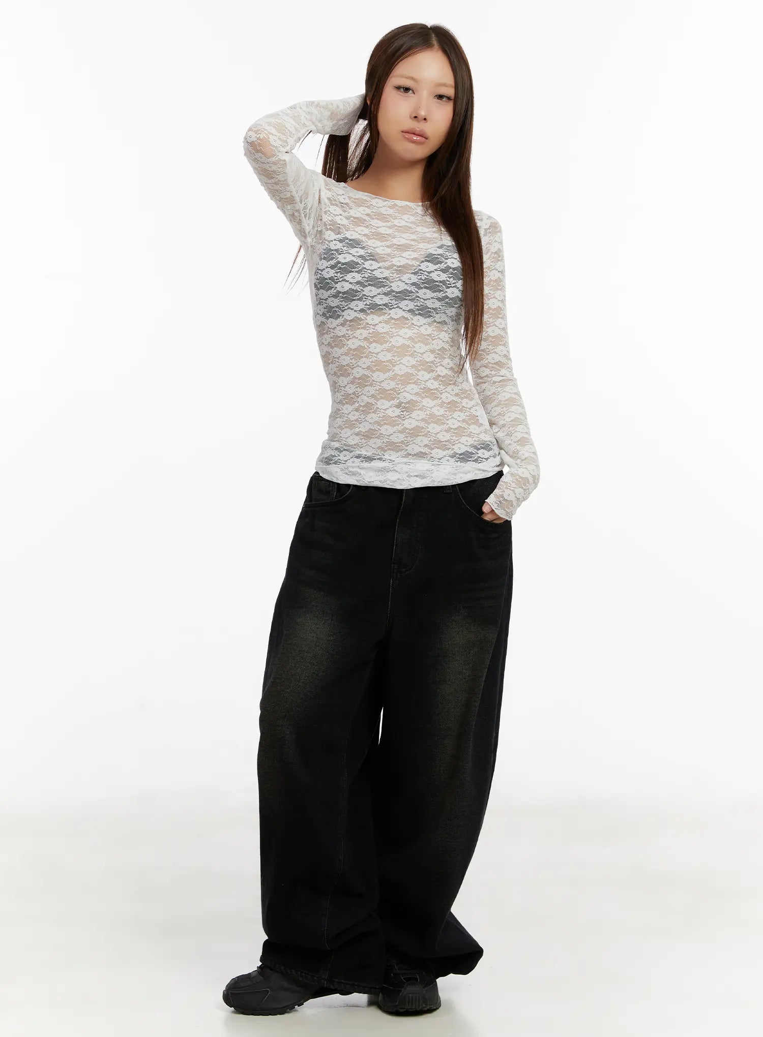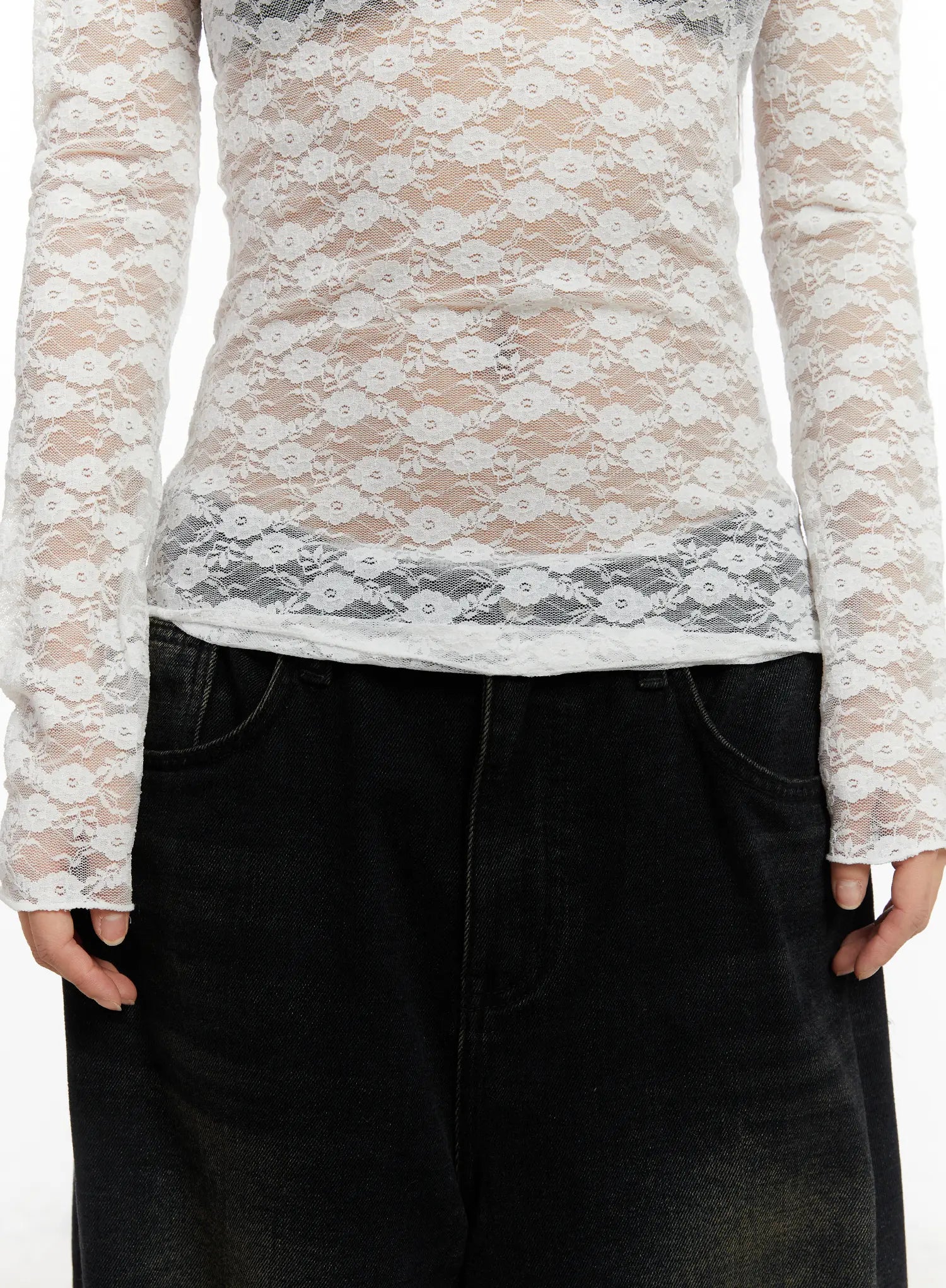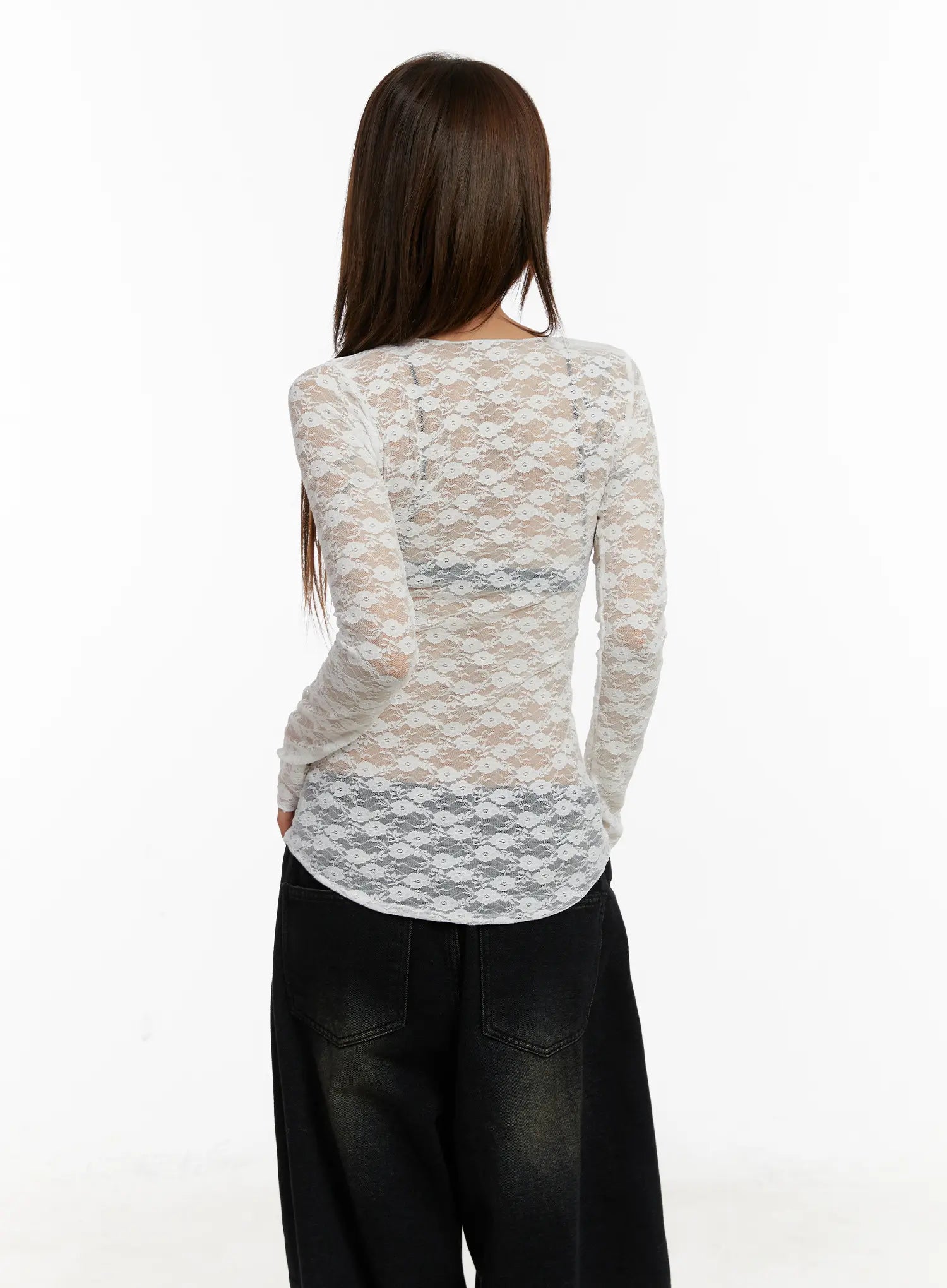 Lace Sheer Long Sleeve Top CD512