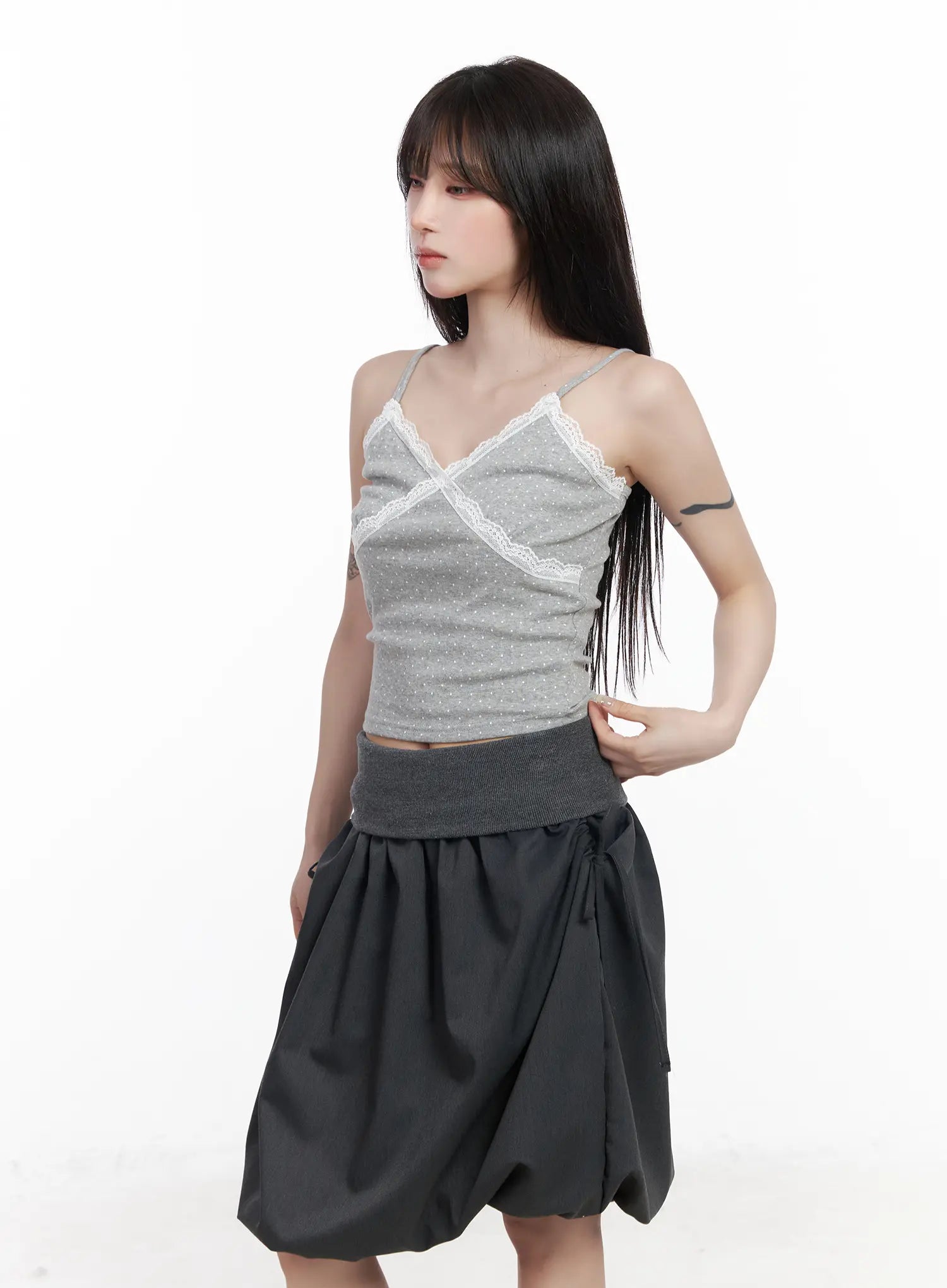 Lace Trim Polka Dot Crop Sleeveless Top CF523